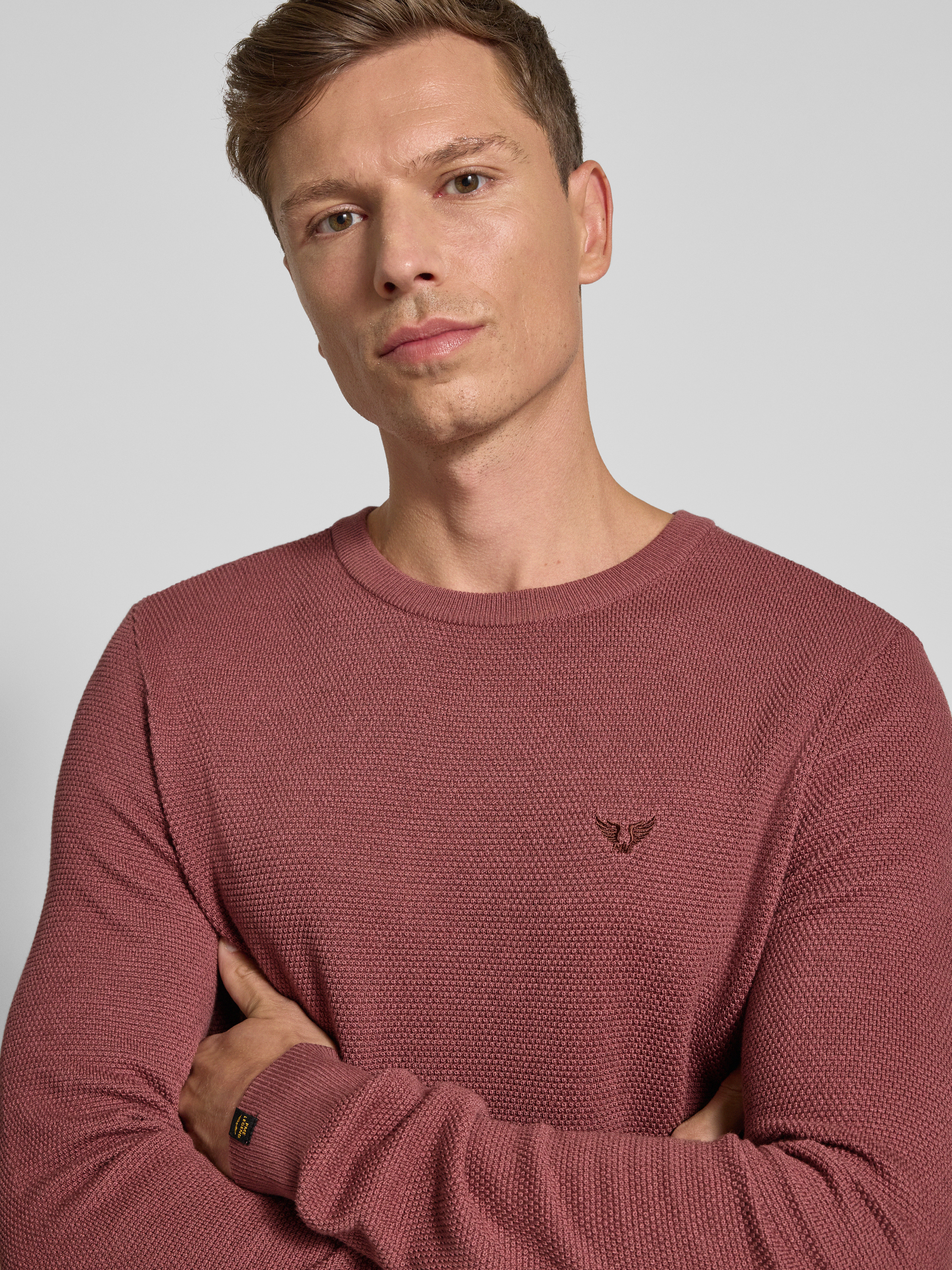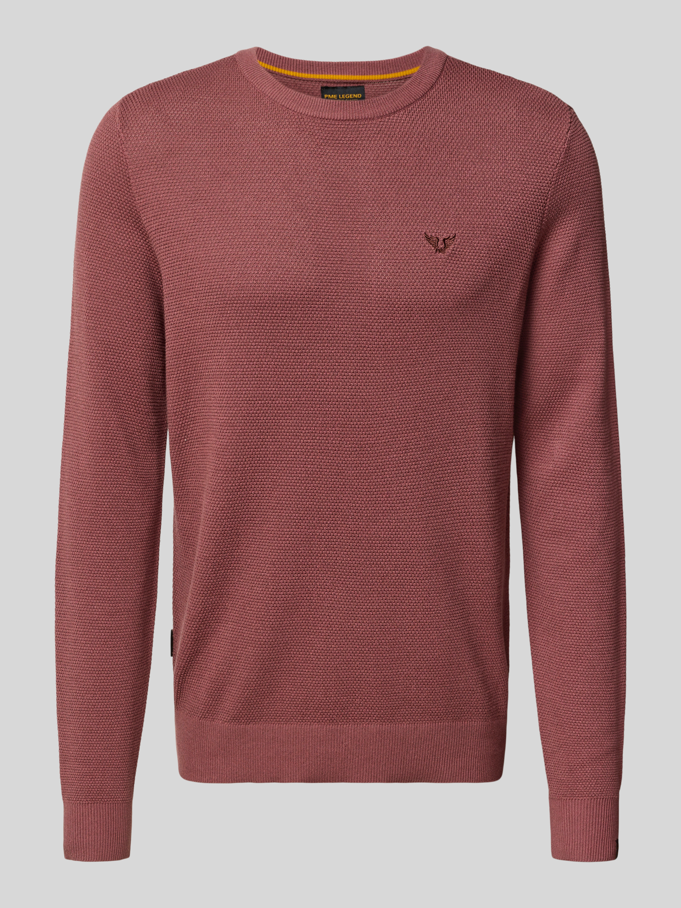 Gebreide pullover met ronde hals en labelstitching in lichtrood