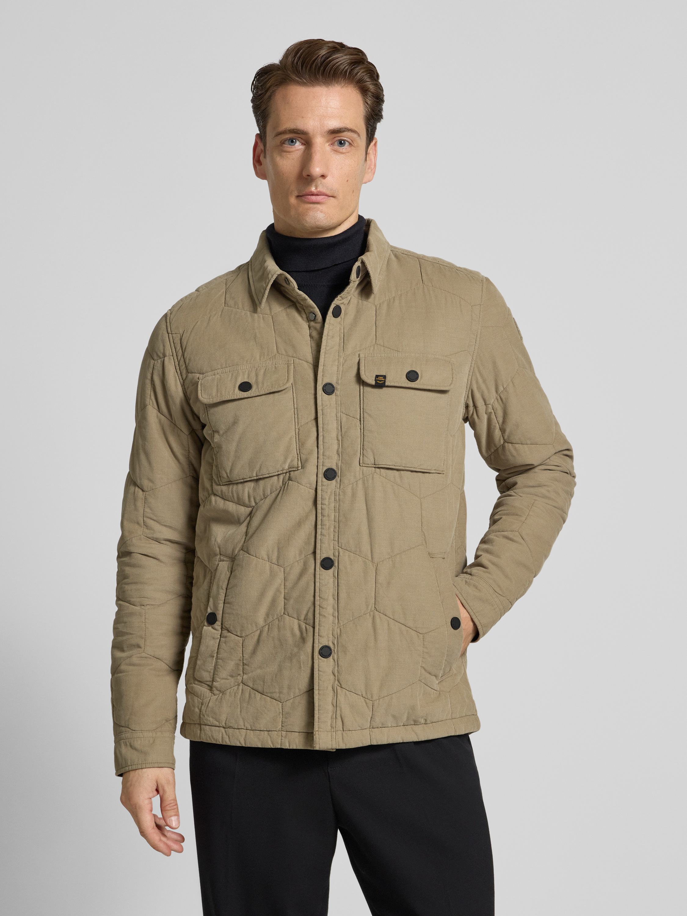 Overhemdjack met drukknoopsluiting in beige