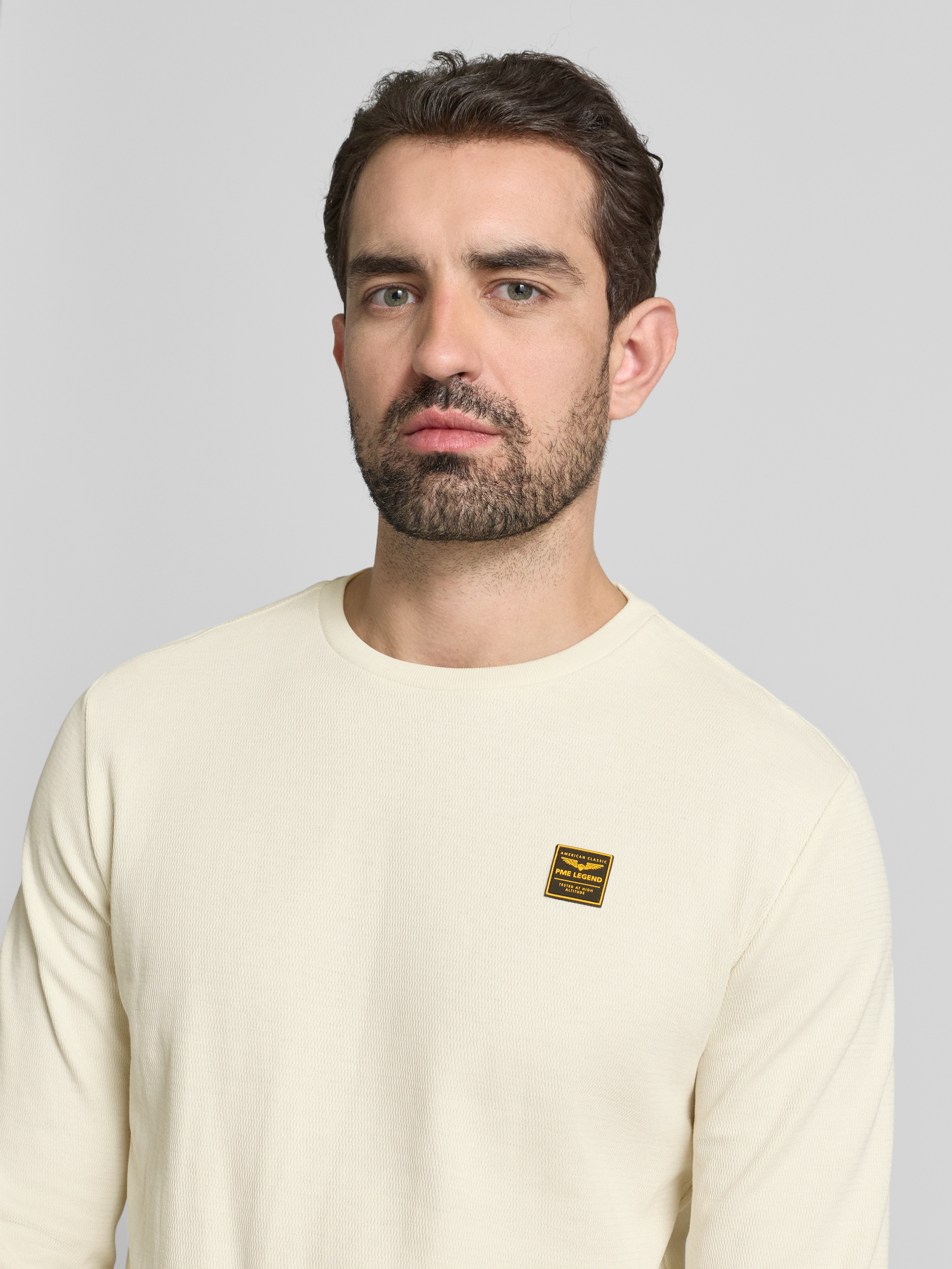 Shirt met lange mouwen en labeldetail in offwhite