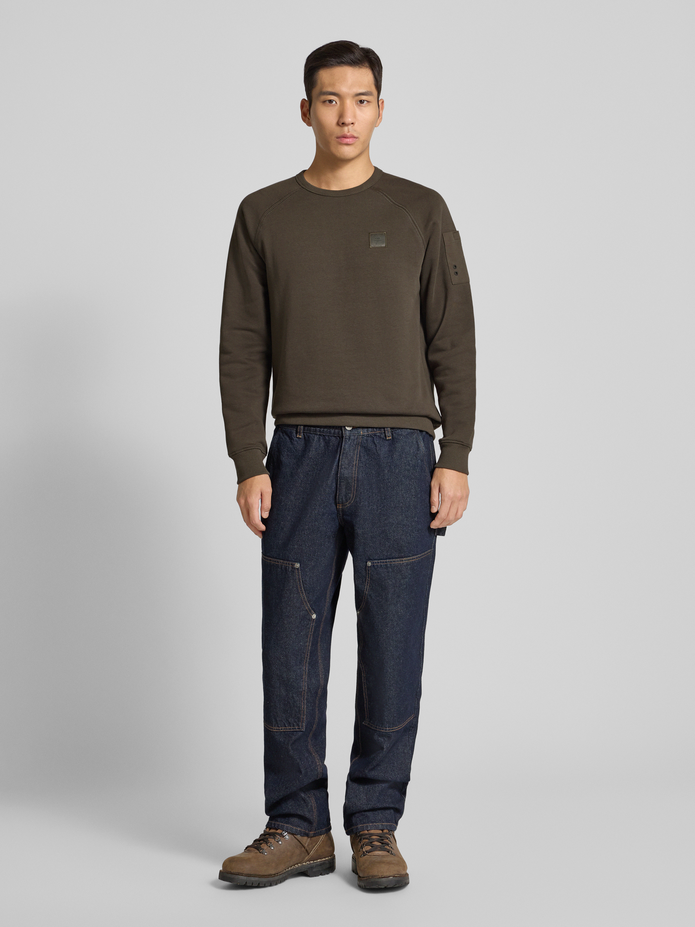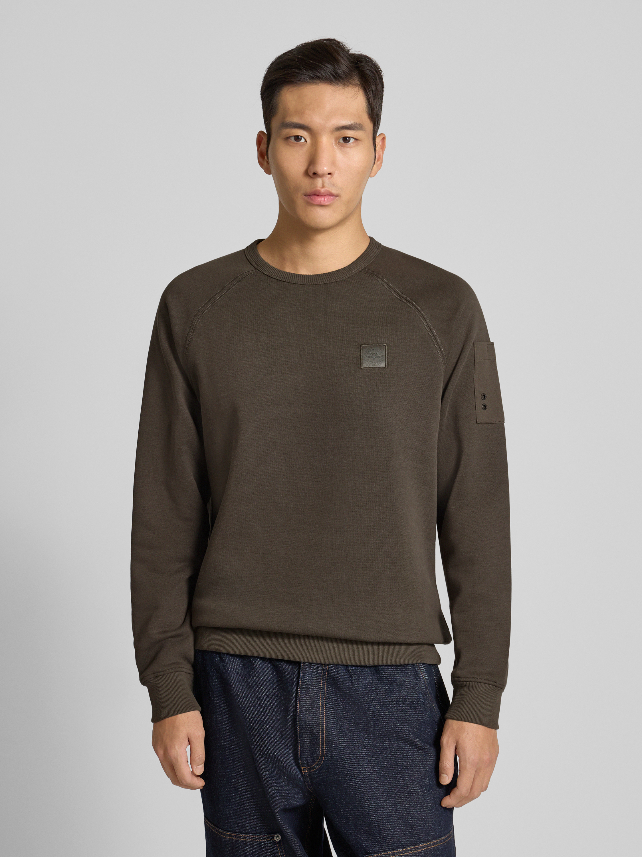 Sweatshirt met labelstitching in olijfgroen