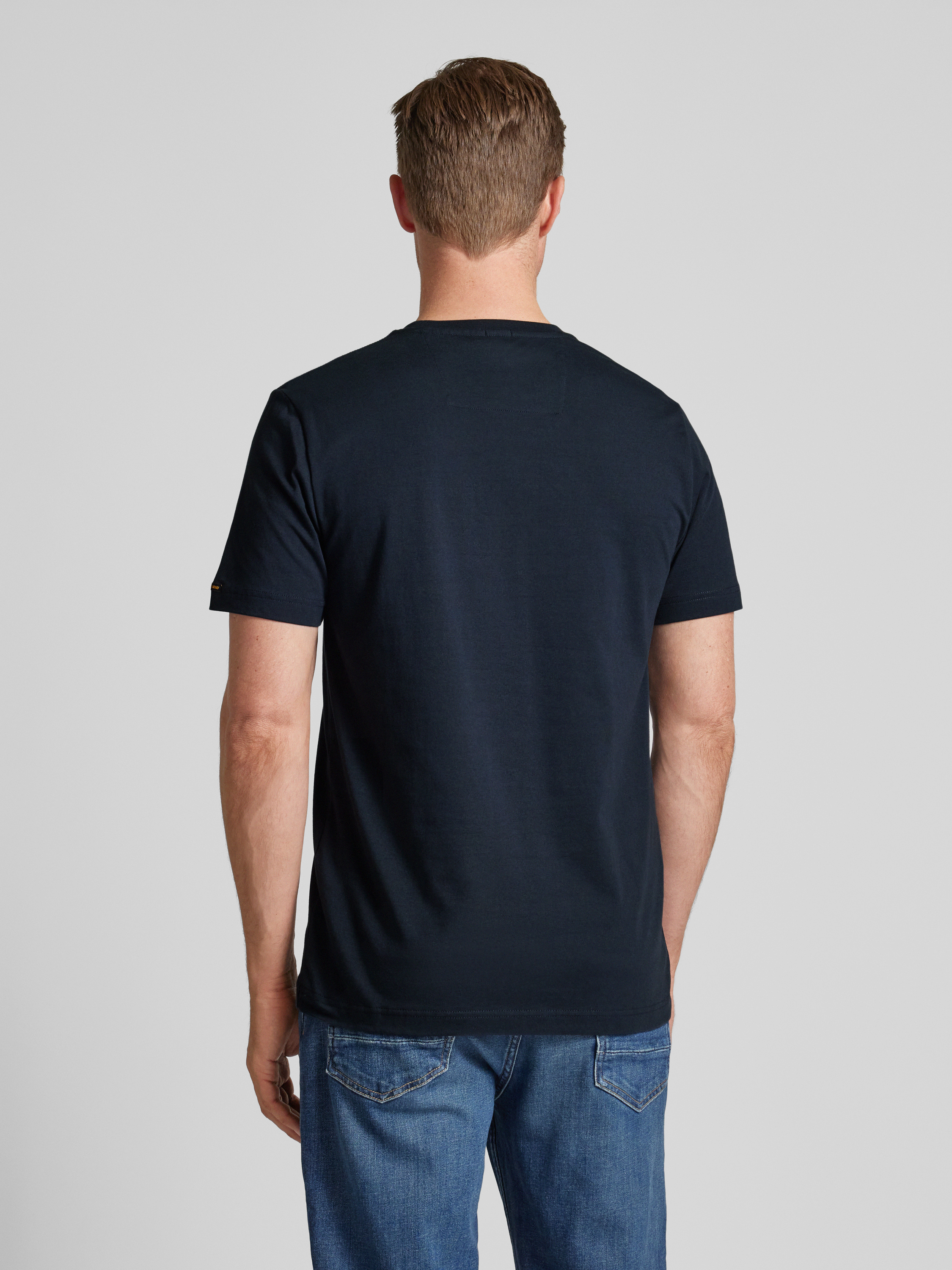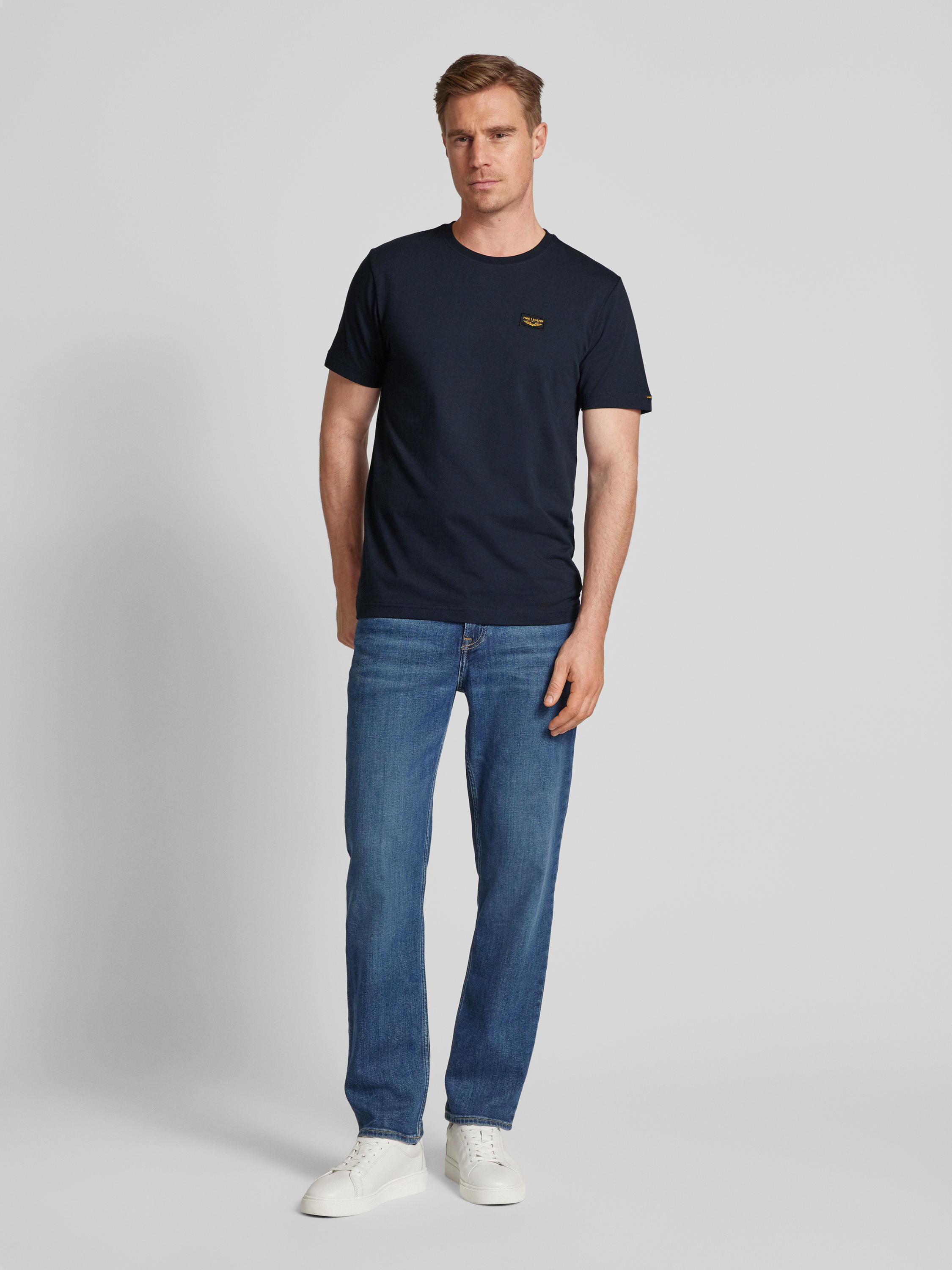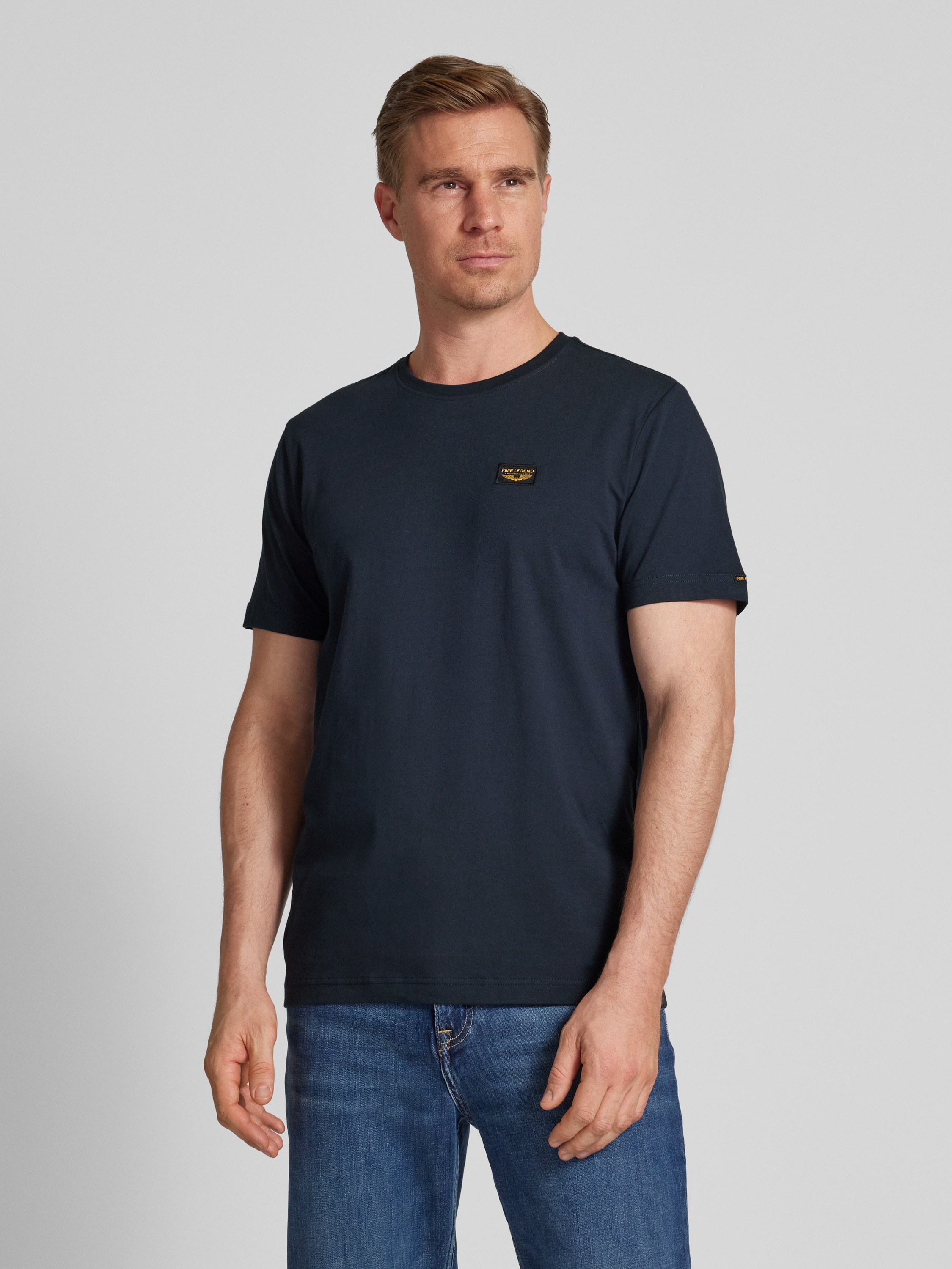 T-shirt met labelpatch, model 'GUYVER' in marineblauw