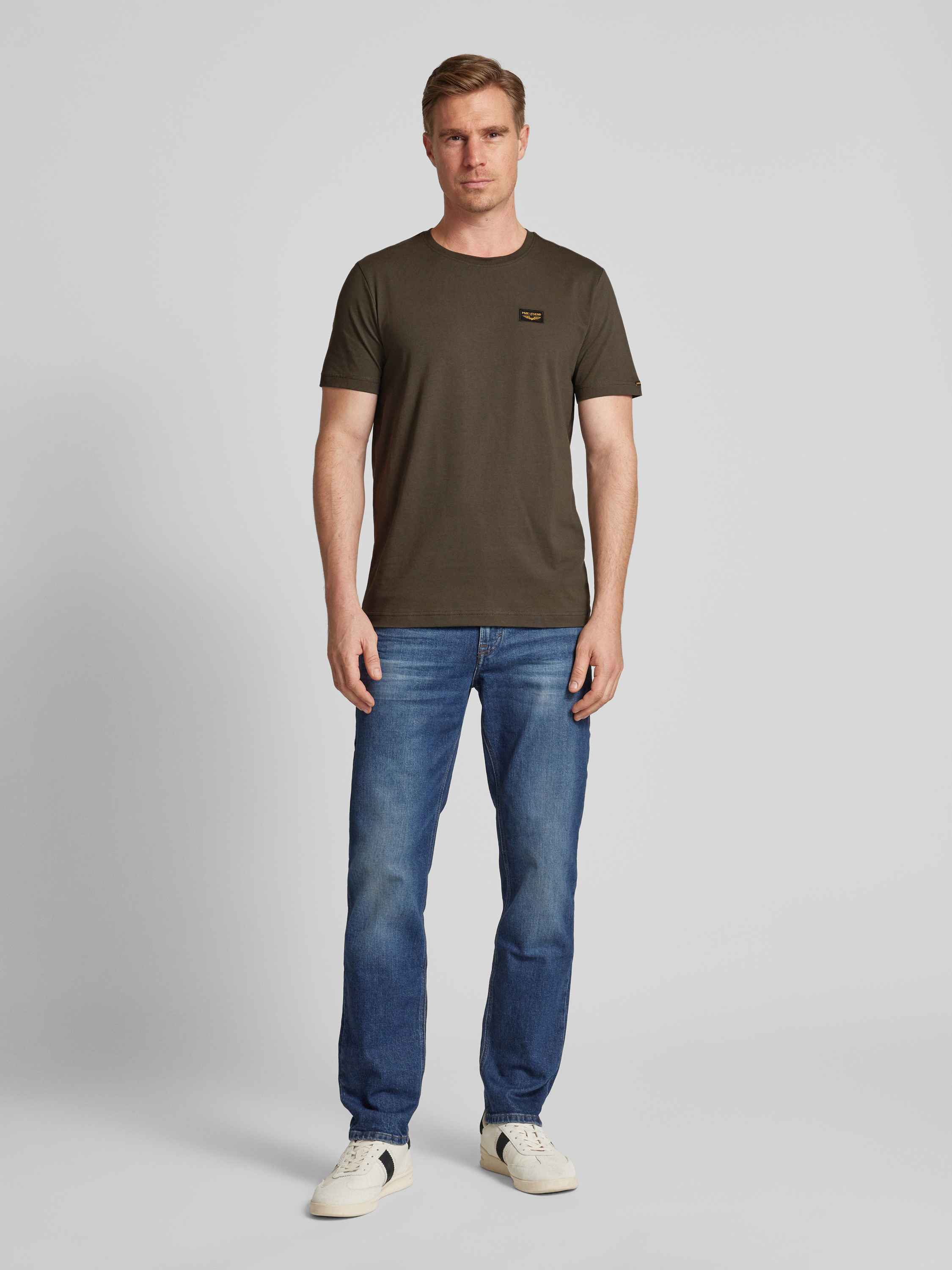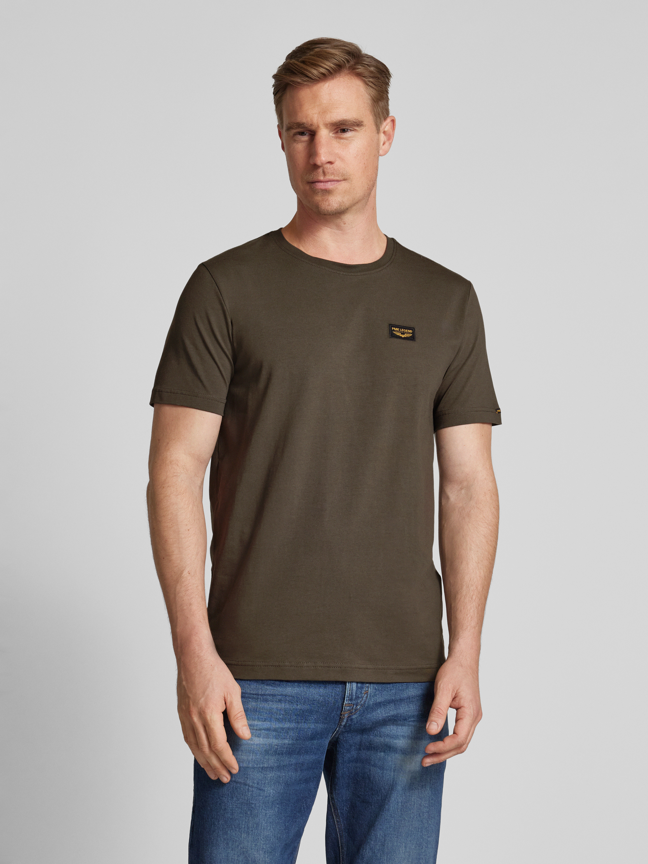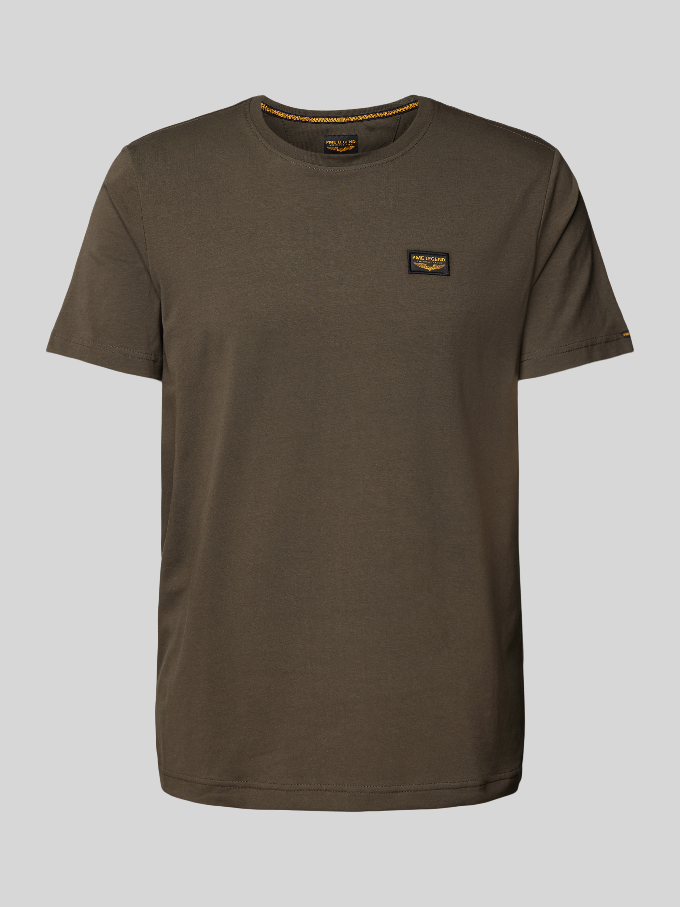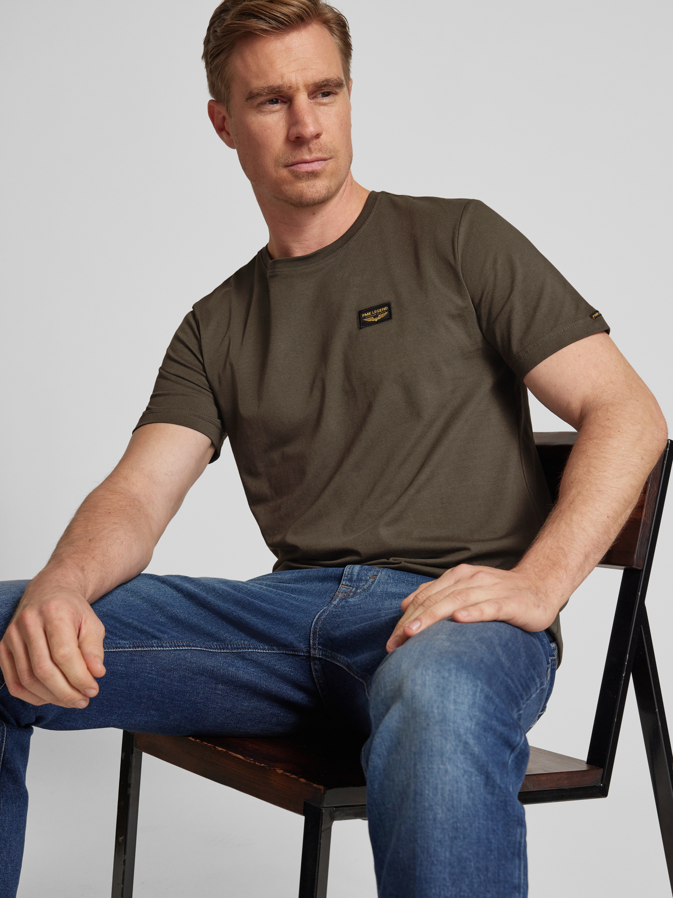 T-shirt met labelpatch, model 'GUYVER' in olijfgroen