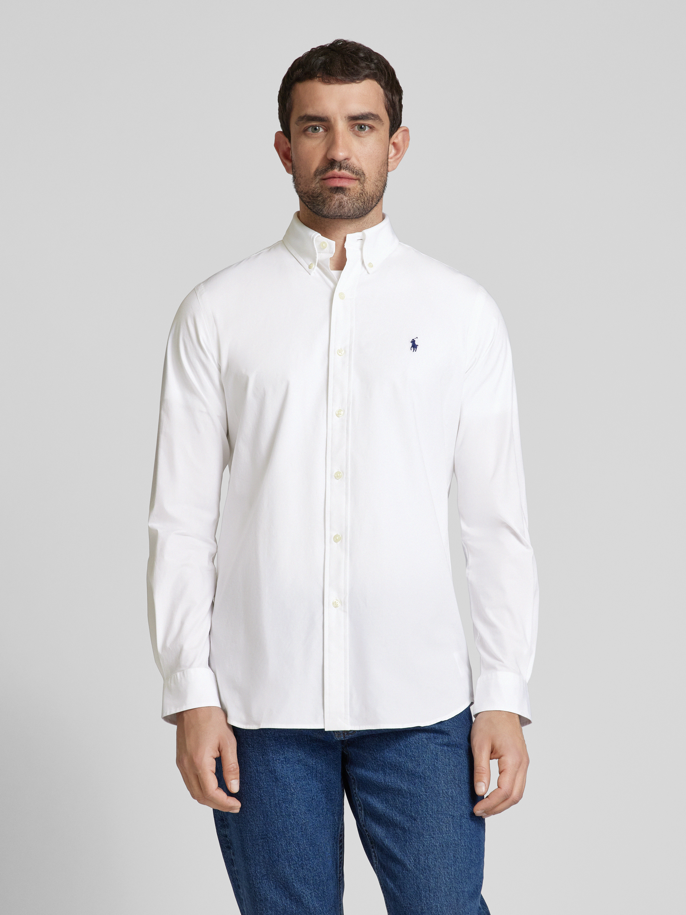 Custom fit vrijetijdsoverhemd met logostitching in wit