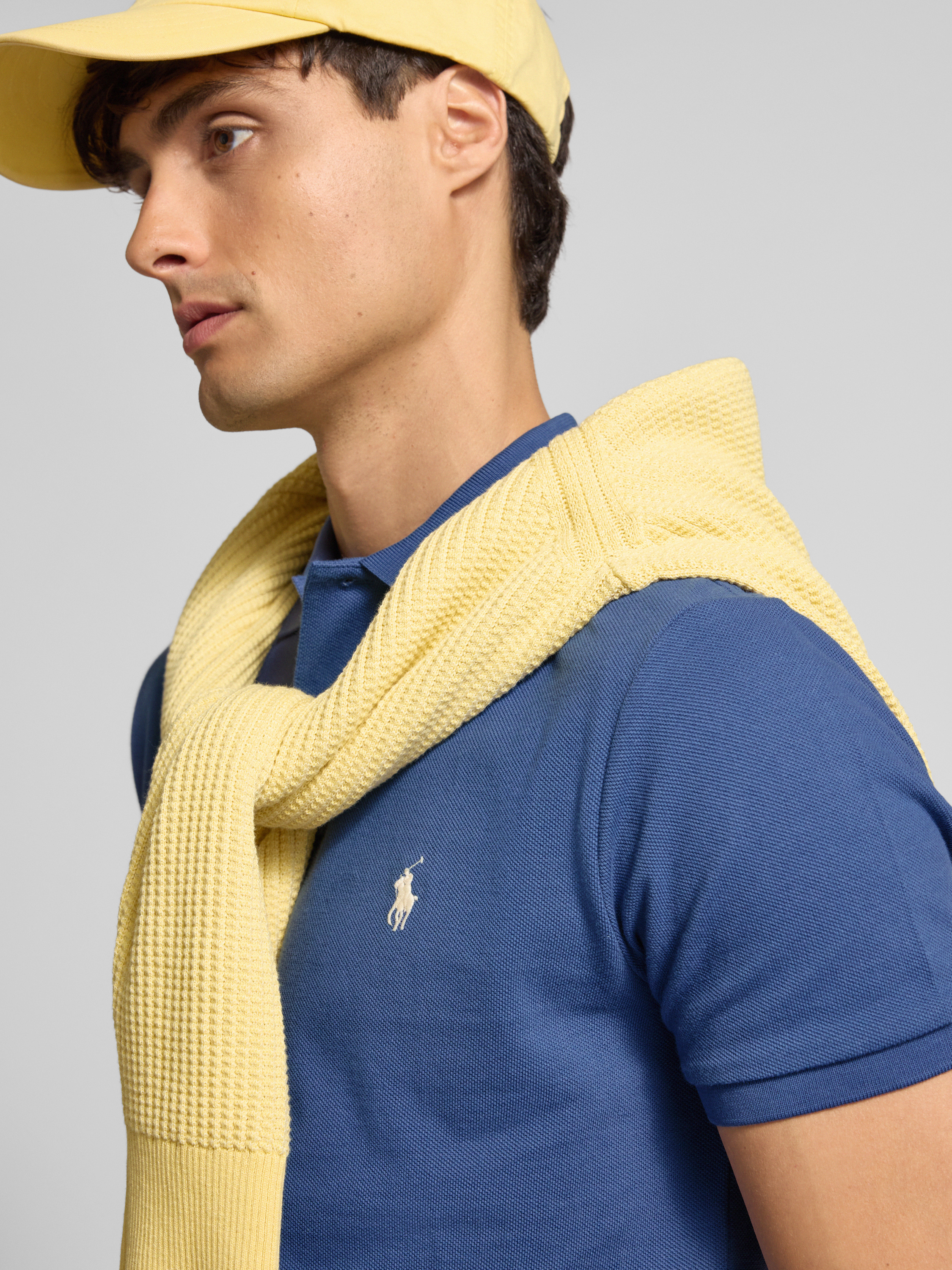 Polo Ralph LaurenCustom slim fit poloshirt met labelstitching in lichtblauw
