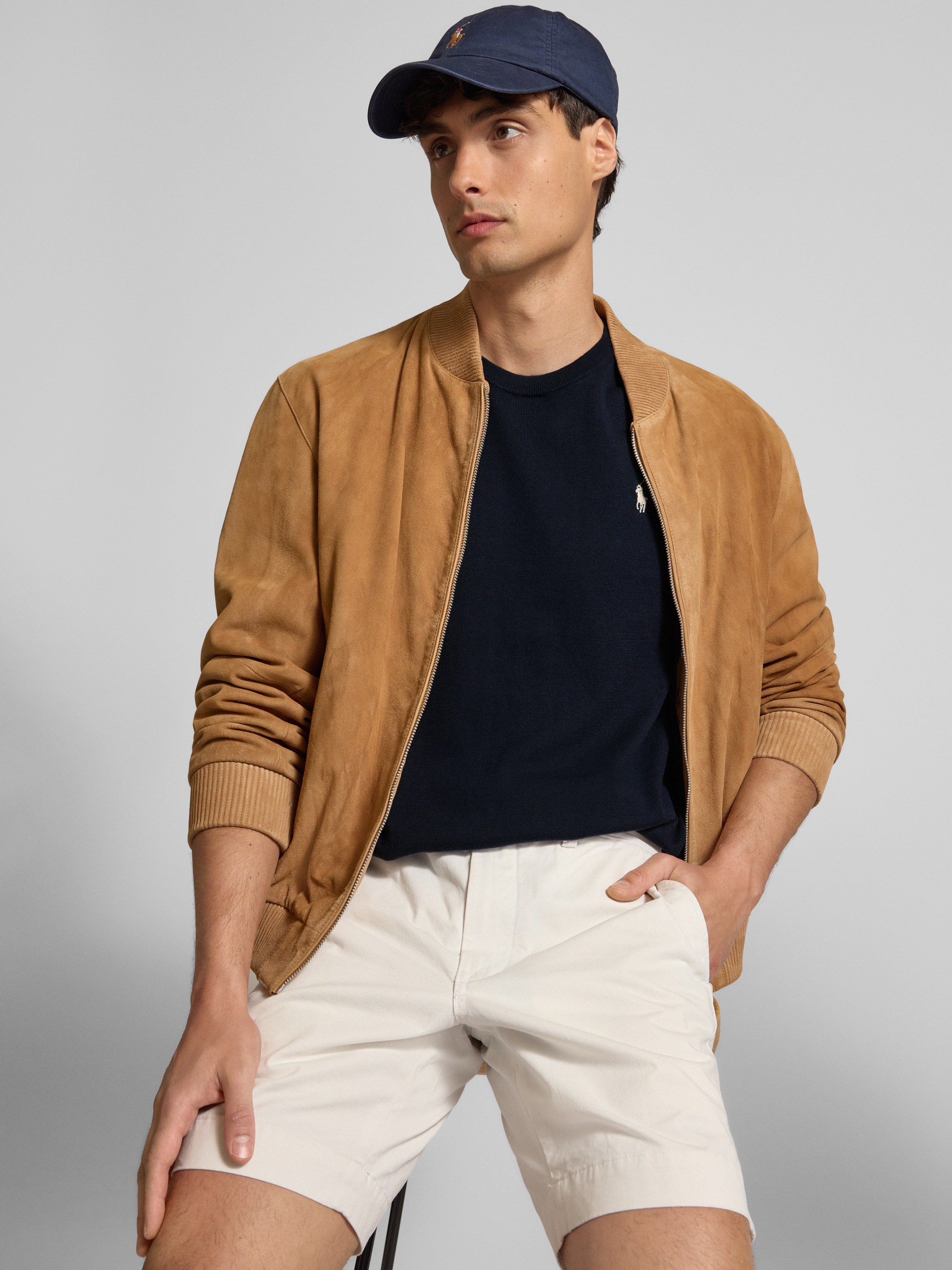 Gebreid shirt met ronde hals en labelstitching in marineblauw