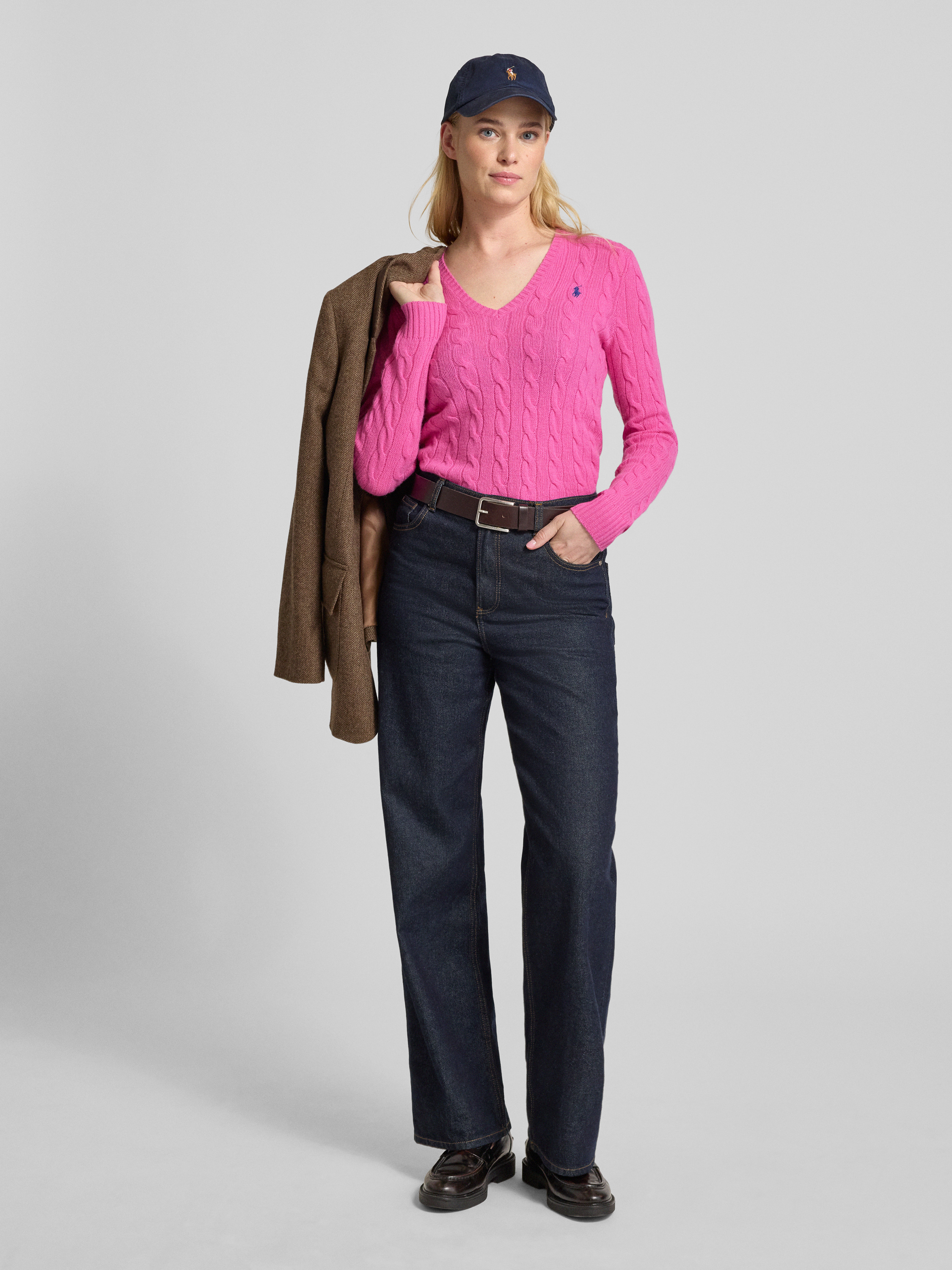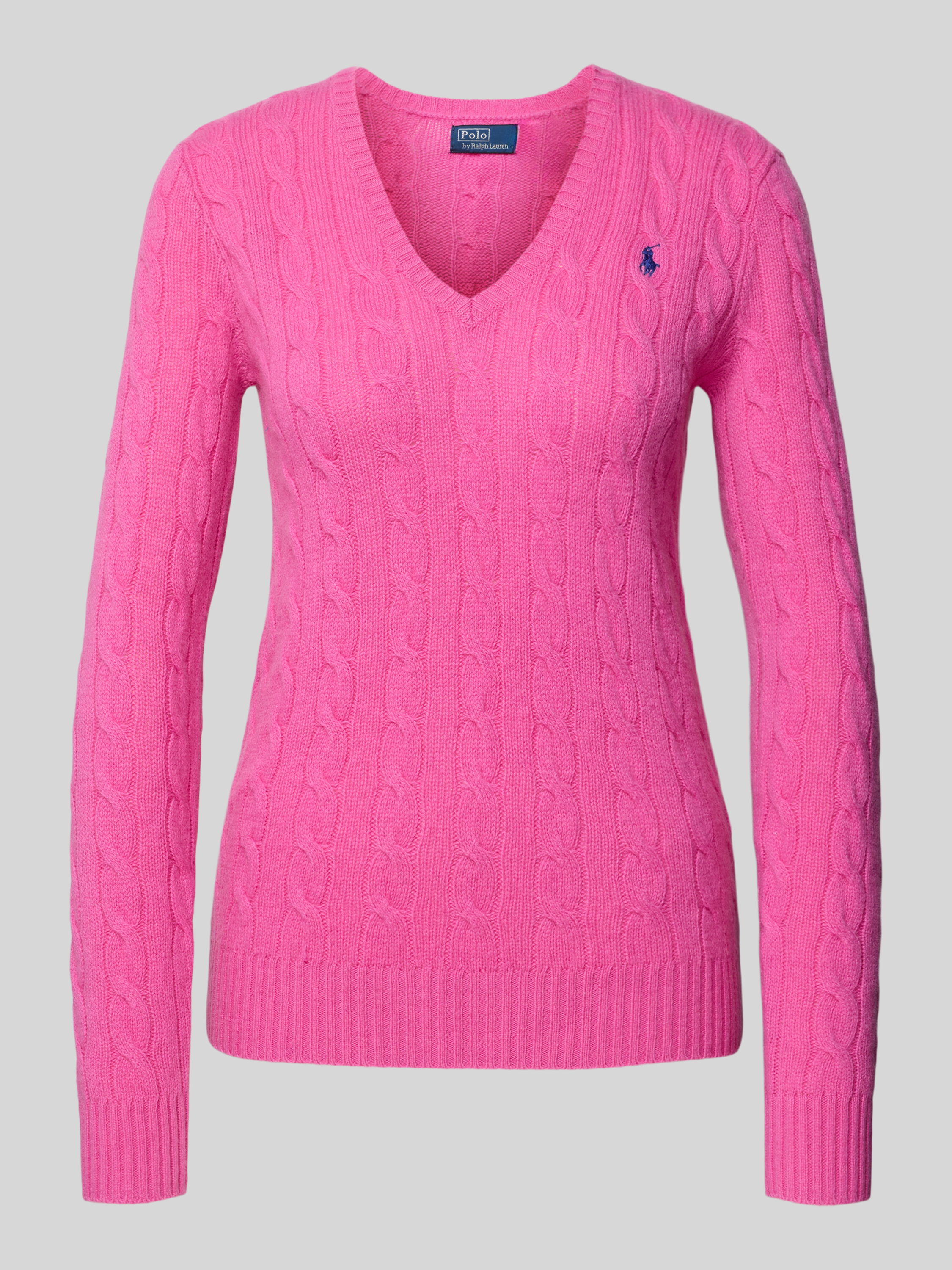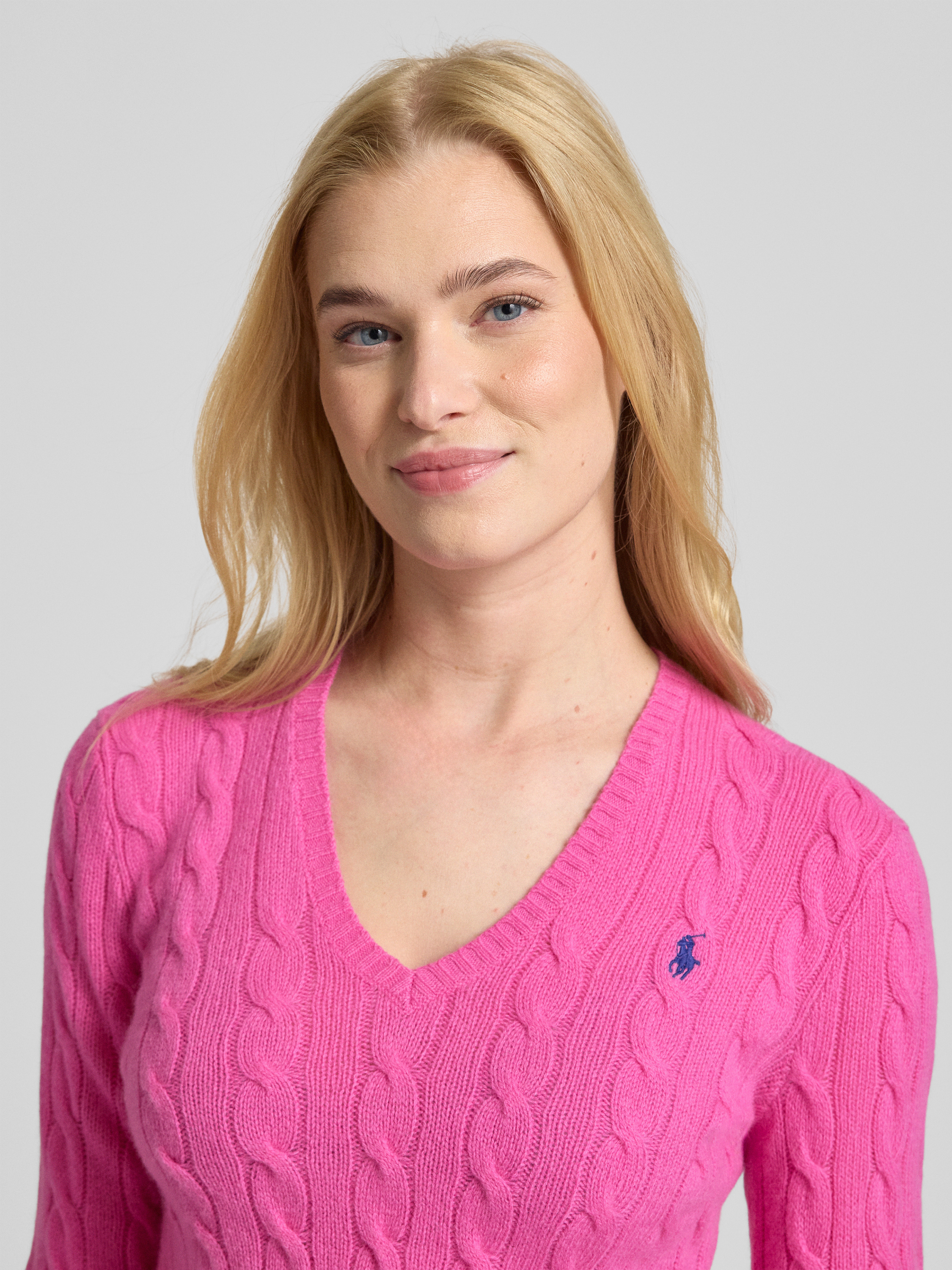 Gebreide pullover met kasjmier, model 'KIMBERLY' in felroze