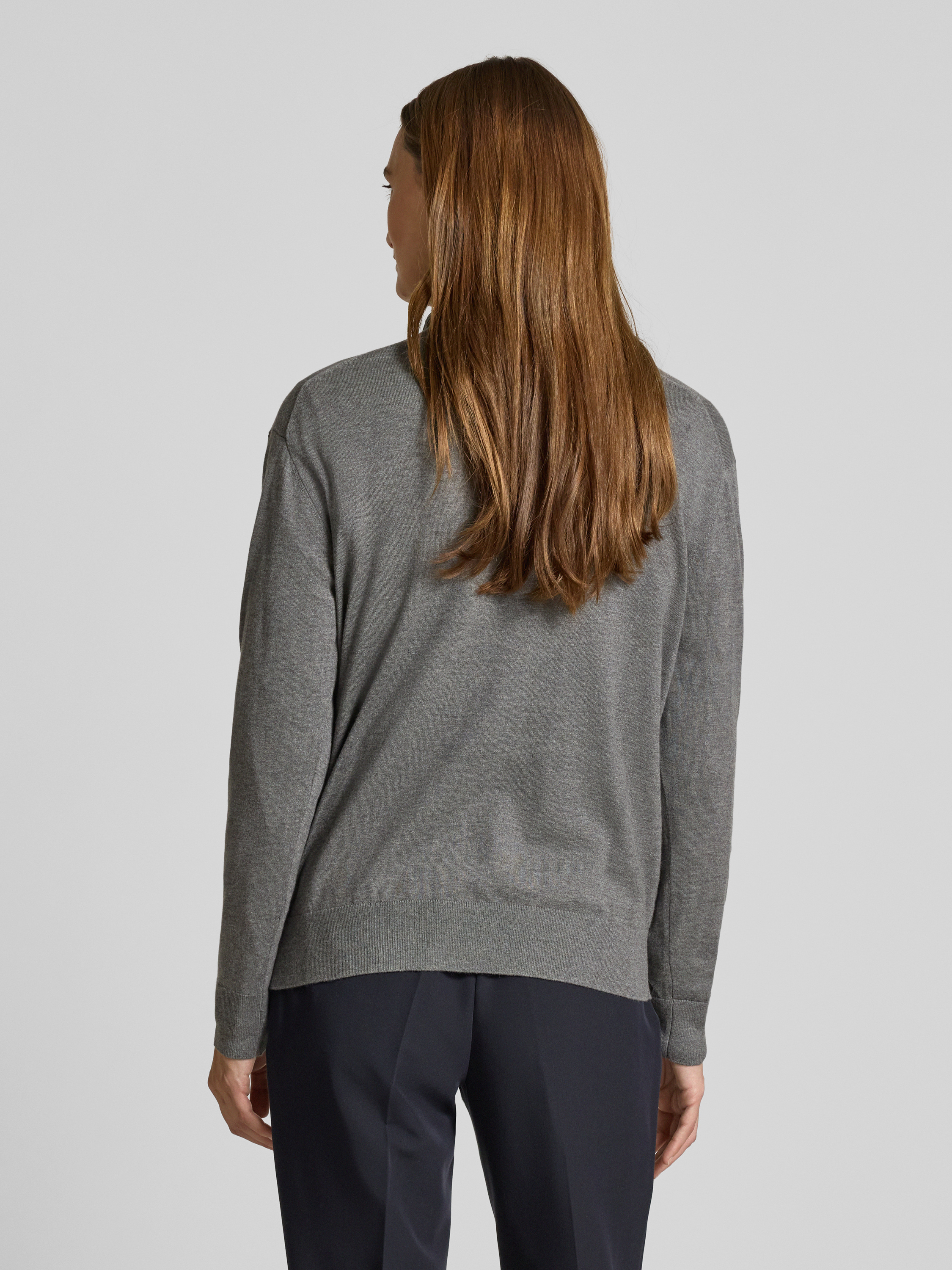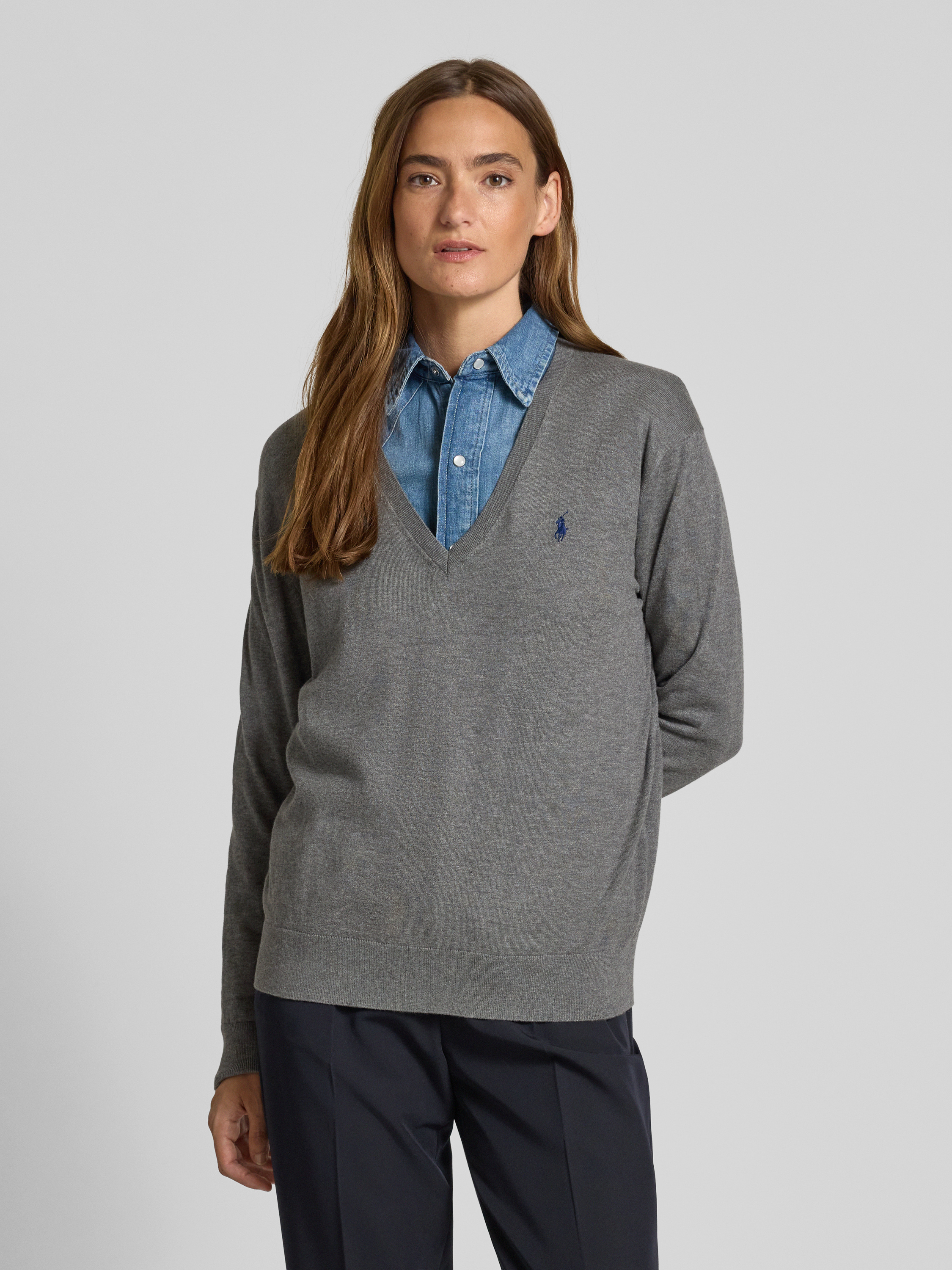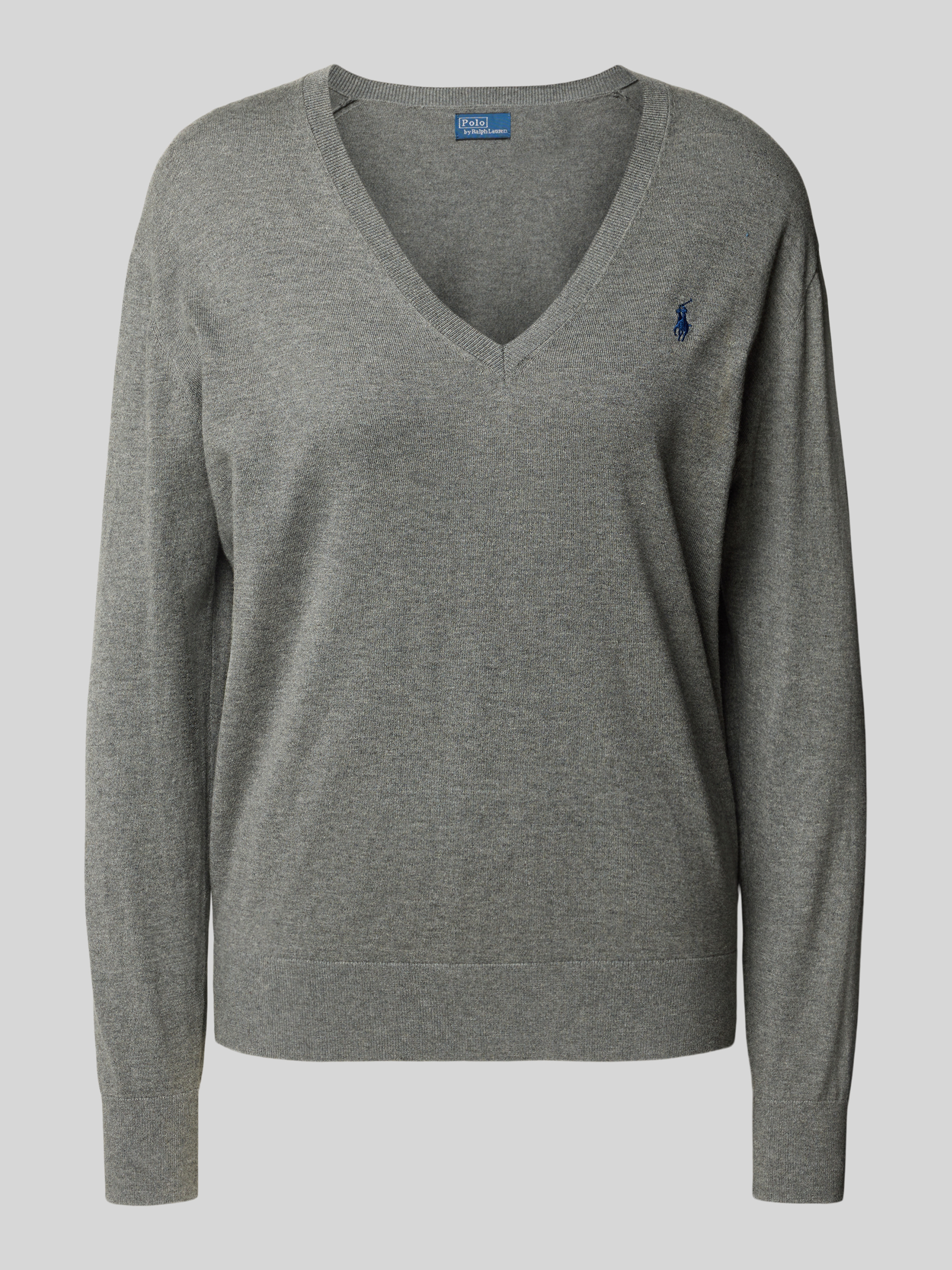 Gebreide pullover met logostitching en V-hals in middengrijs