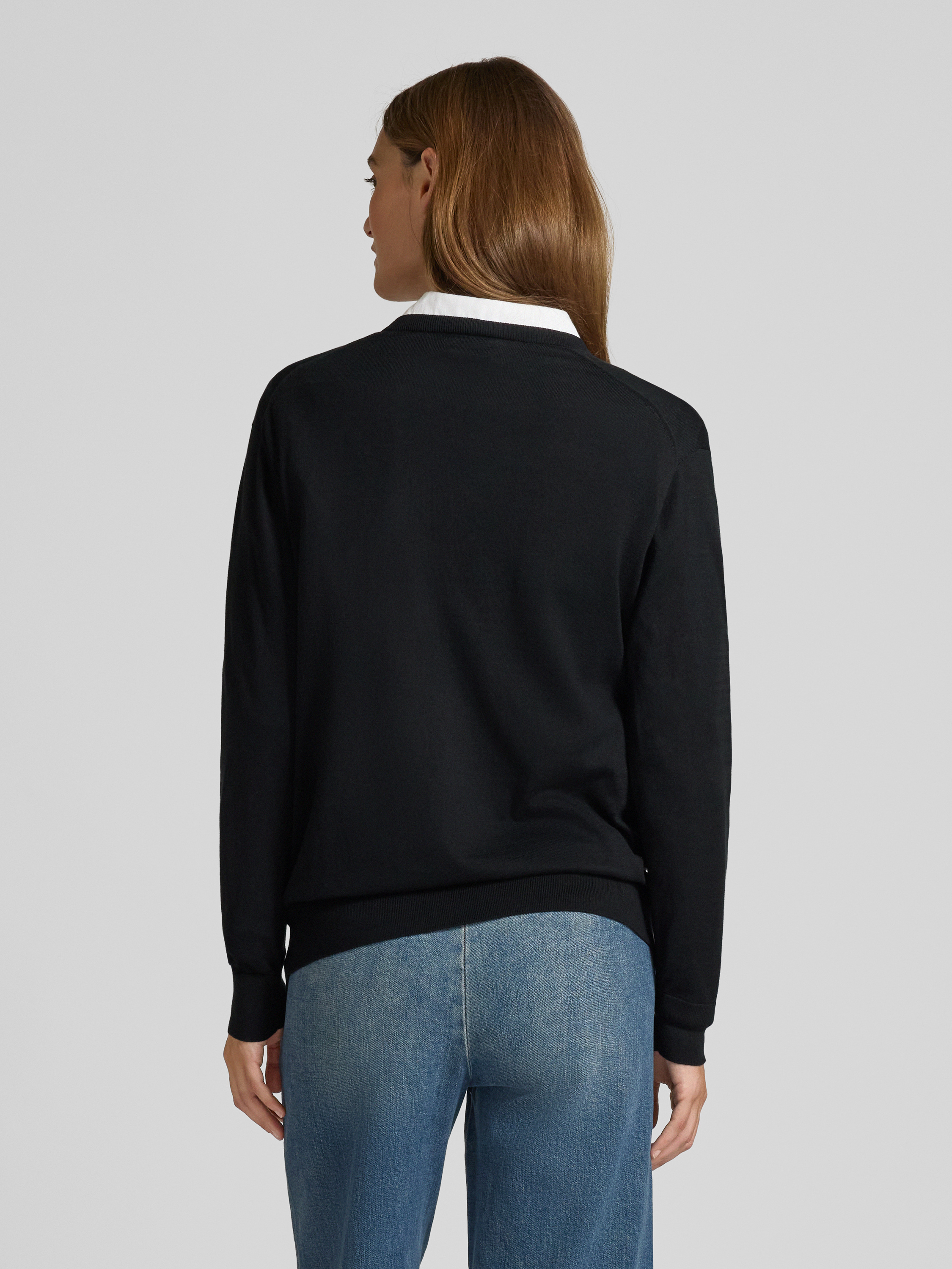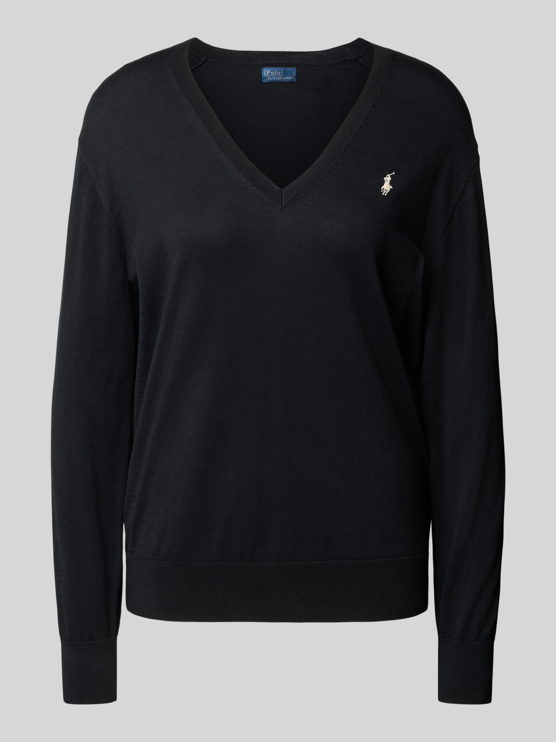 Gebreide pullover met logostitching en V-hals in zwart