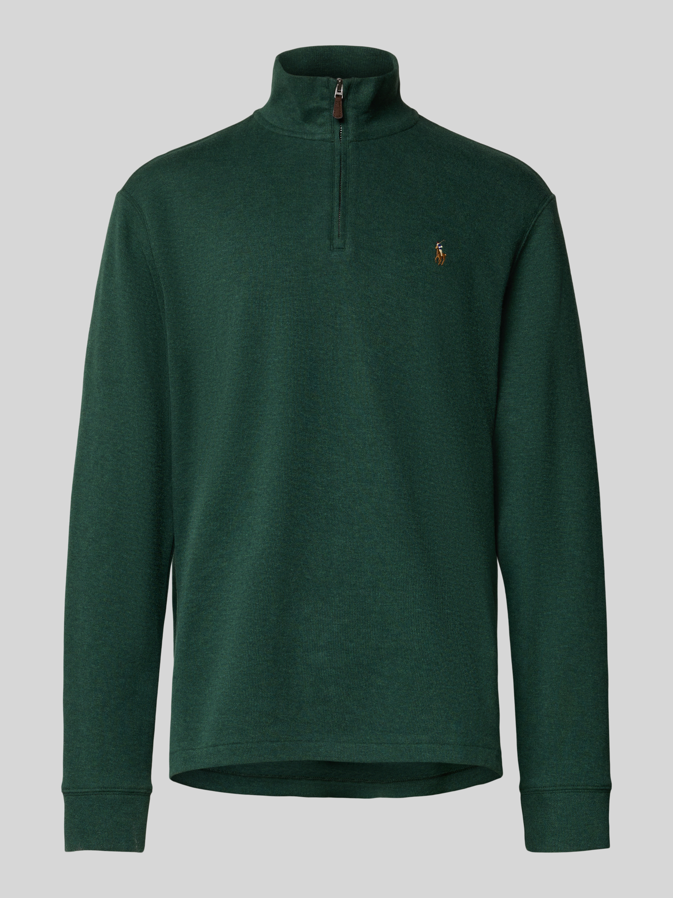 Gebreide pullover met opstaande kraag in flessengroen gemêleerd