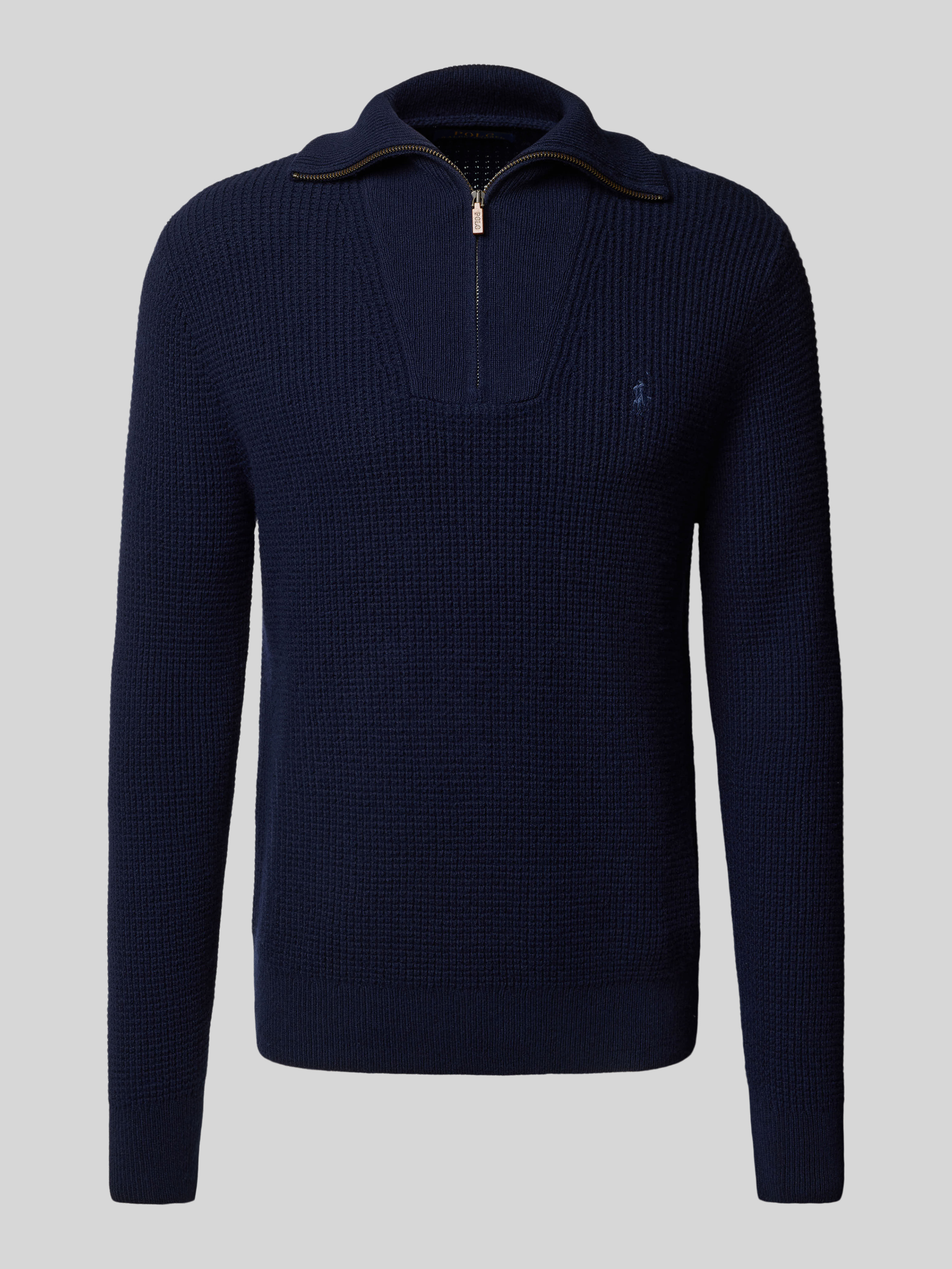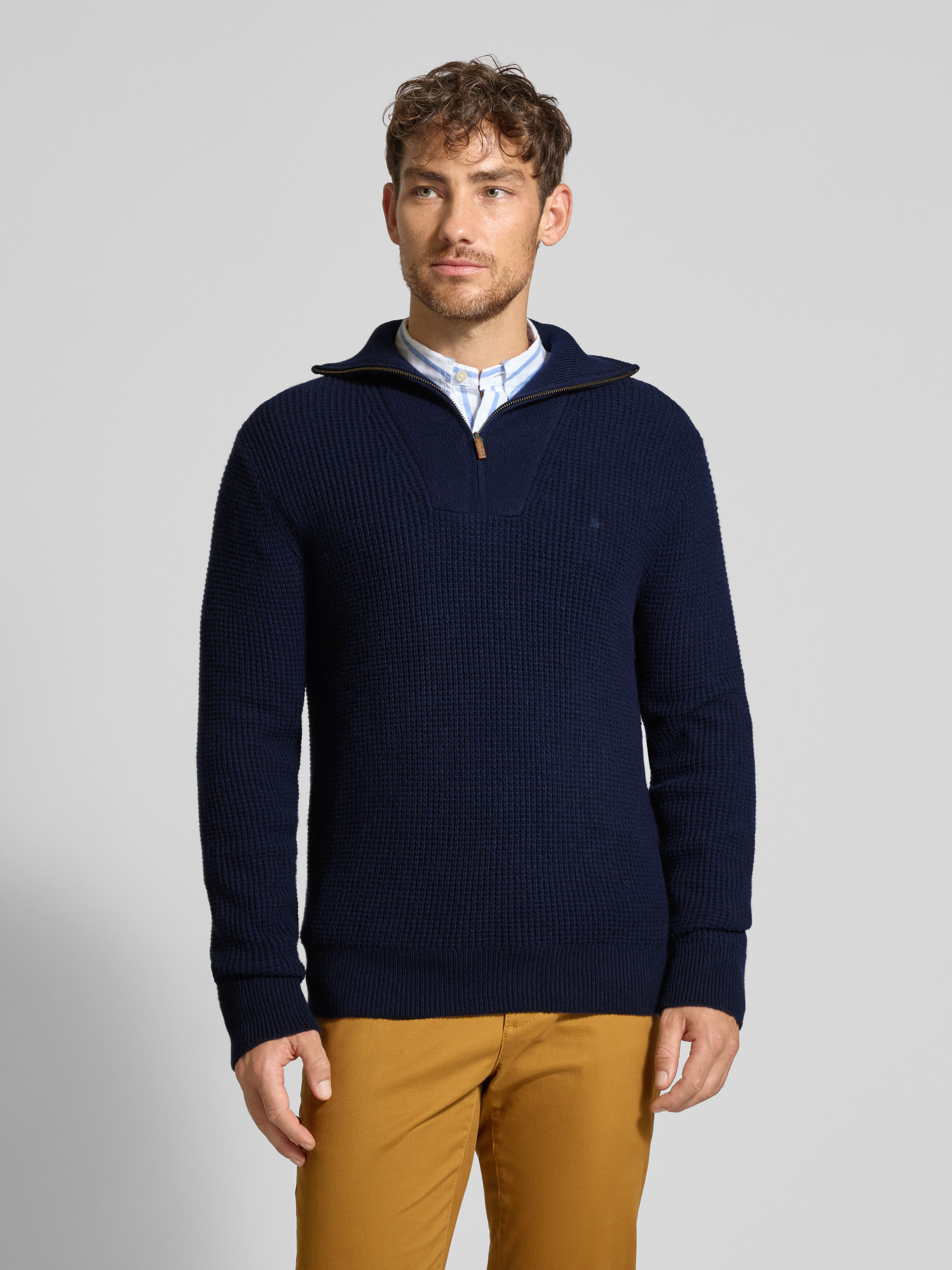 Gebreide pullover met schipperskraag en labelstitching in marineblauw