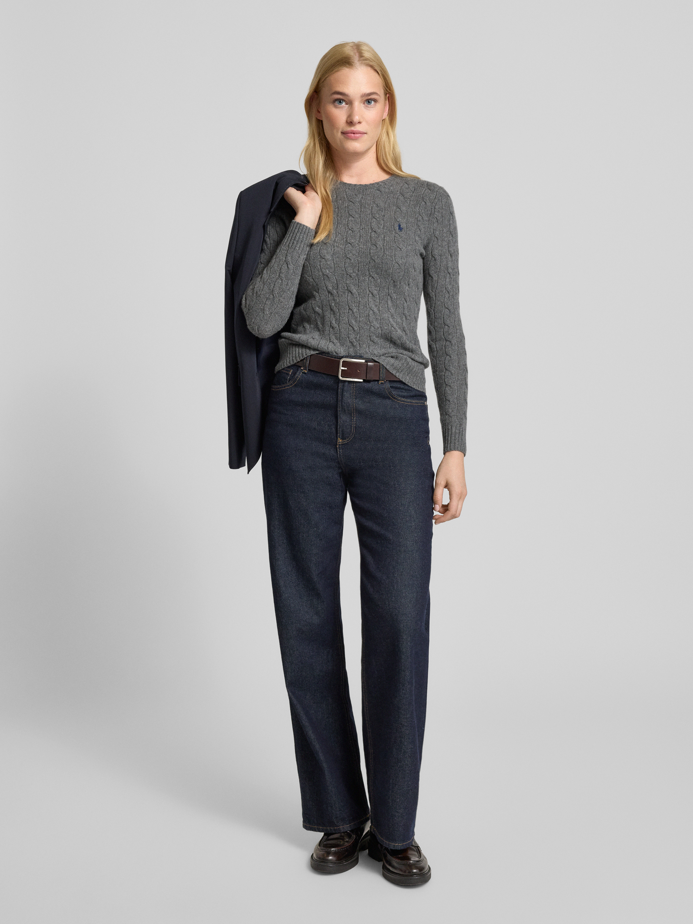 Gebreide pullover van een mix van wol en kasjmier, model 'JULIANNA' in middengrijs gemêleerd