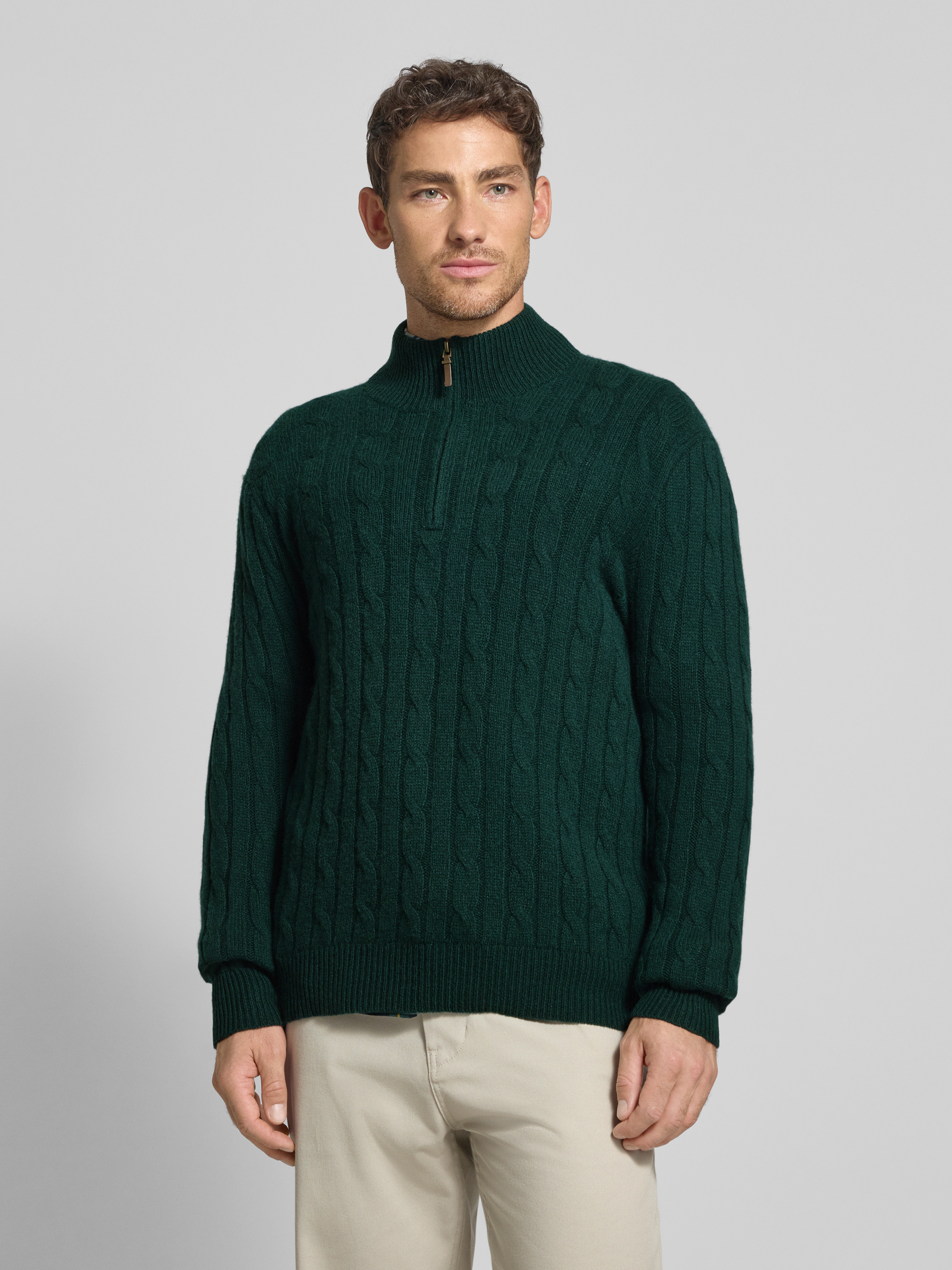 Gebreide pullover van kasjmier met opstaande kraag en ritssluiting in donkergroen