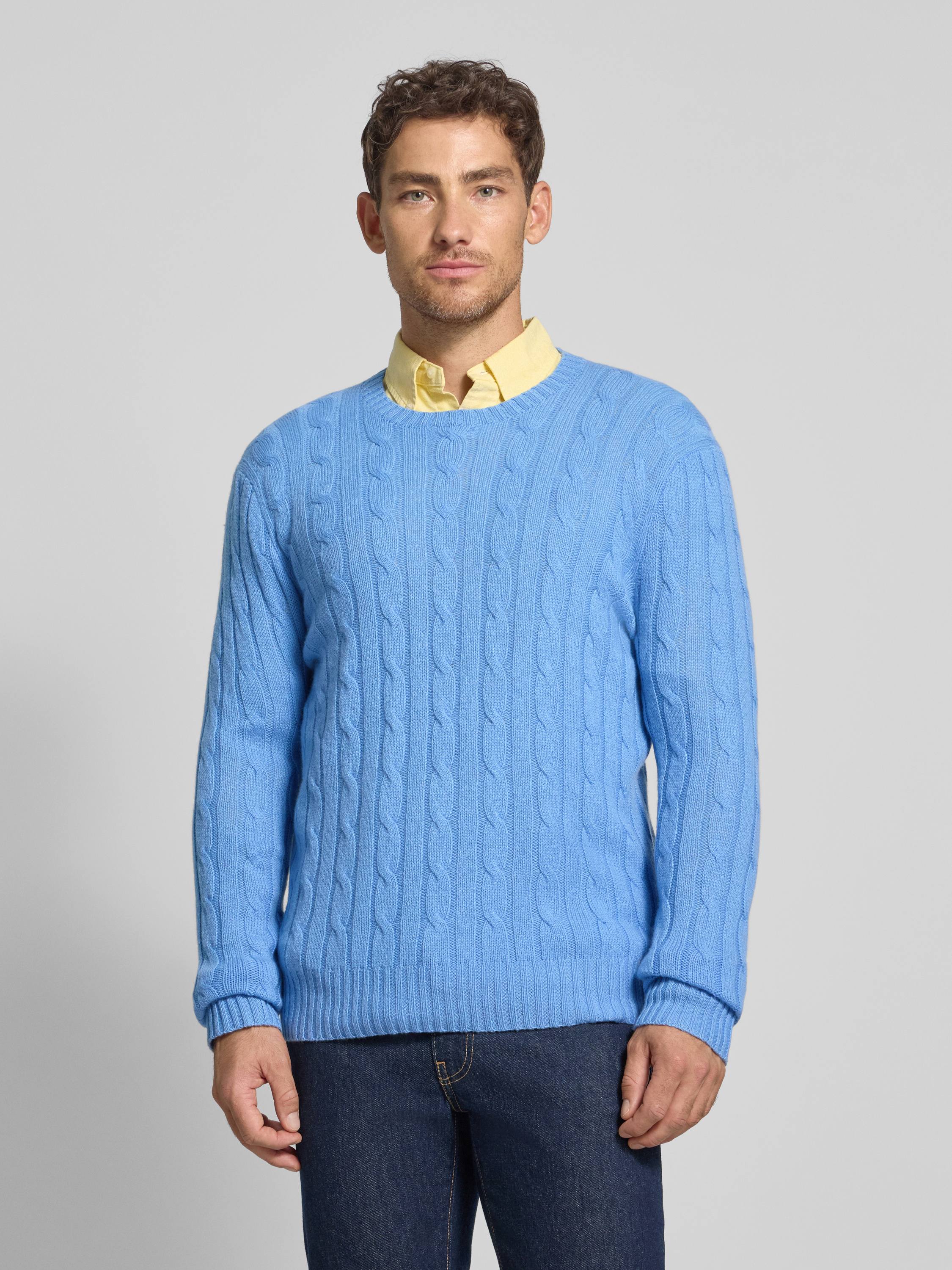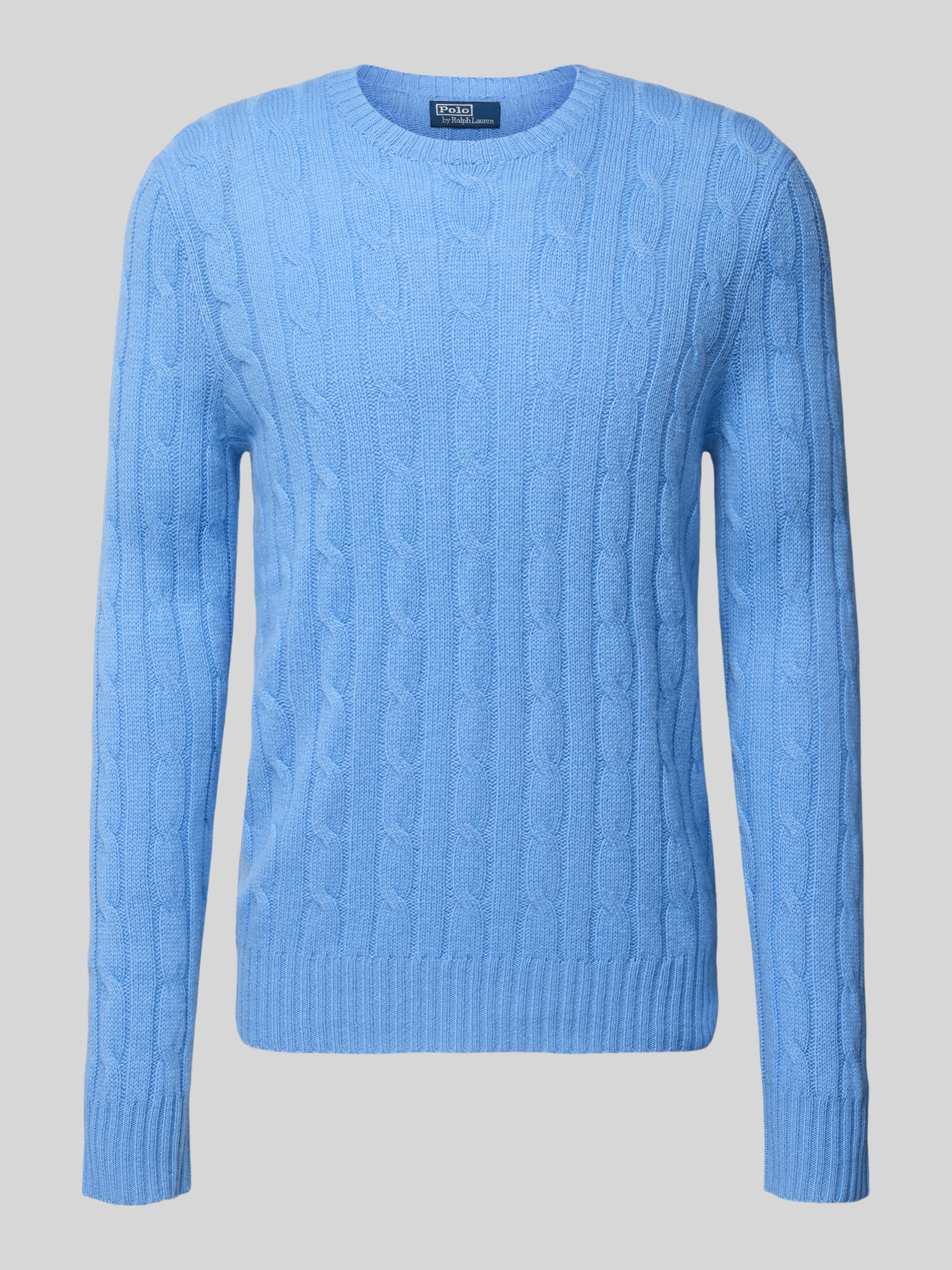 Gebreide pullover van kasjmier met ronde hals in lichtblauw gemêleerd
