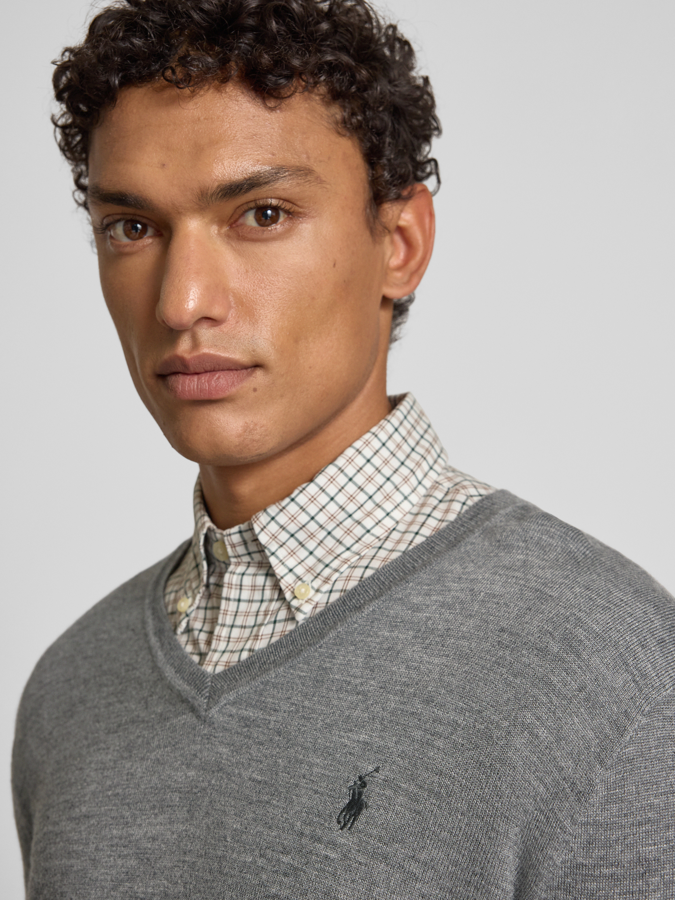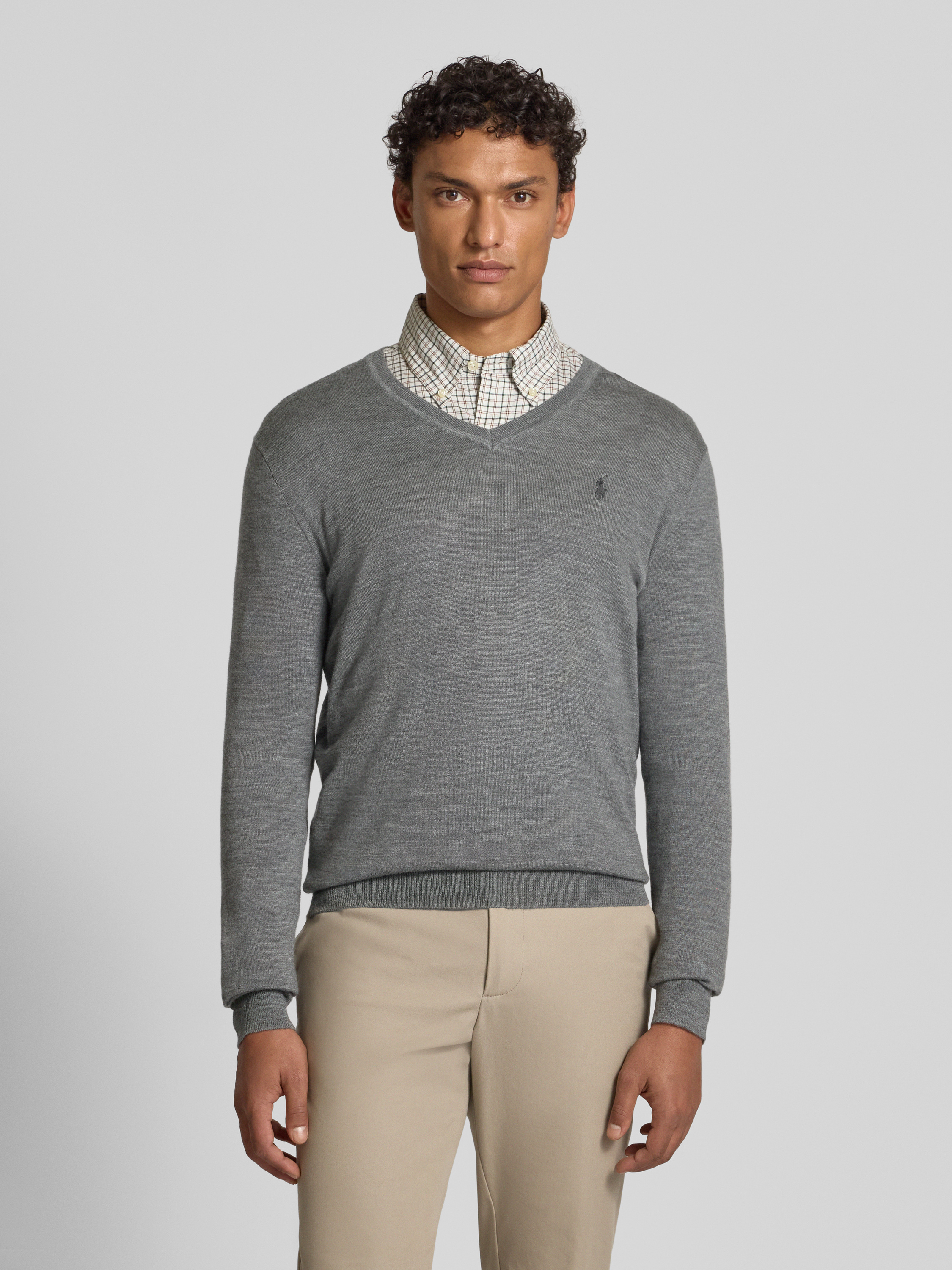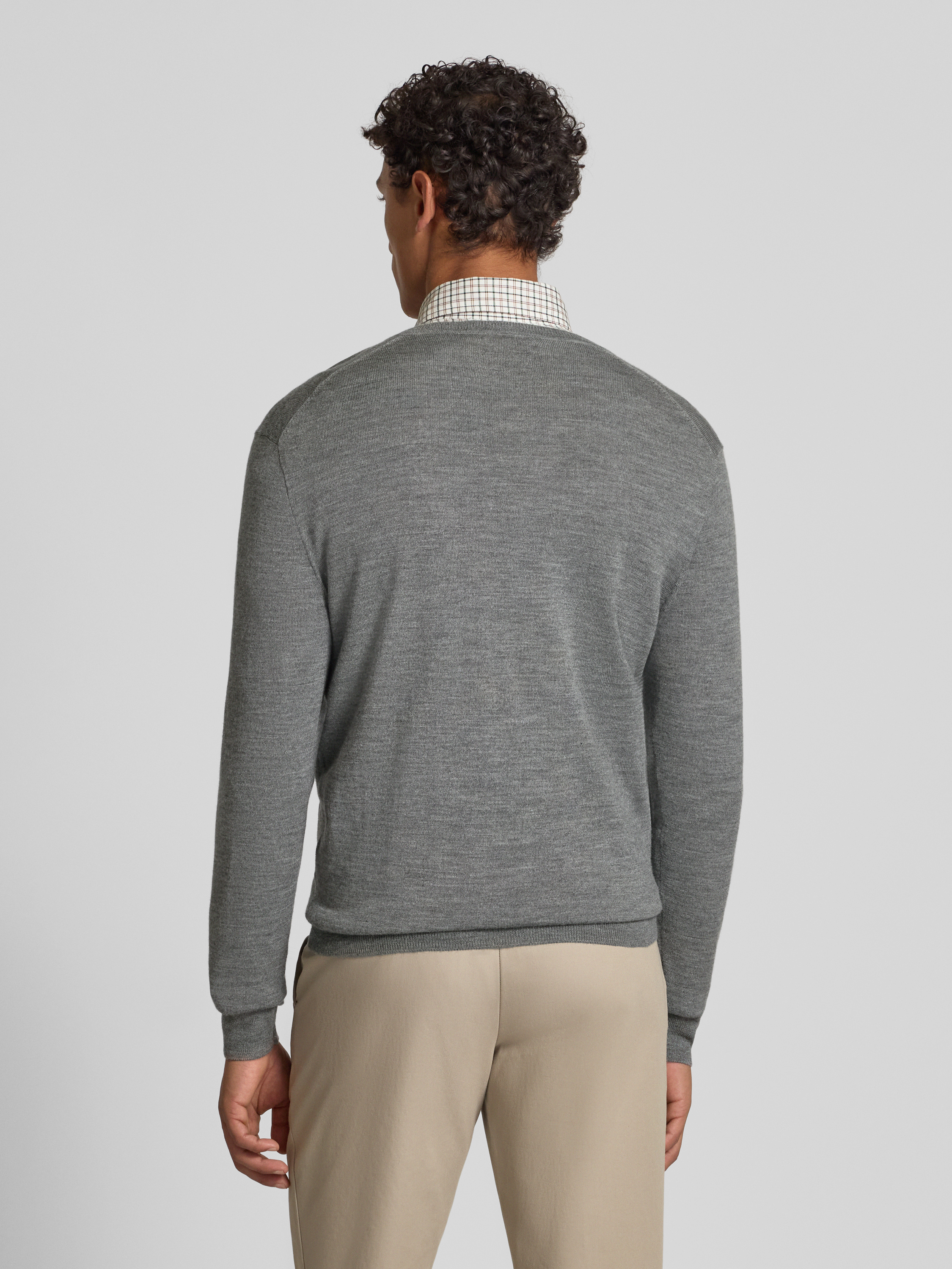 Gebreide pullover van merinowol met V-hals in lichtgrijs