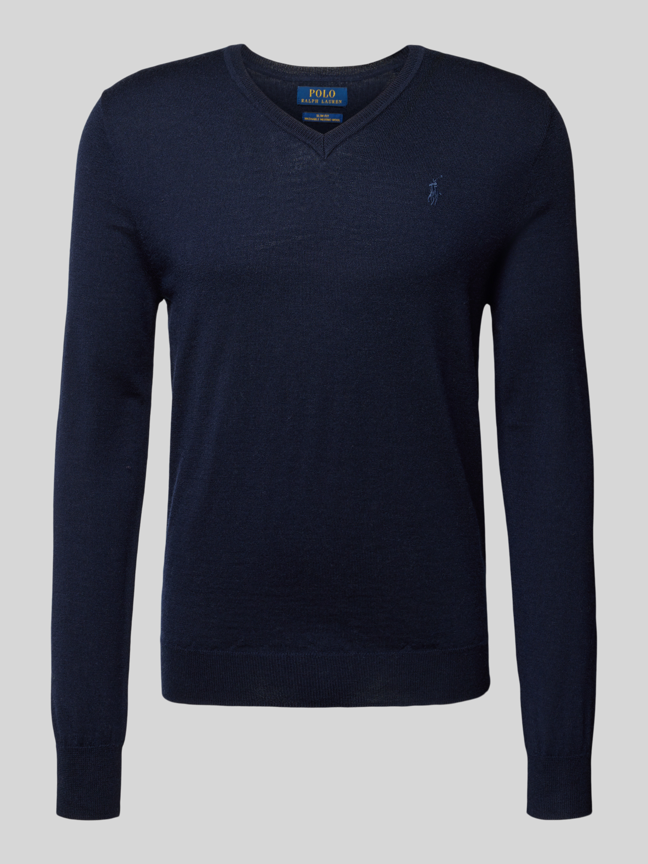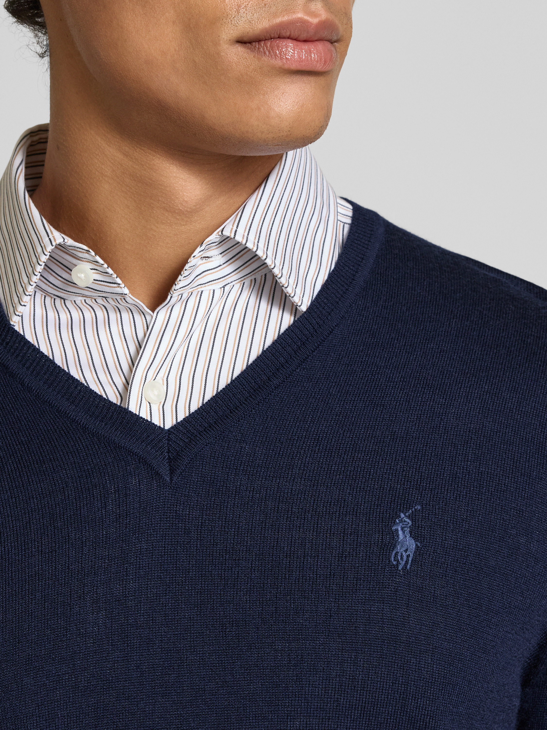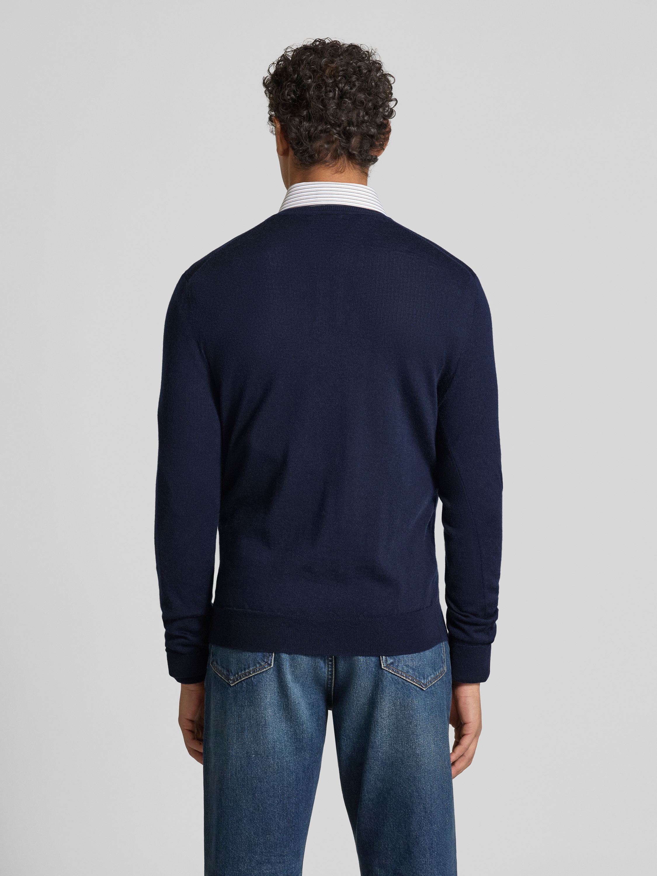 Gebreide pullover van merinowol met V-hals in marineblauw