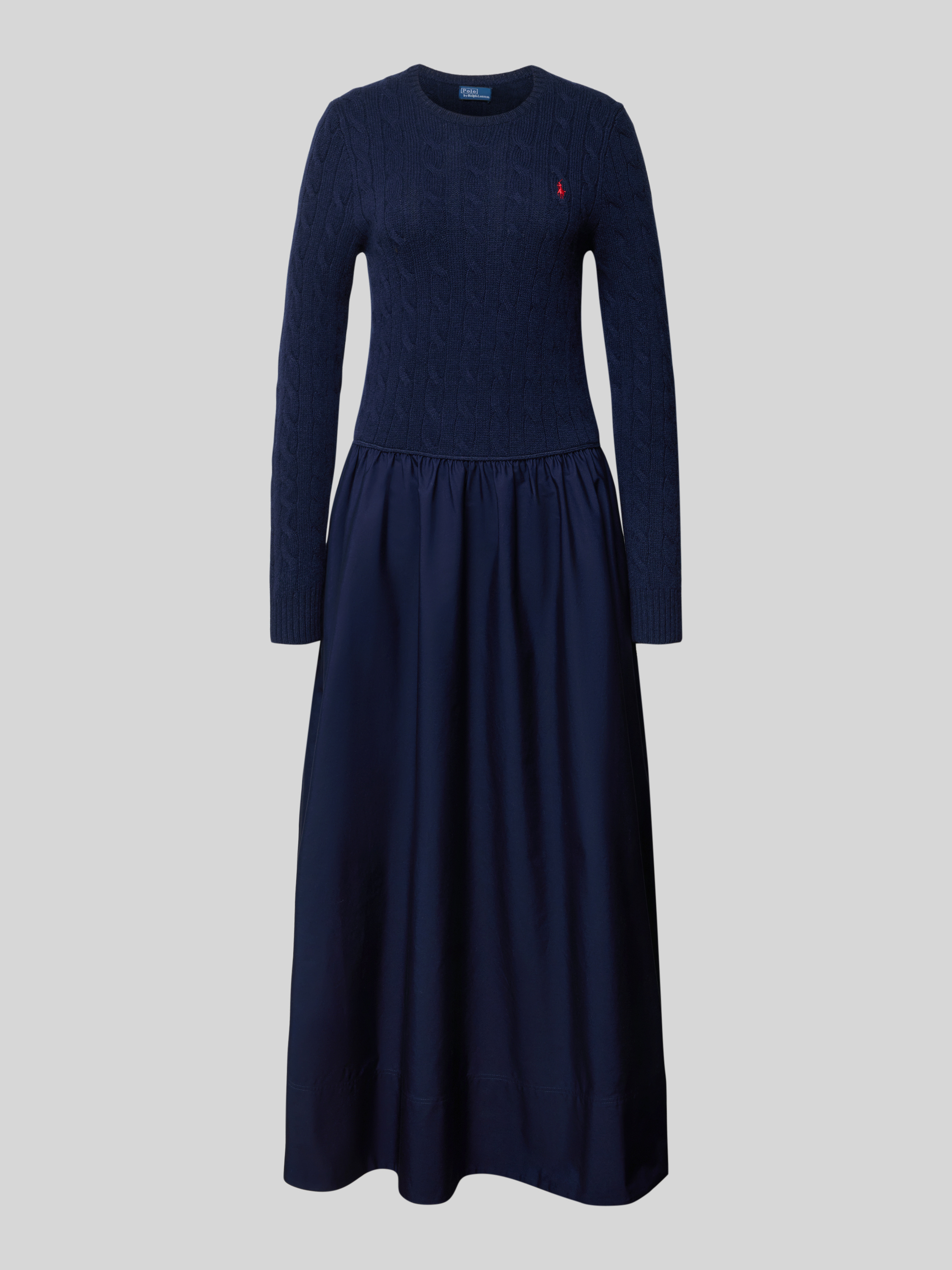 Getailleerde midi-jurk van lanawolmix met kasjmier in marineblauw