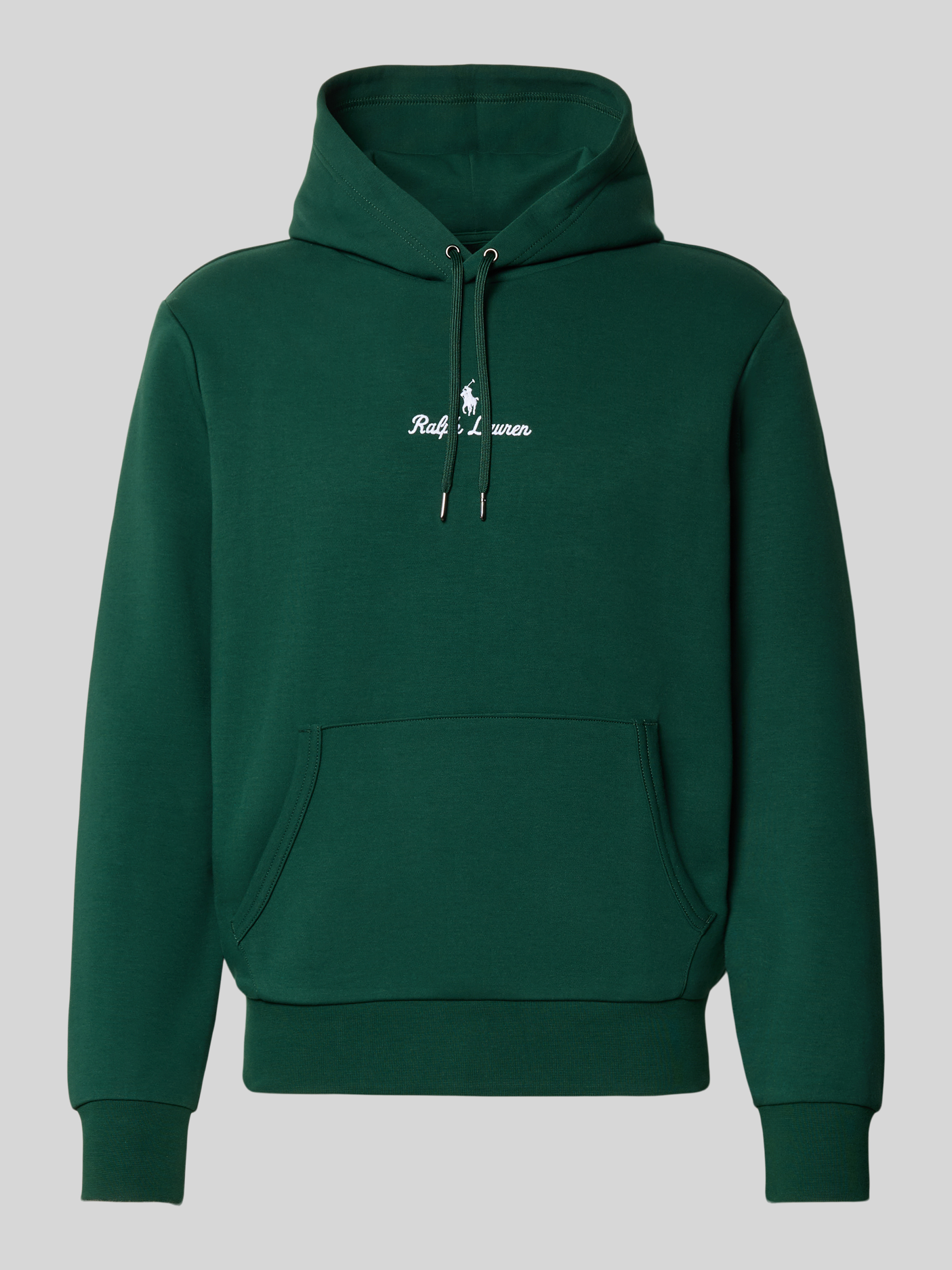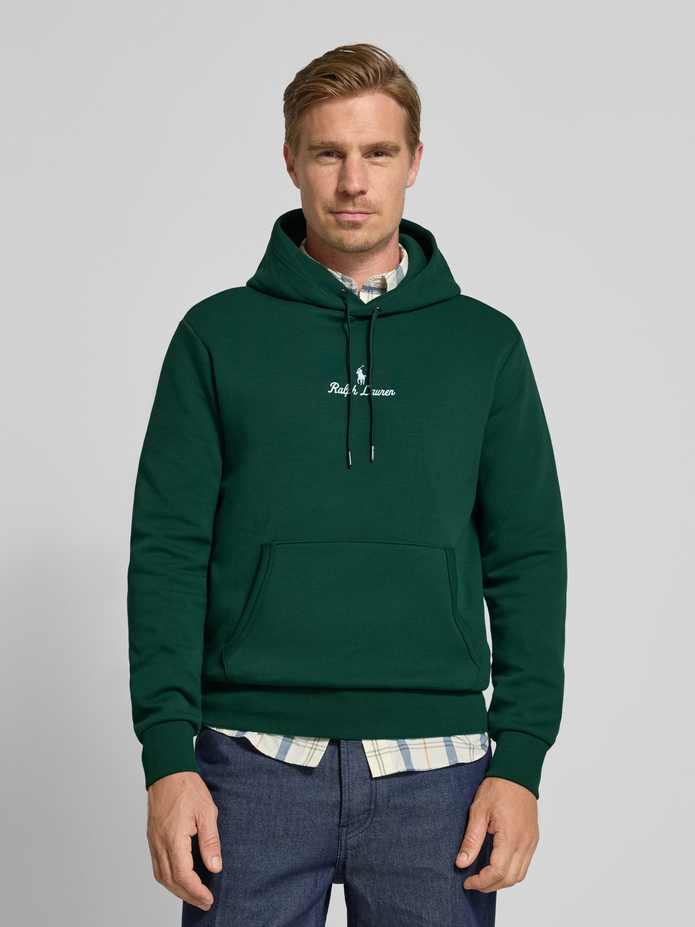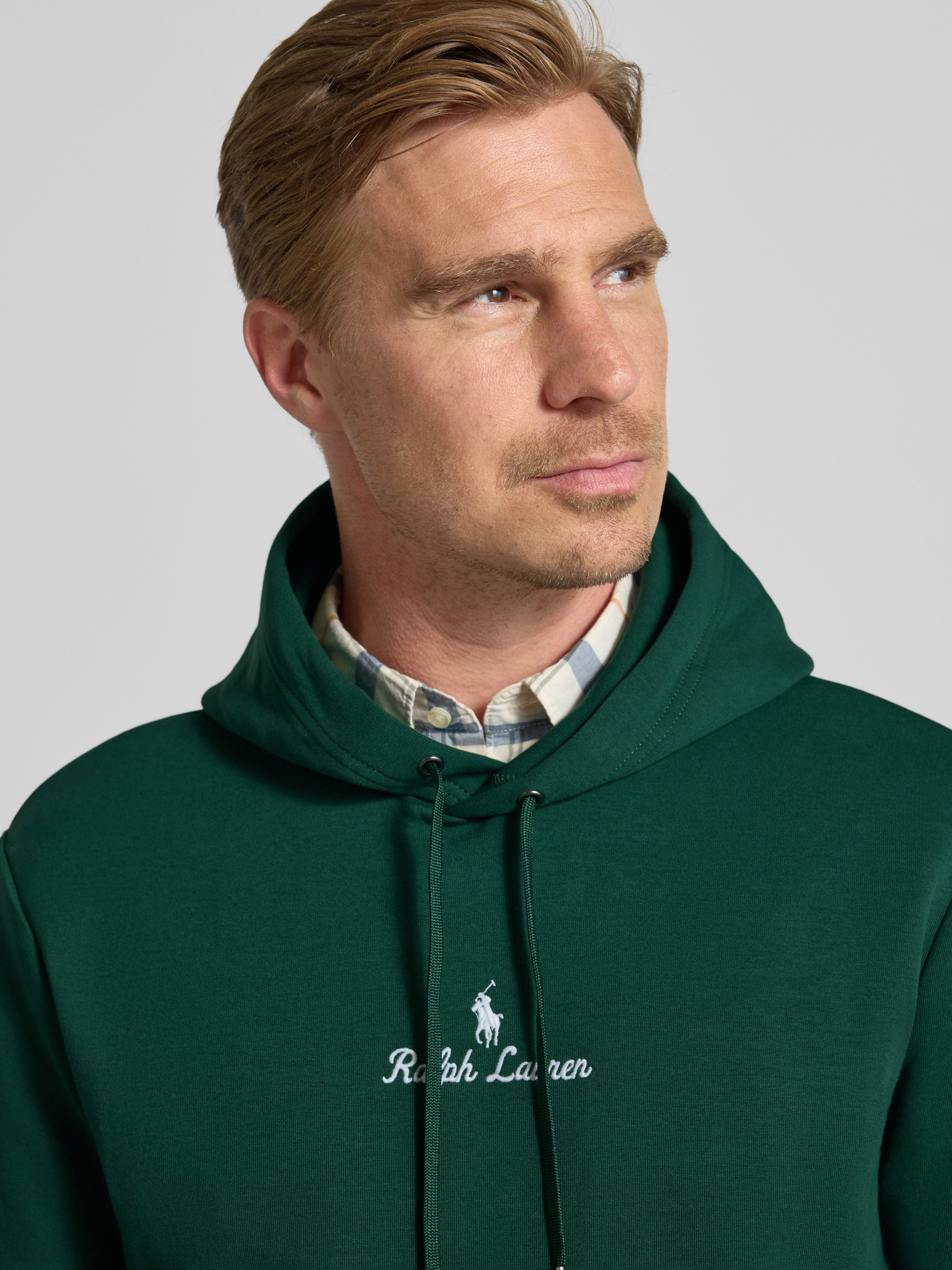 Hoodie met labelstitching en kangoeroezak in donkergroen