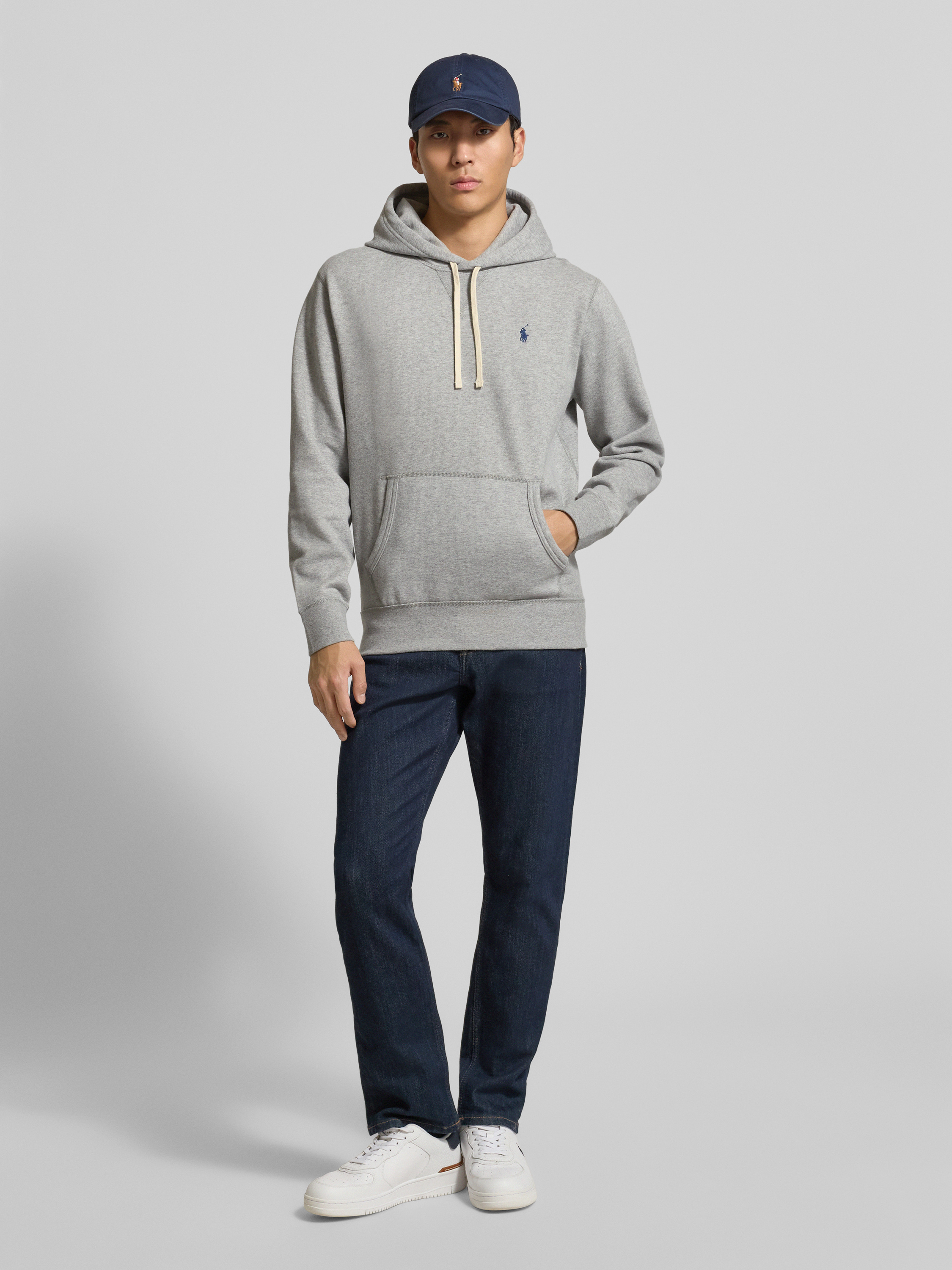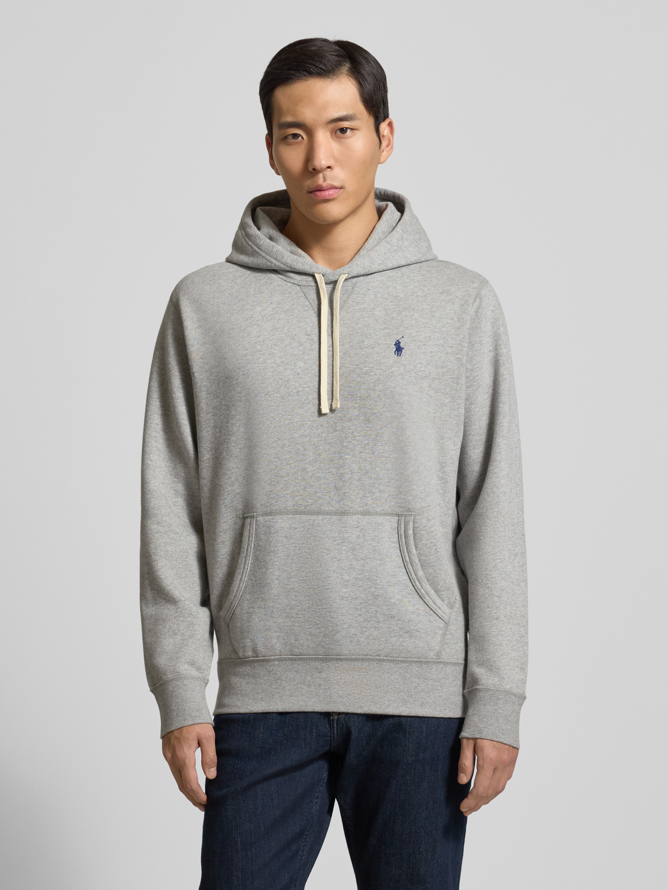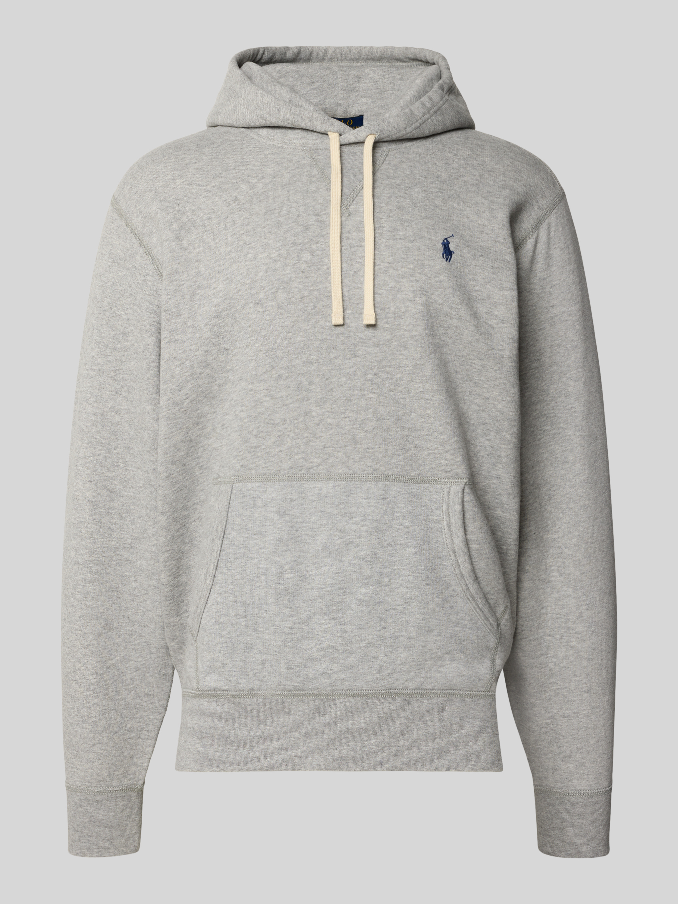 Hoodie met labelstitching in lichtgrijs gemêleerd