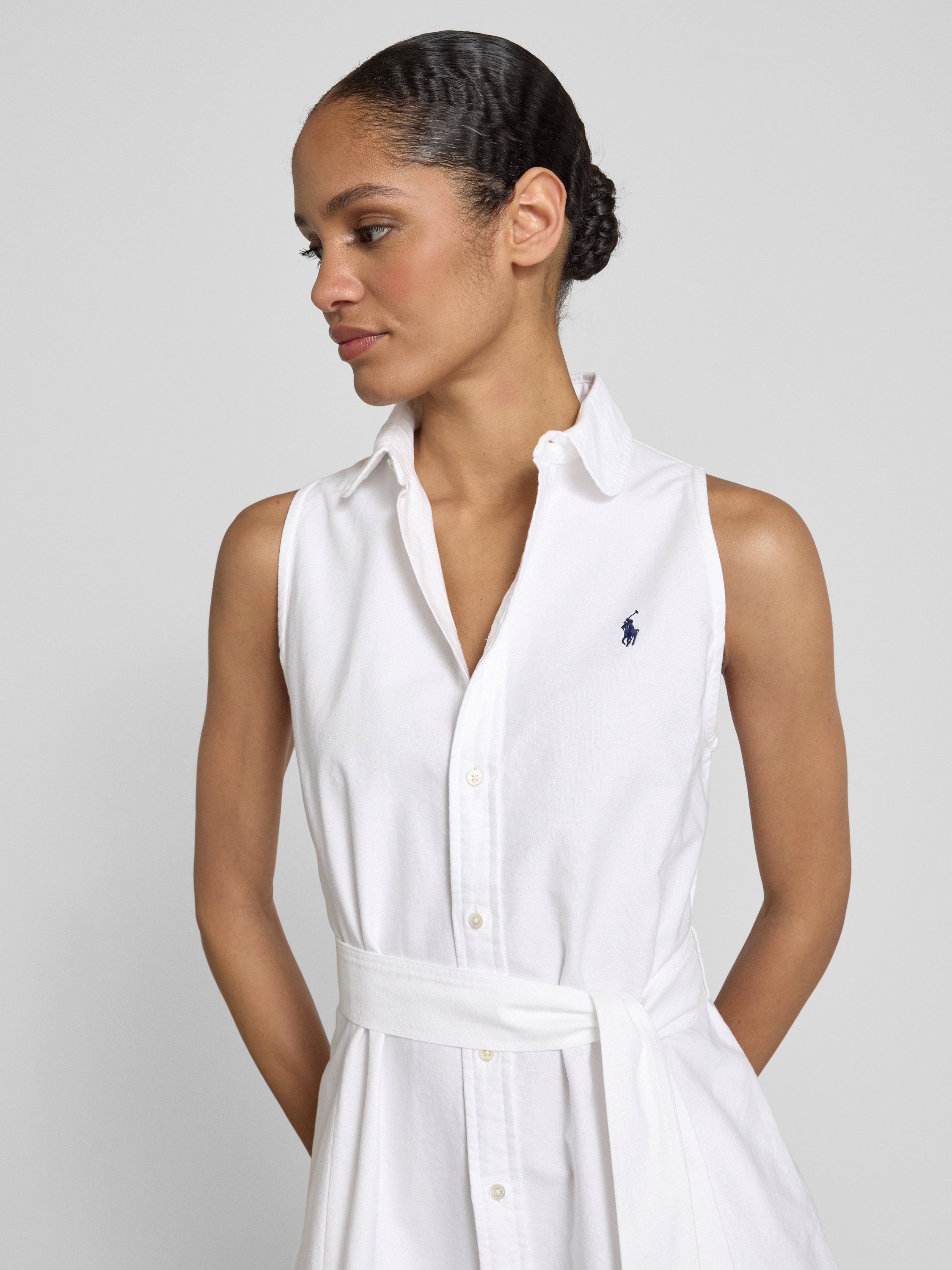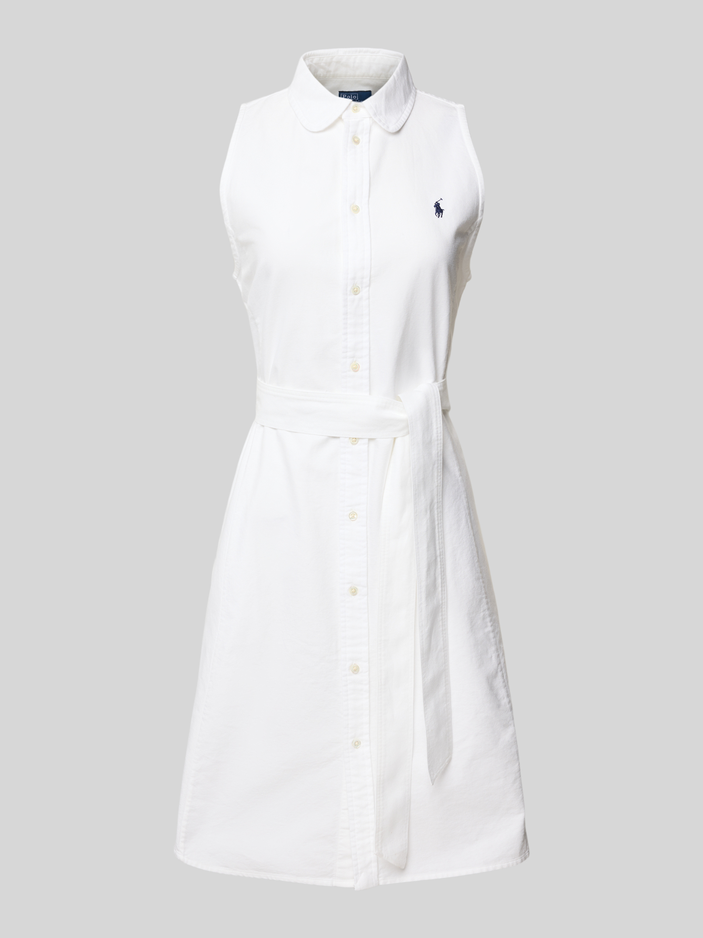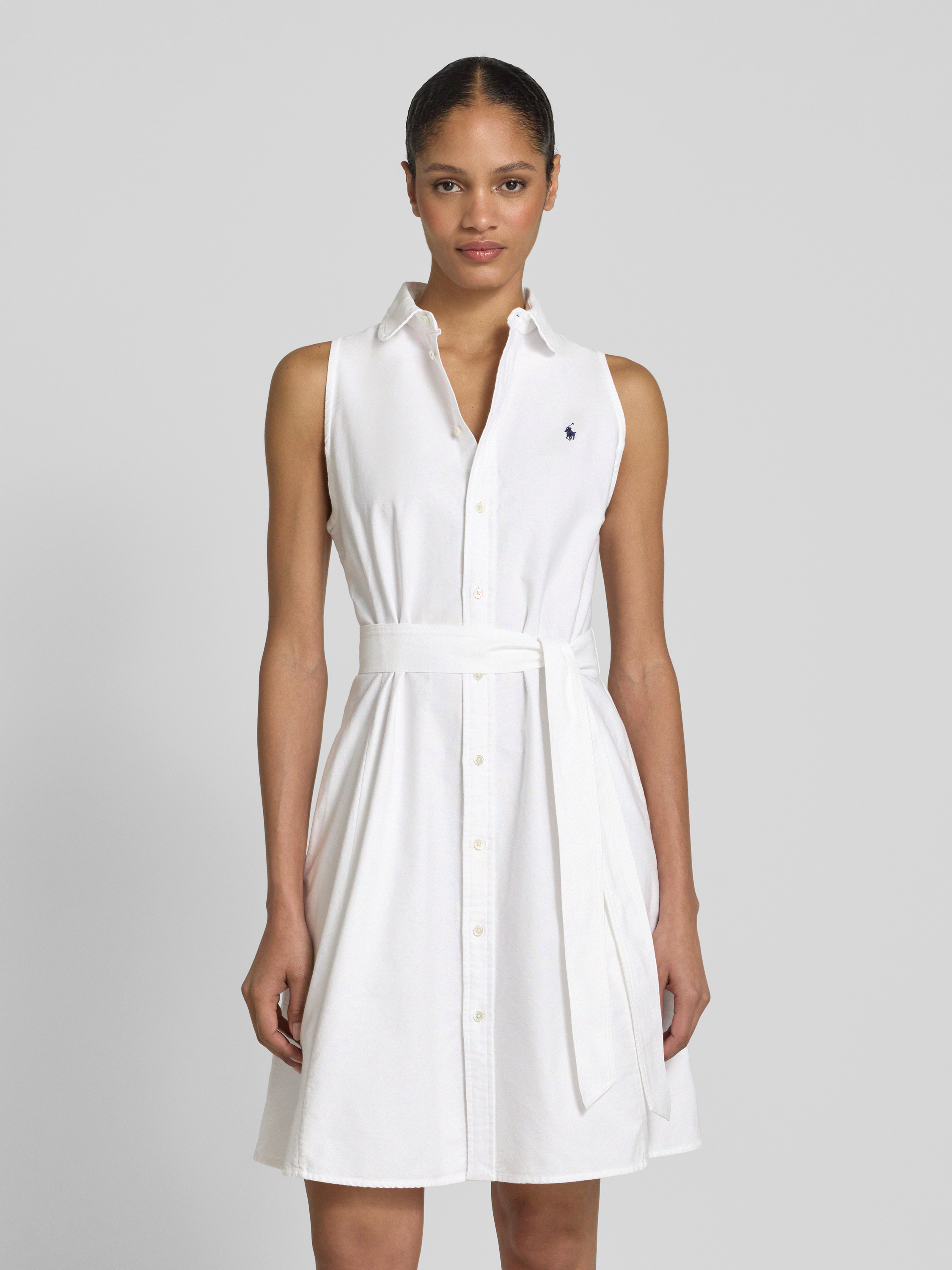 Knielange jurk met strikceintuur, model 'BLAR' in wit
