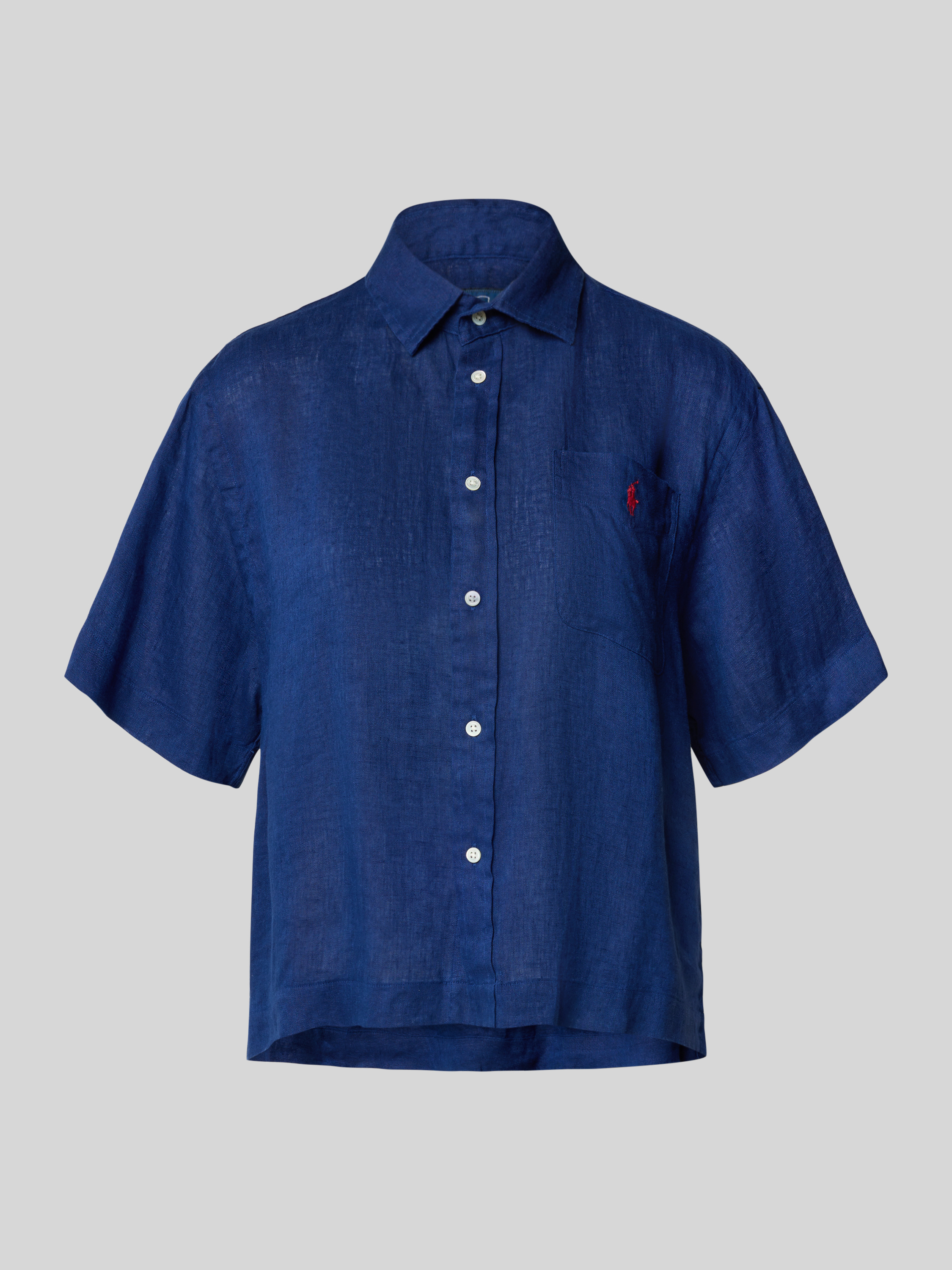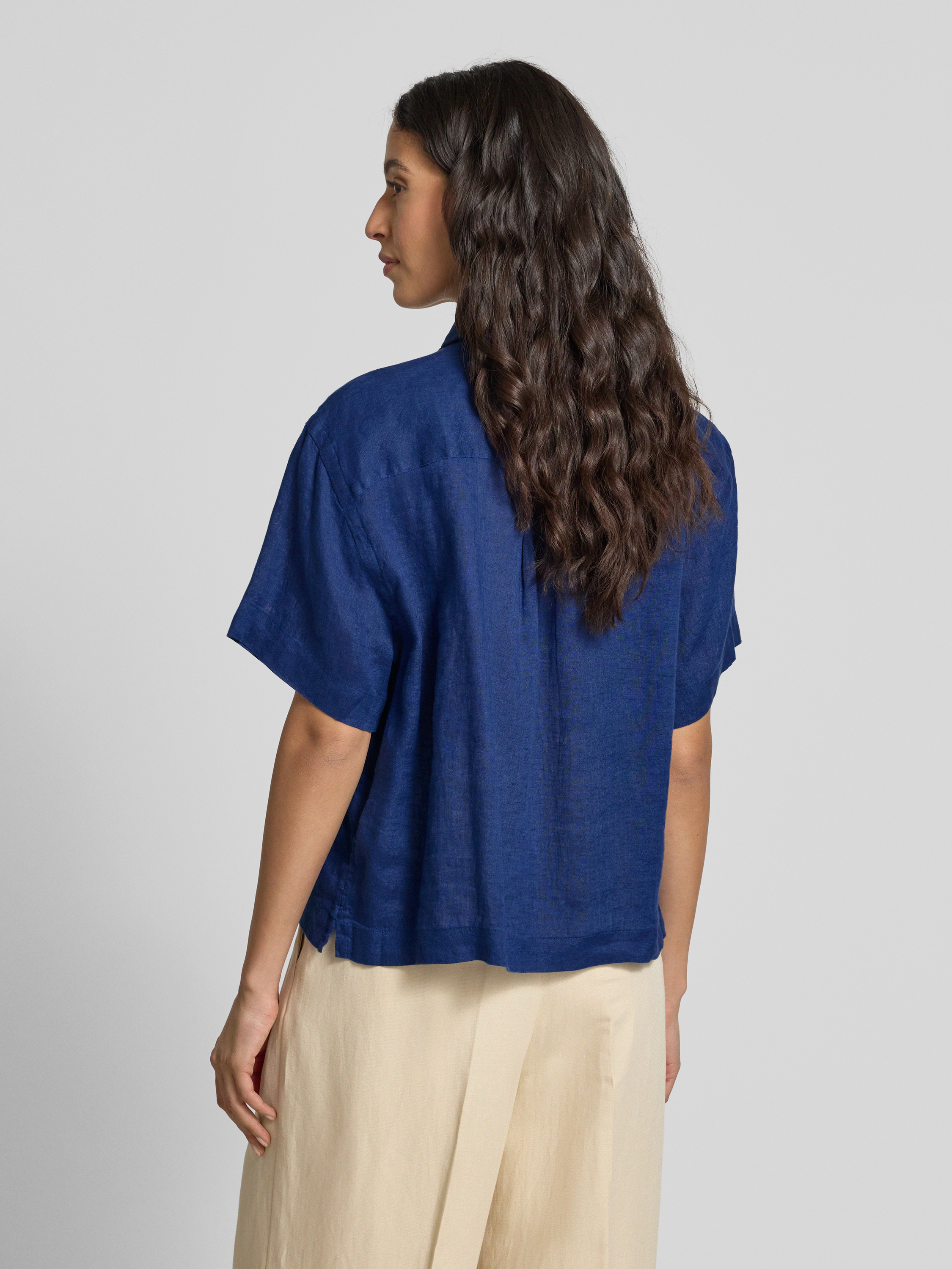 Loose fit overhemdblouse van puur linnen in marineblauw