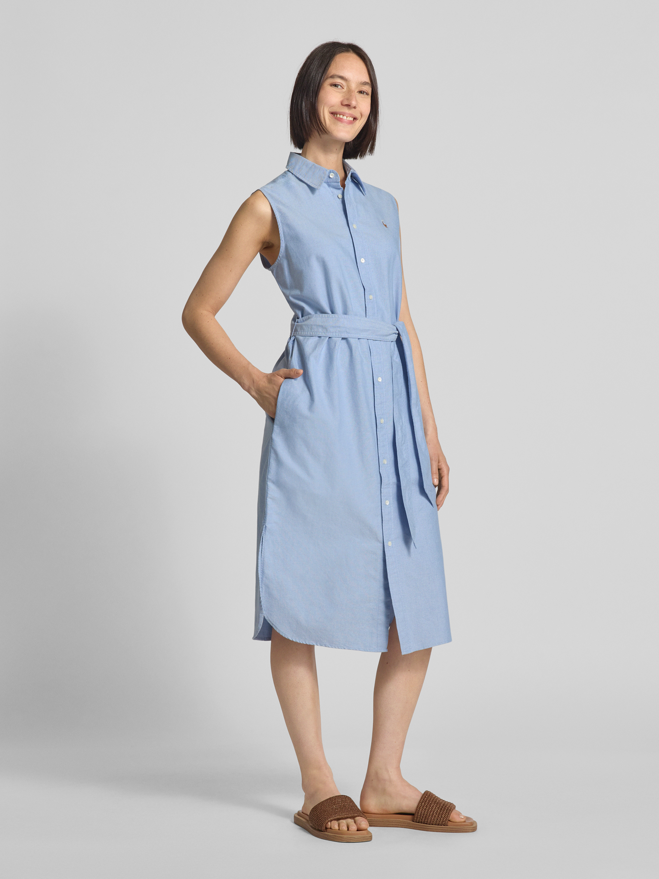 Overhemdjurk met strikceintuur, model 'CORY' in blauw