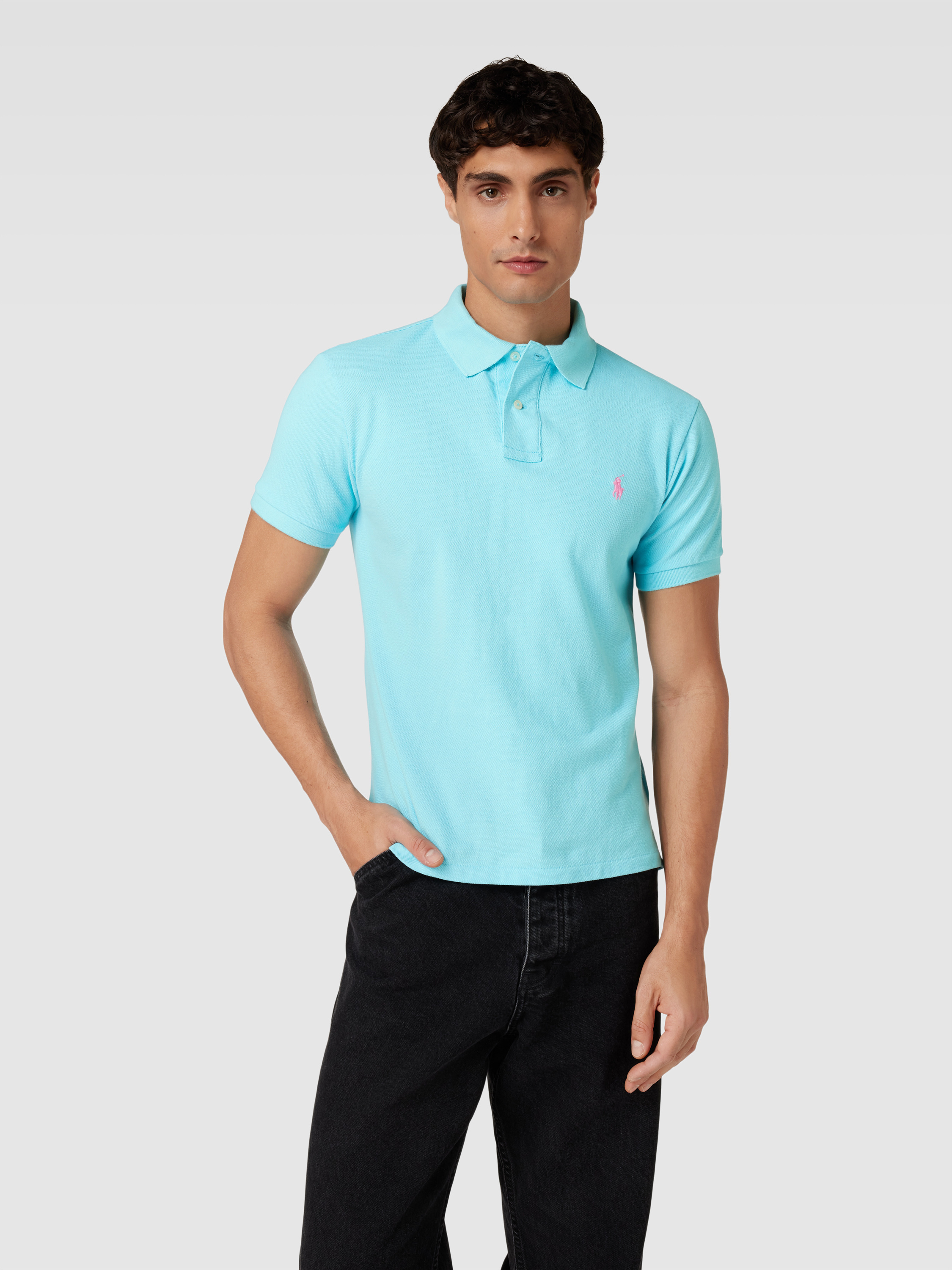 Poloshirt met logostitching, model 'BASIC' in turquoise