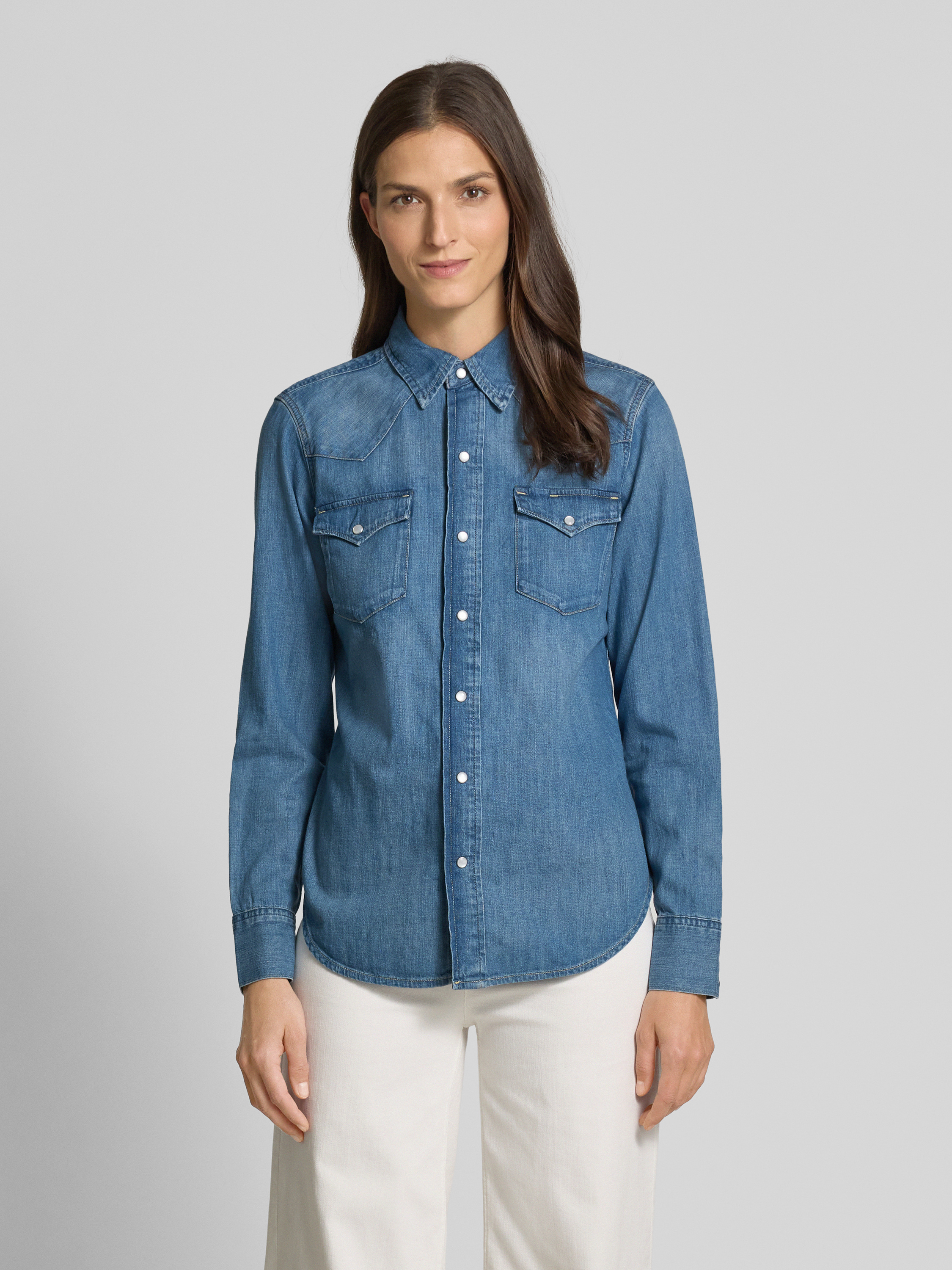 Regular fit jeansblouse met klepzakken in jeansblauw