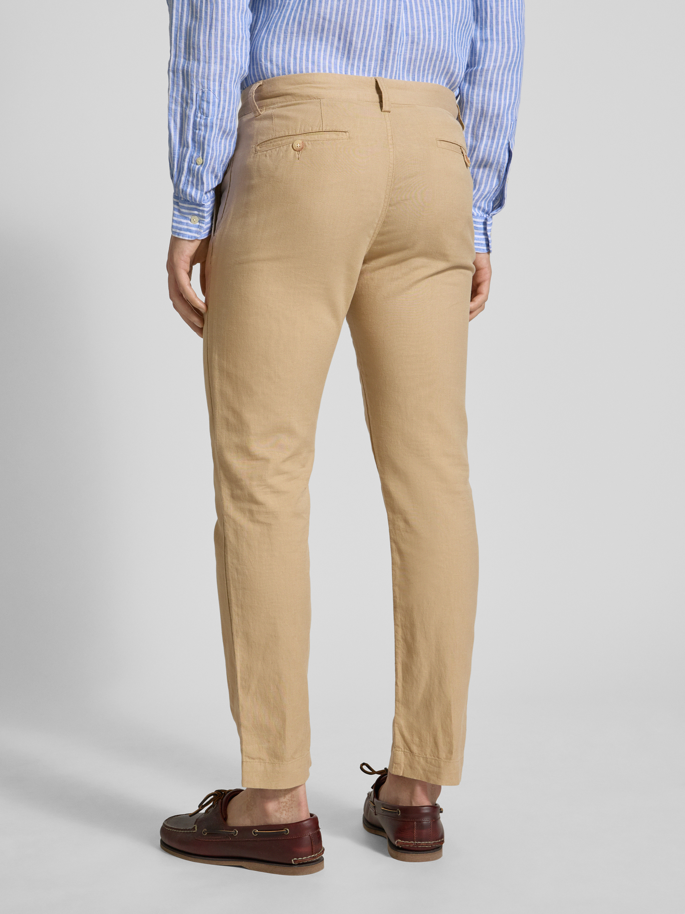 Regular fit linnen broek met knoop- en ritssluiting in beige
