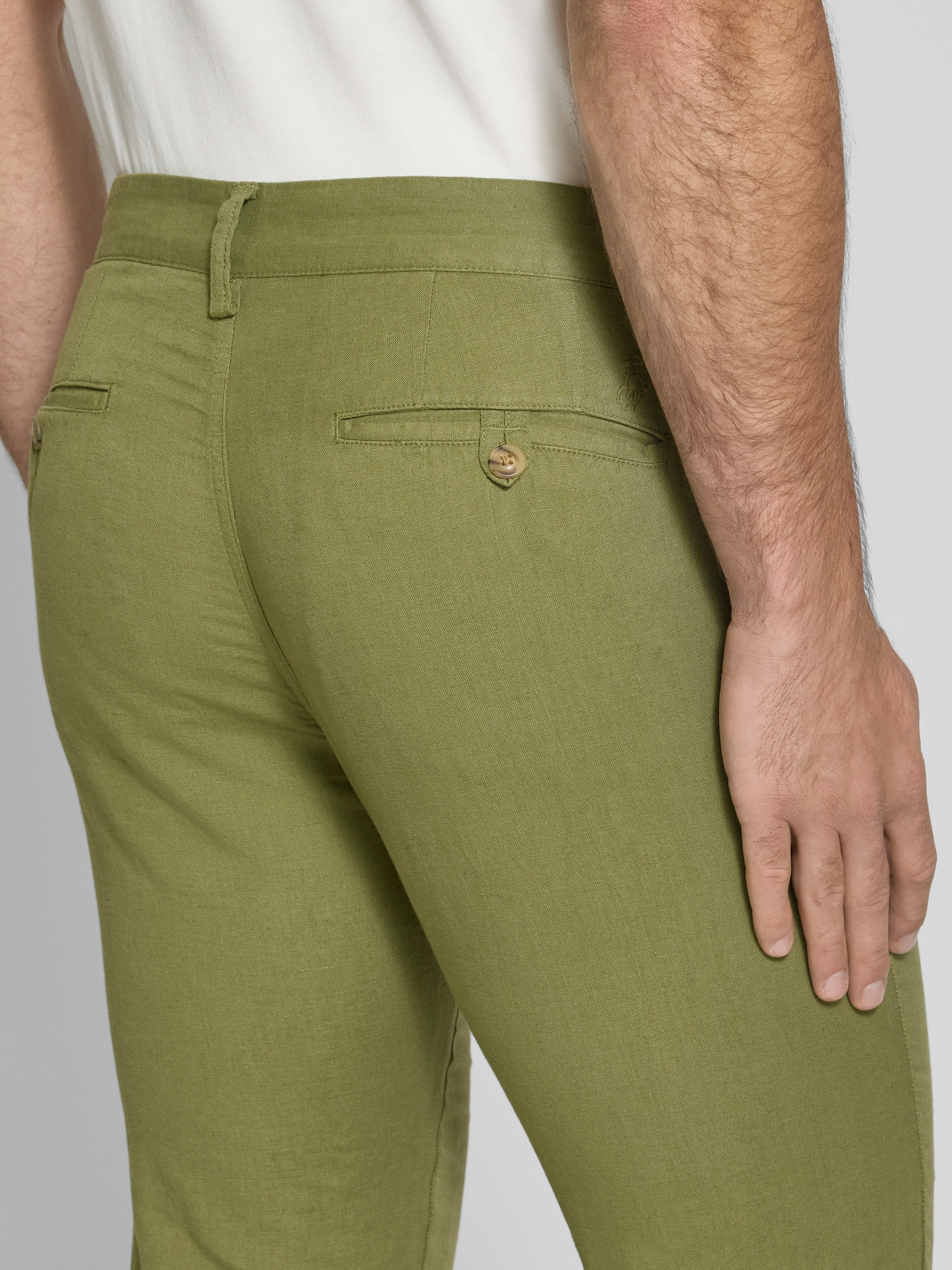 Regular fit linnen broek met knoop- en ritssluiting in groen