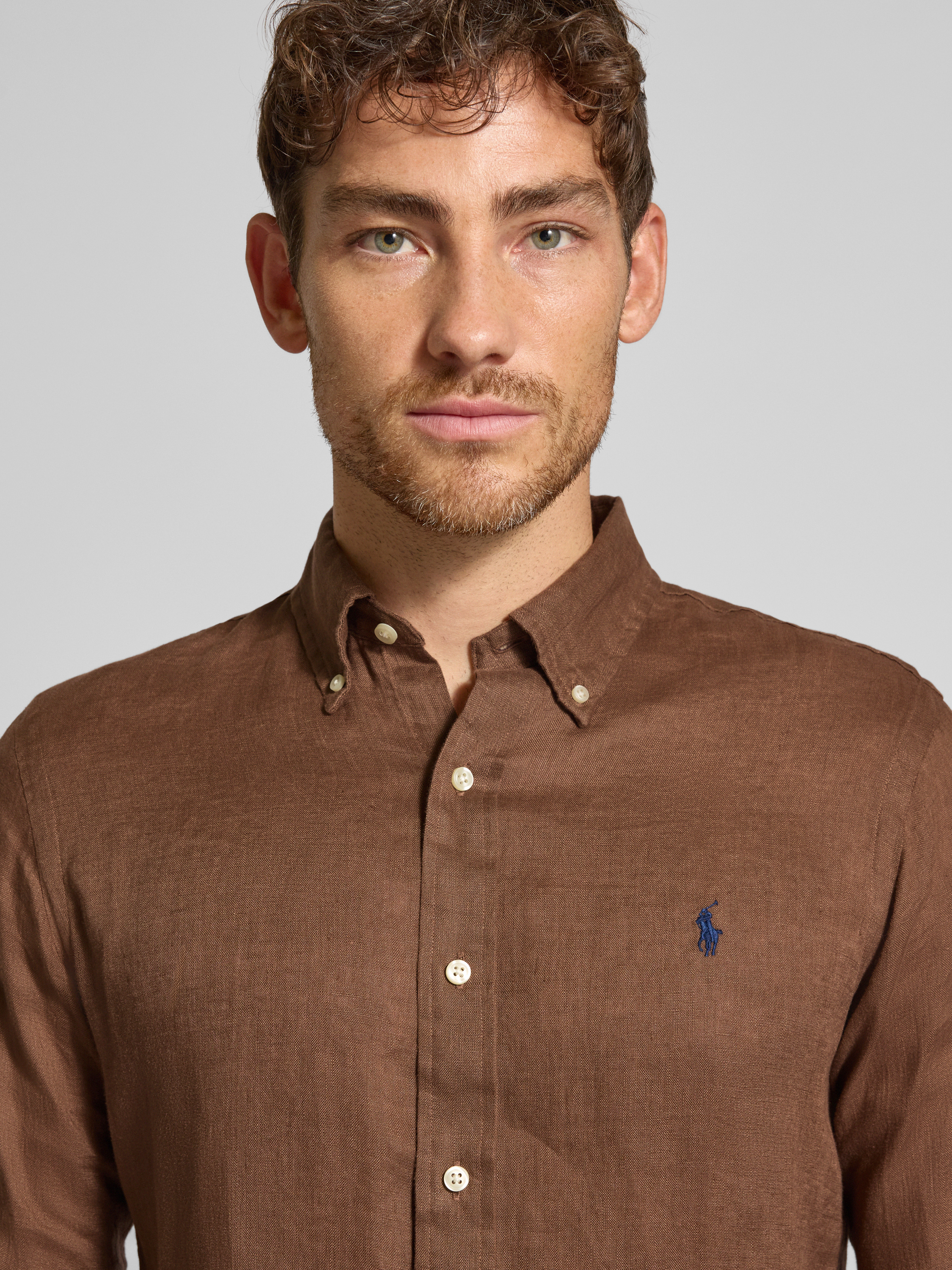 Regular fit linnen overhemd met button-downkraag in middenbruin