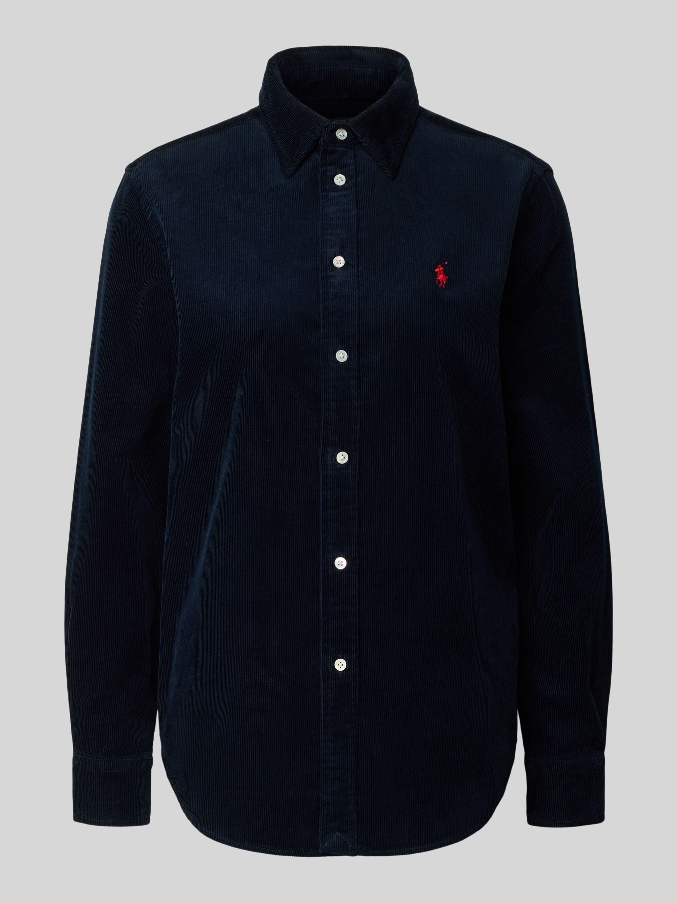 Regular fit overhemdblouse in ribcordlook, model 'Sport' in marineblauw
