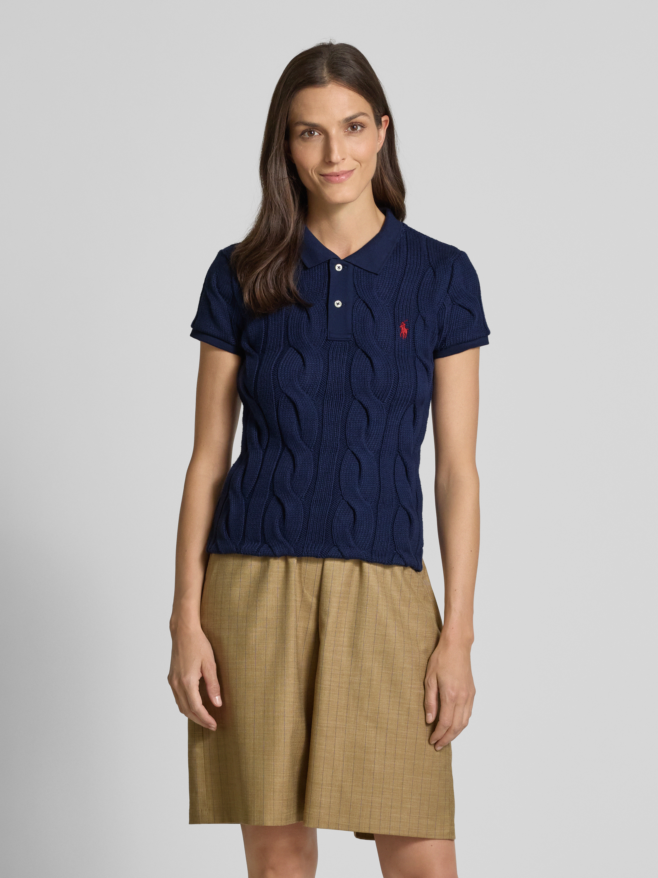 Regular fit poloshirt met kabelpatroon en logostitching in marineblauw