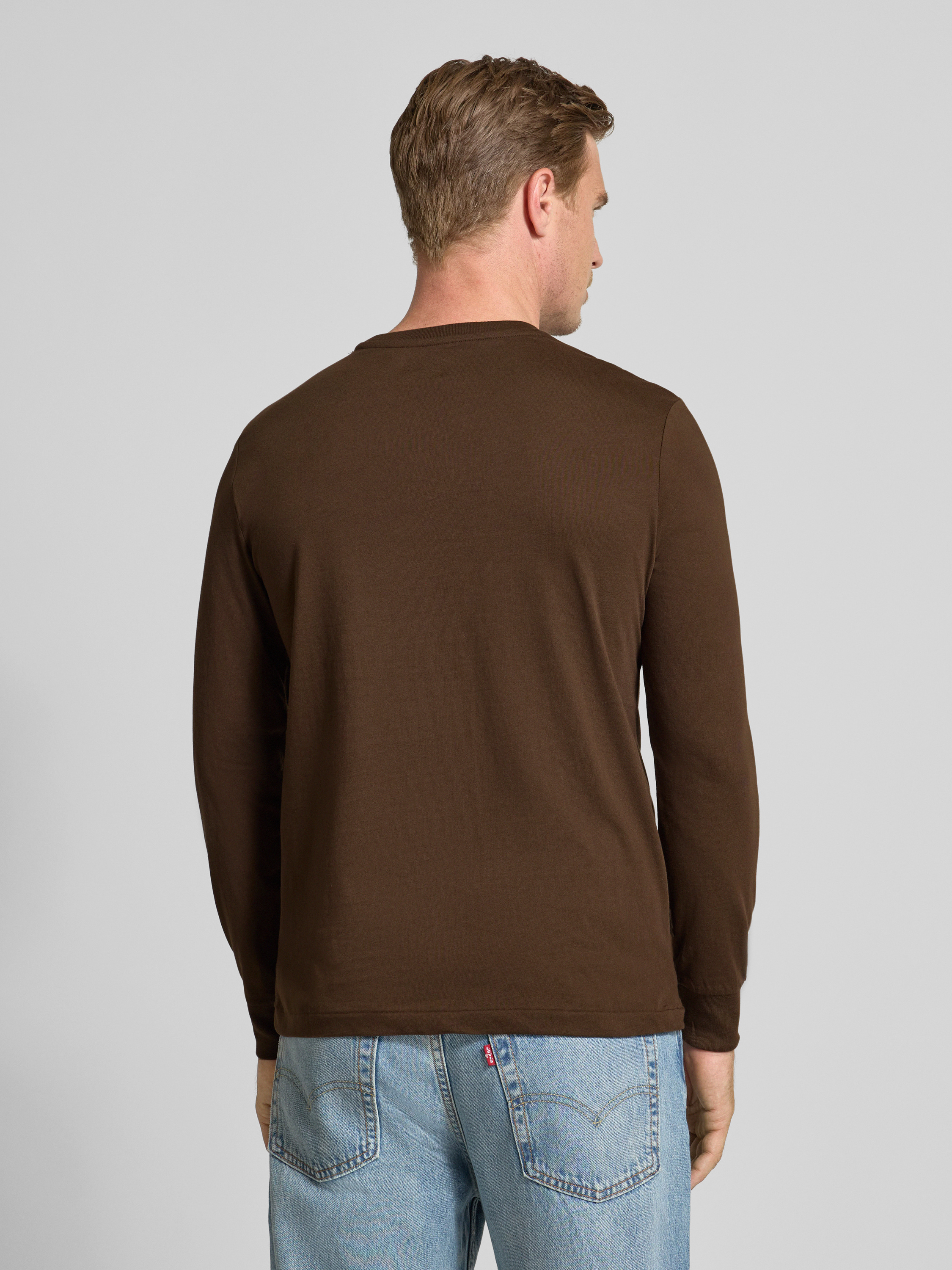Regular fit shirt met lange mouwen en logostitching, model 'Jersey' in middenbruin