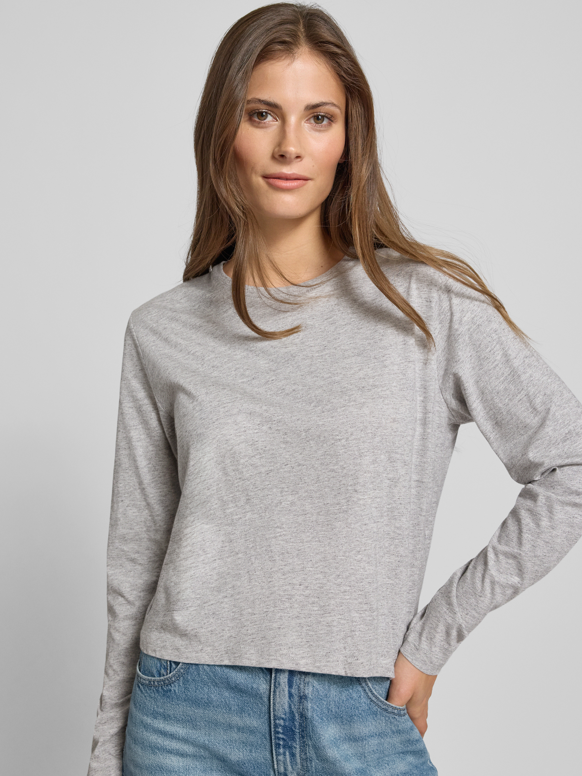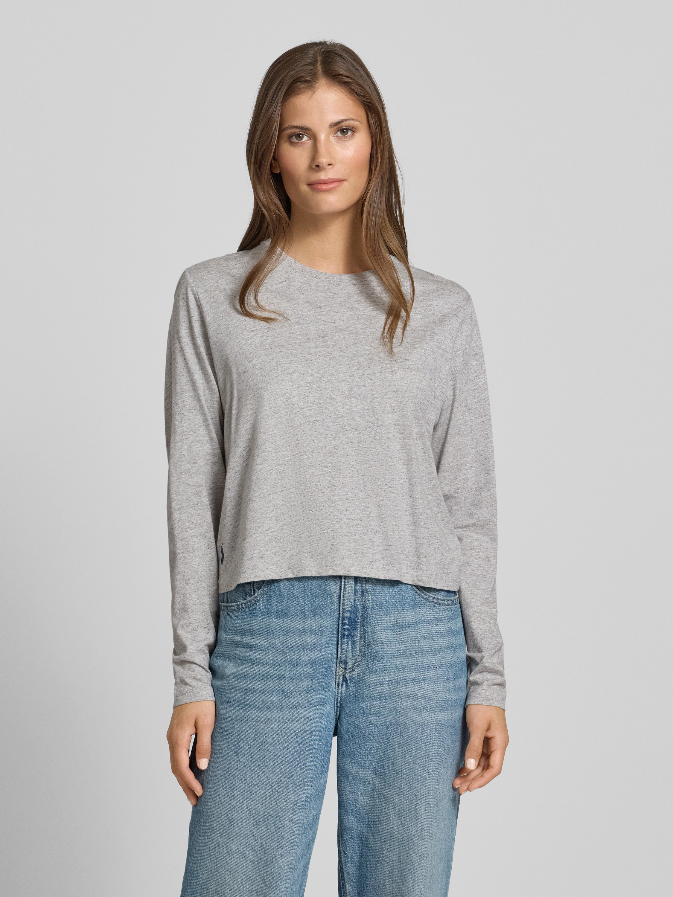 Regular fit shirt met lange mouwen van een mix van katoen en modal in middengrijs gemêleerd