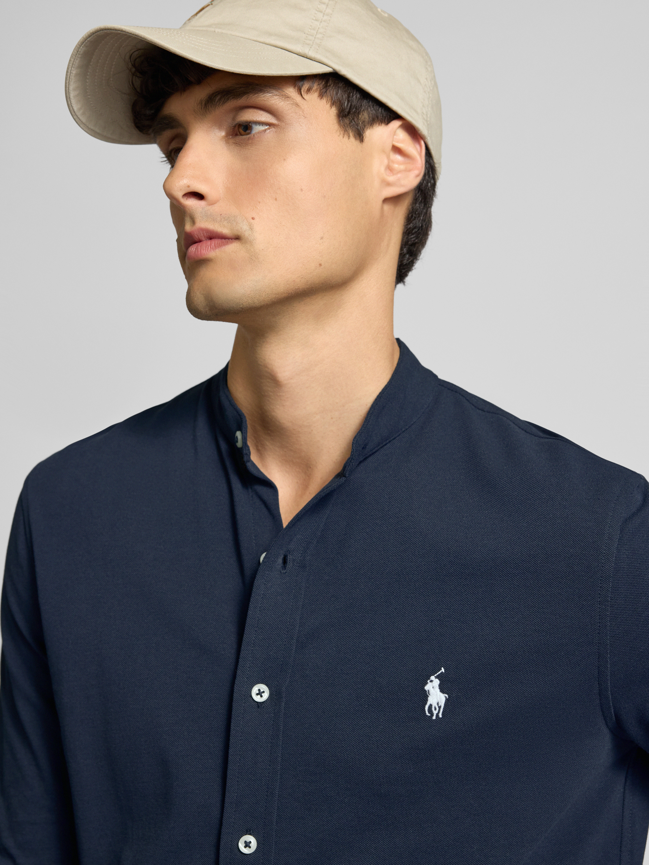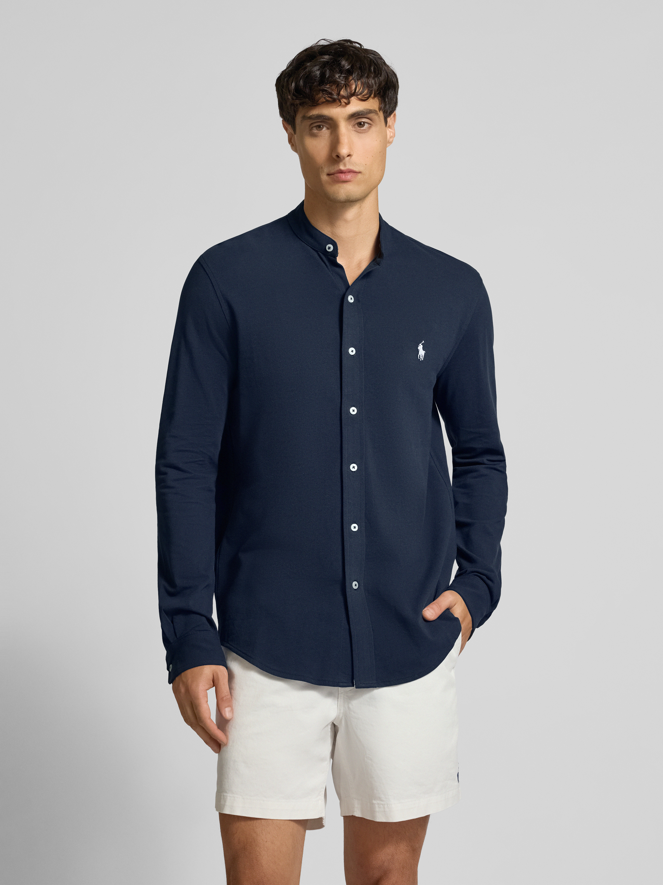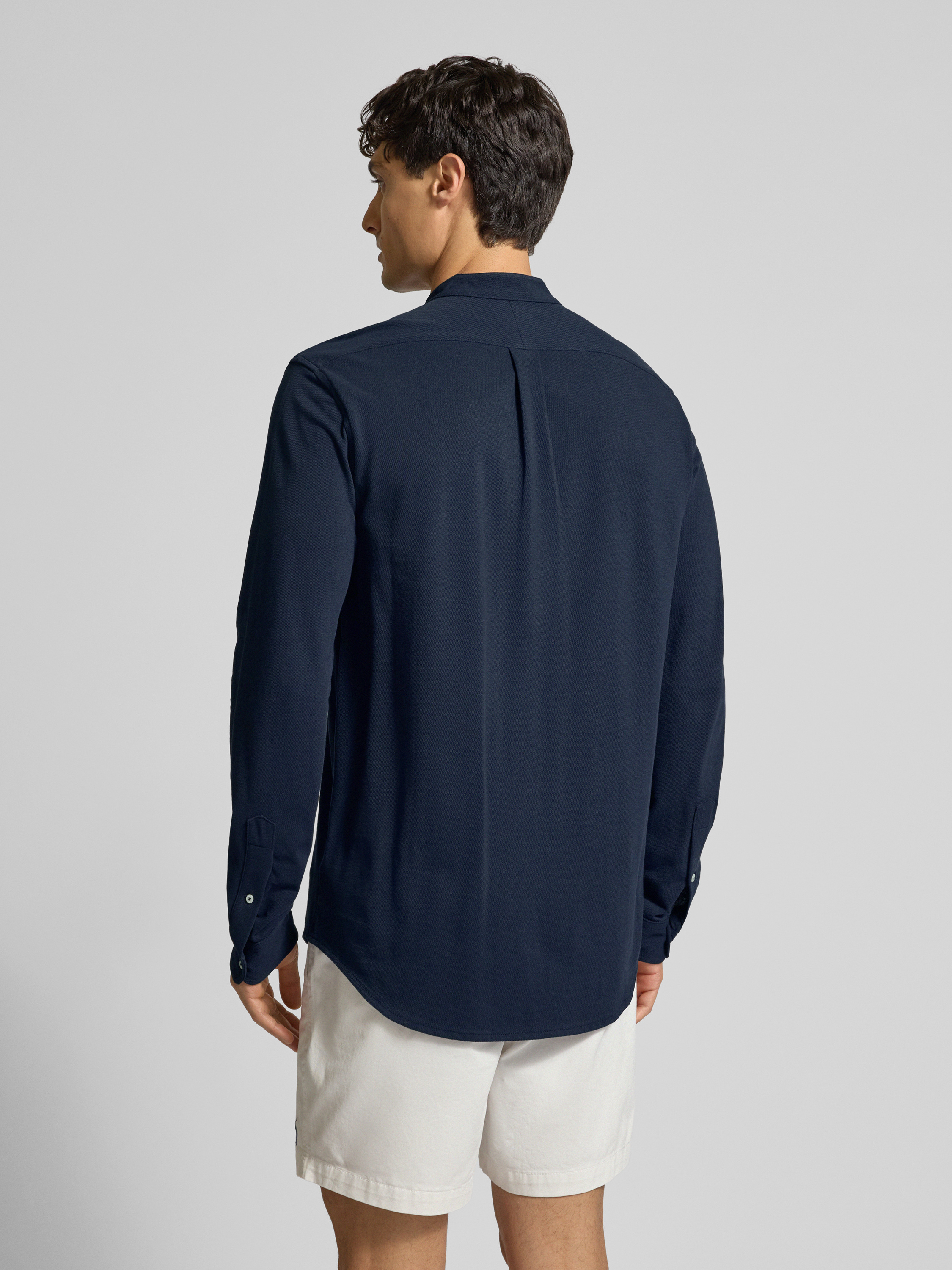 Regular fit vrijetijdsoverhemd met labelstitching en opstaande kraag in marineblauw