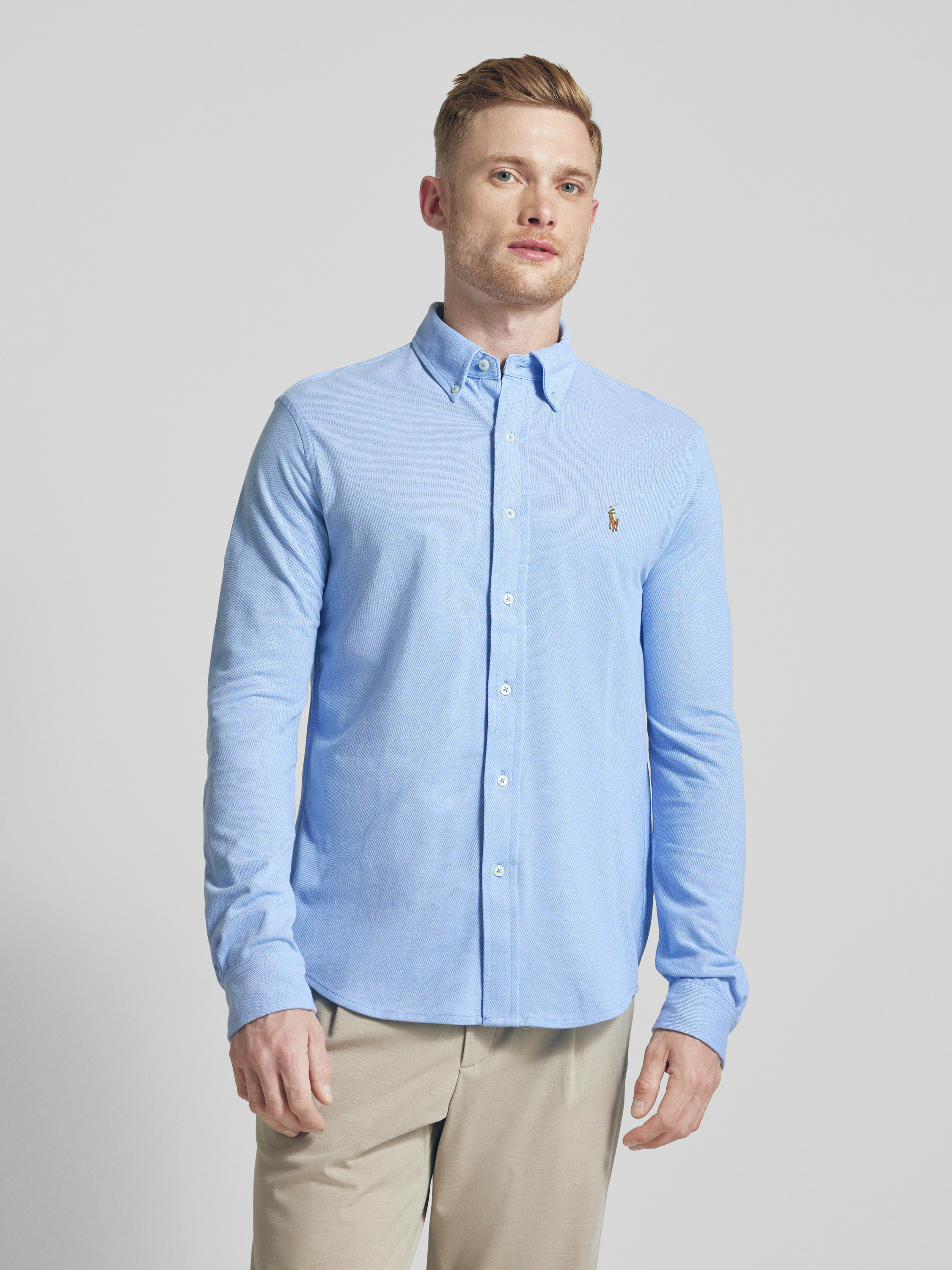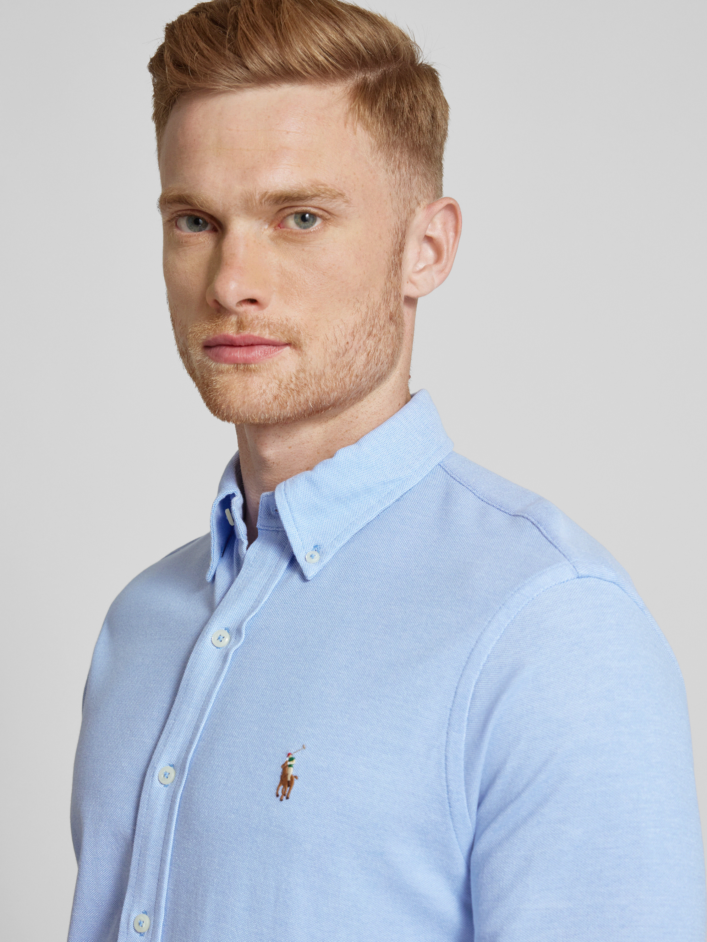 Regular fit vrijetijdsoverhemd met logostitching in lichtblauw