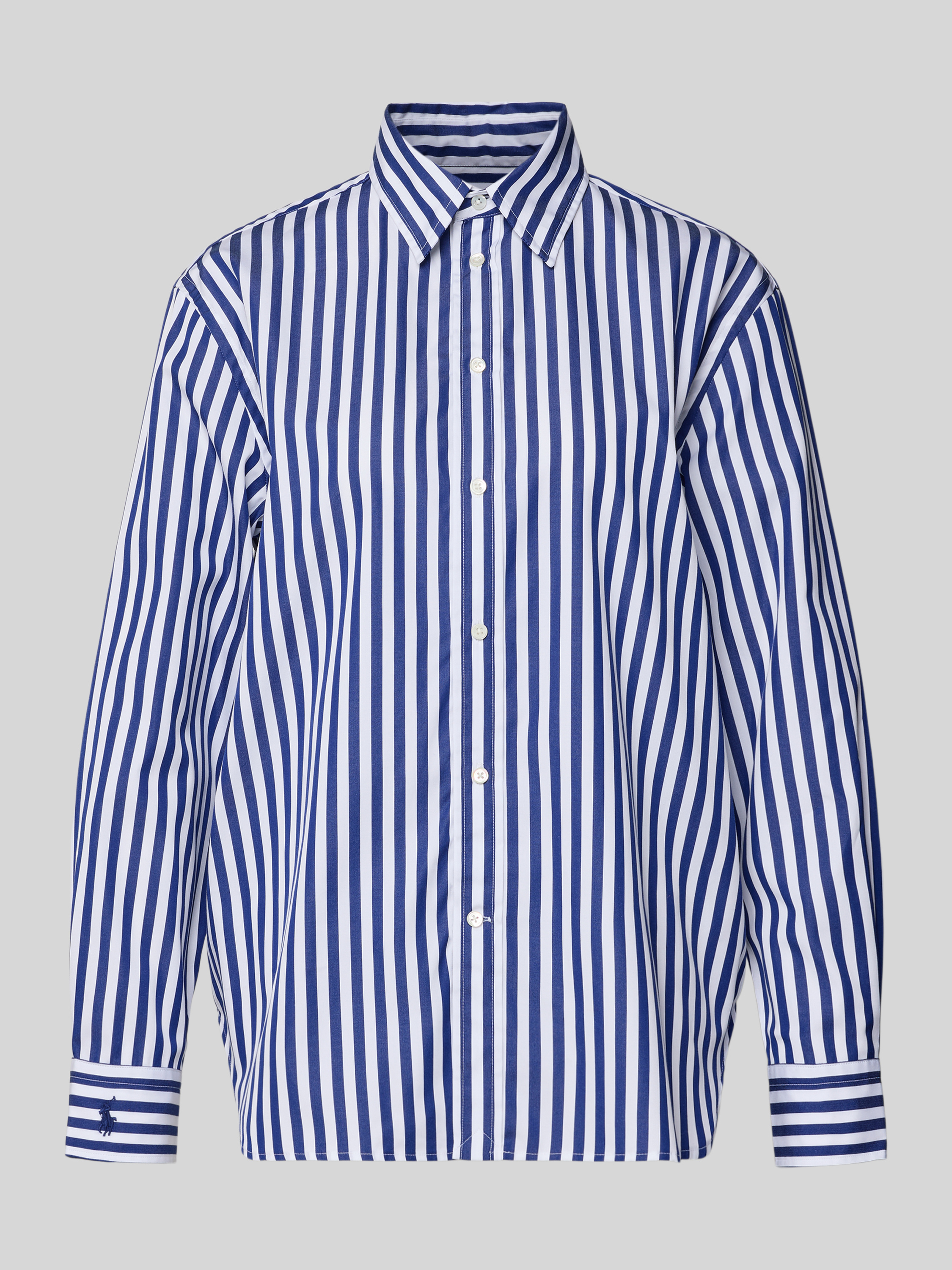 Relaxed fit overhemdblouse met logostitching, model 'Ligh' in koningsblauw