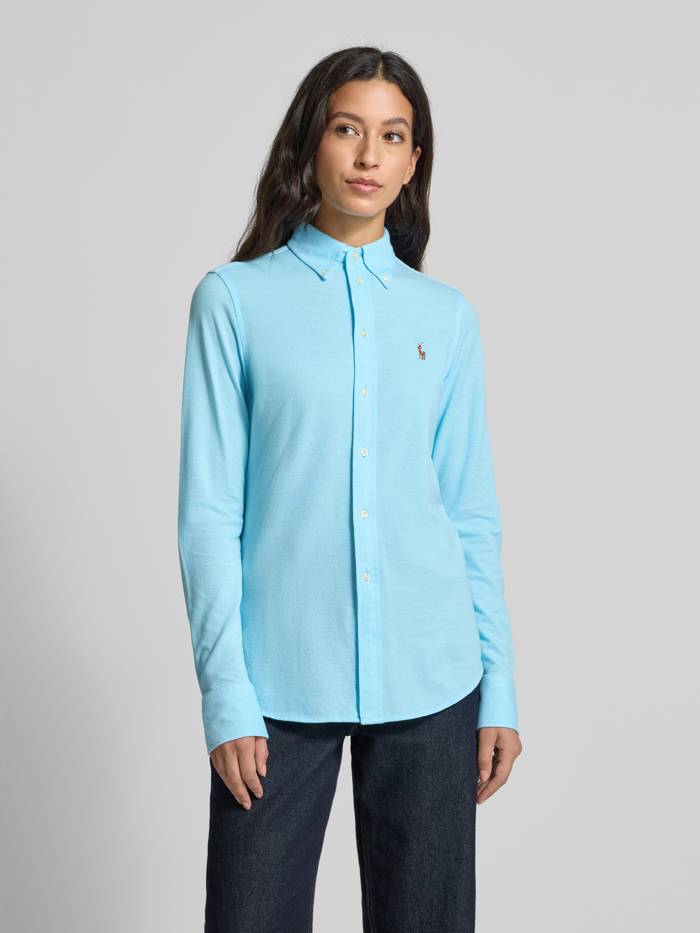 Slim fit overhemdblouse met button-downkraag in turquoise