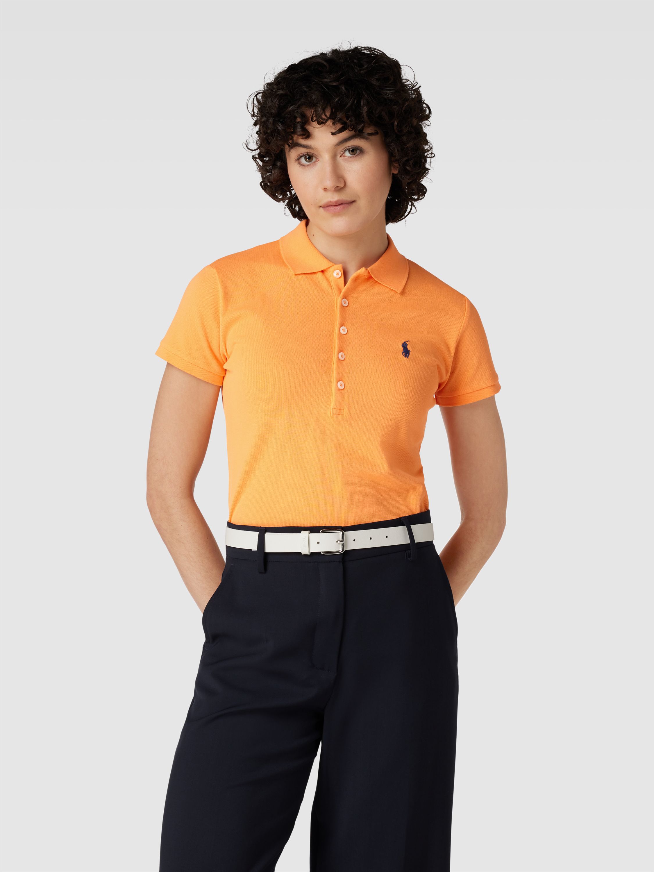 Slim fit poloshirt met labelstitching, model 'JULIE' in abrikoos
