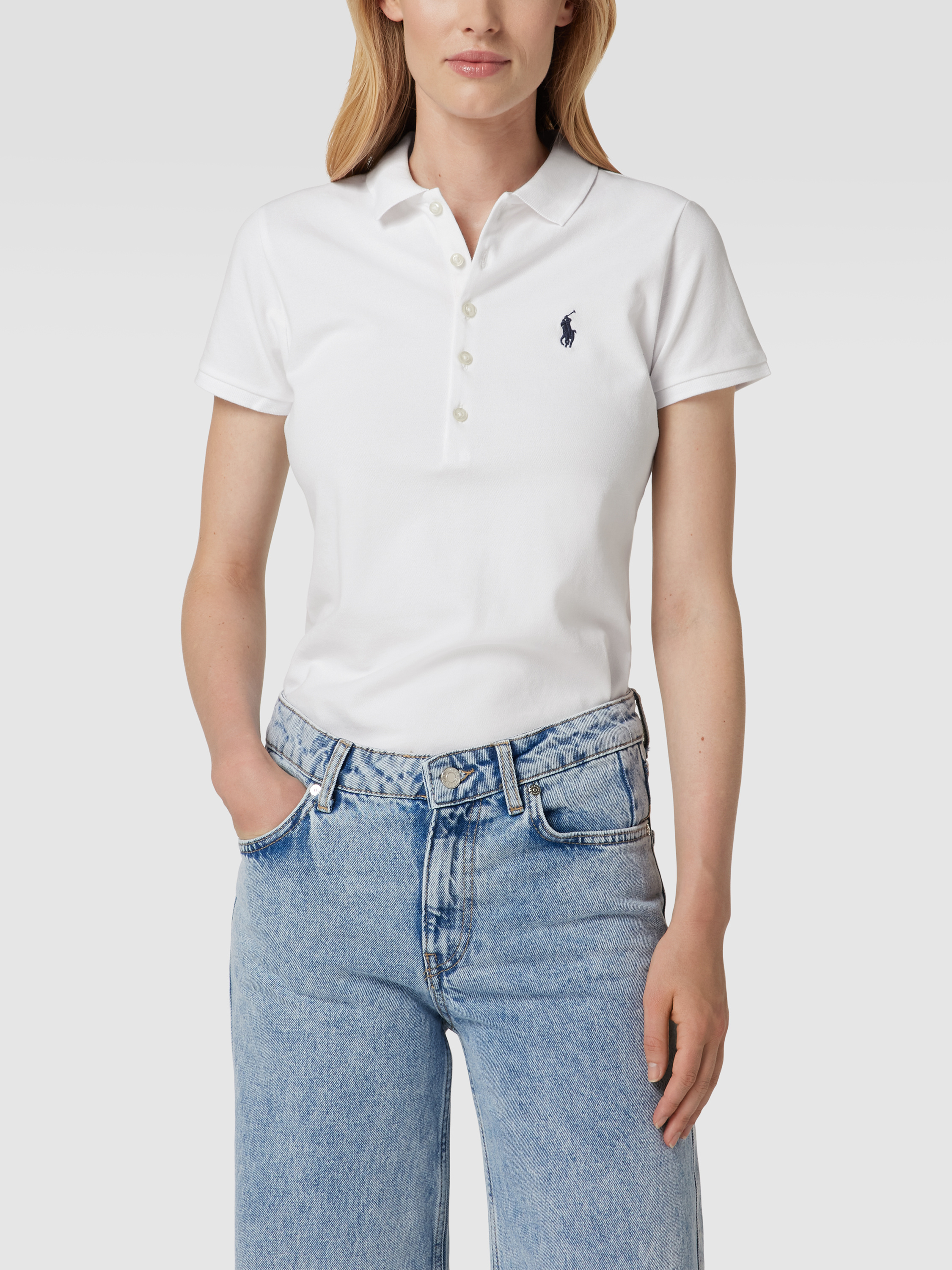 Slim fit poloshirt met logostitching, model 'JULIE' in wit