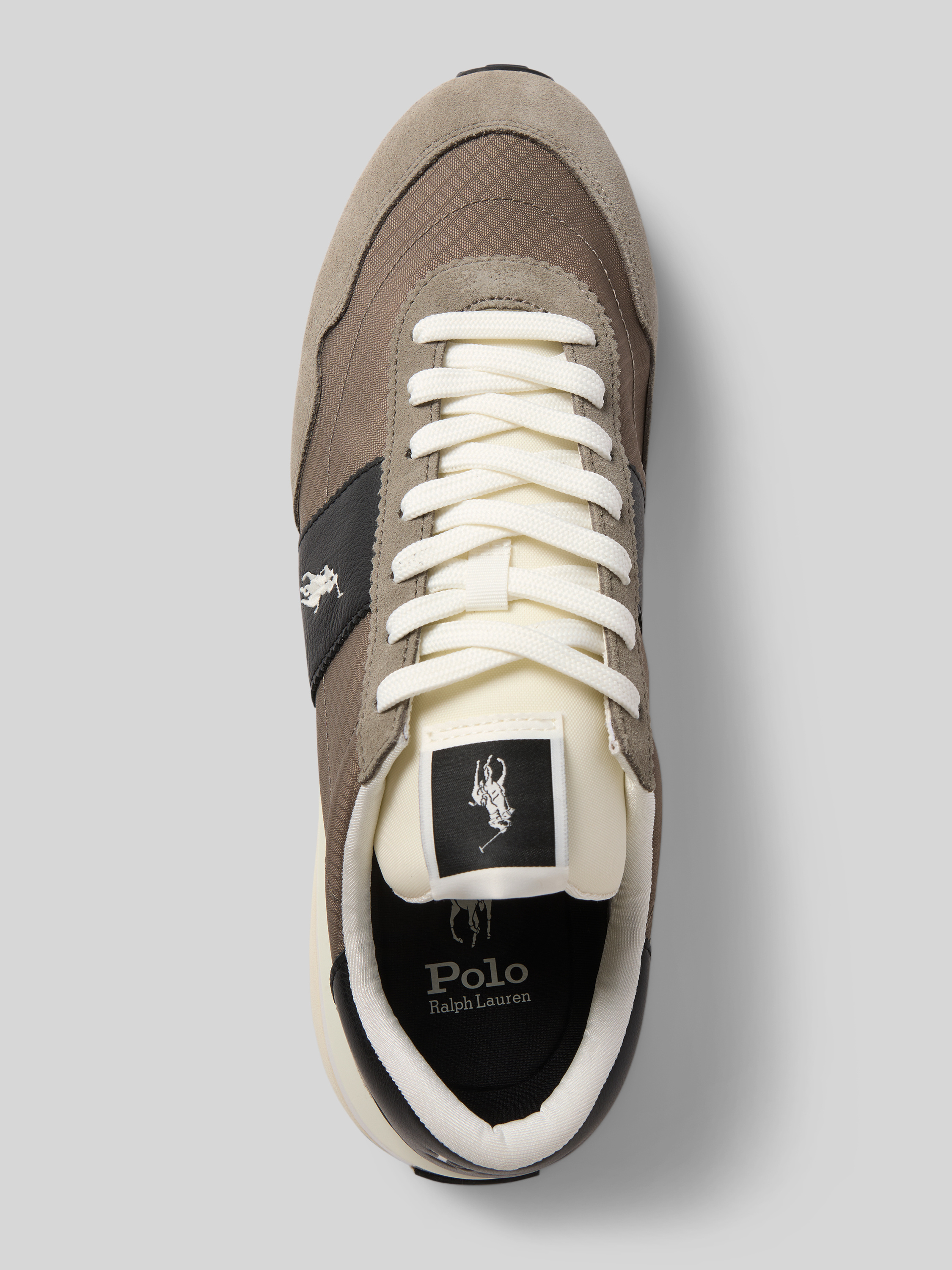 Sneakers van leermix met logostitching, model 'Train' in middengrijs