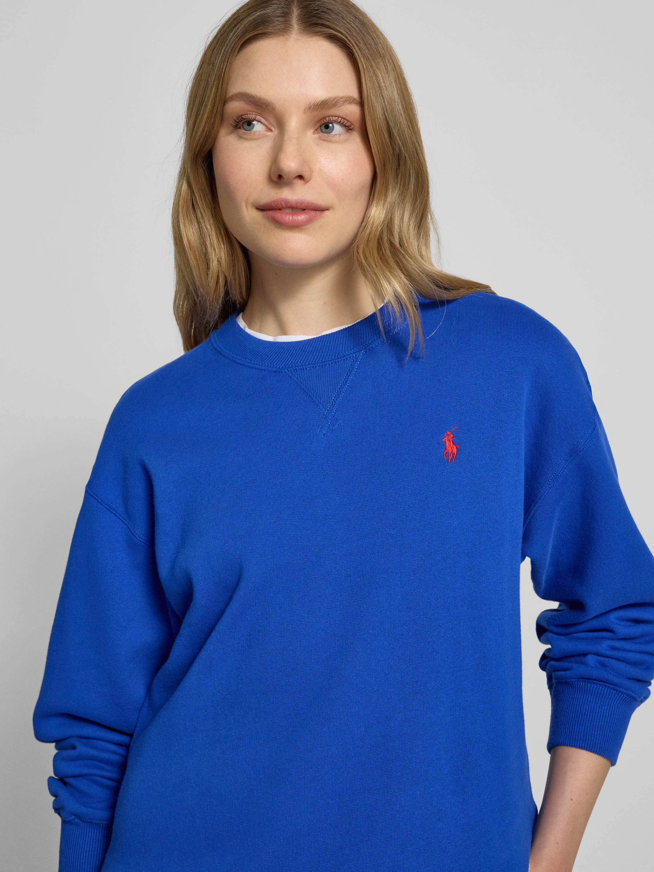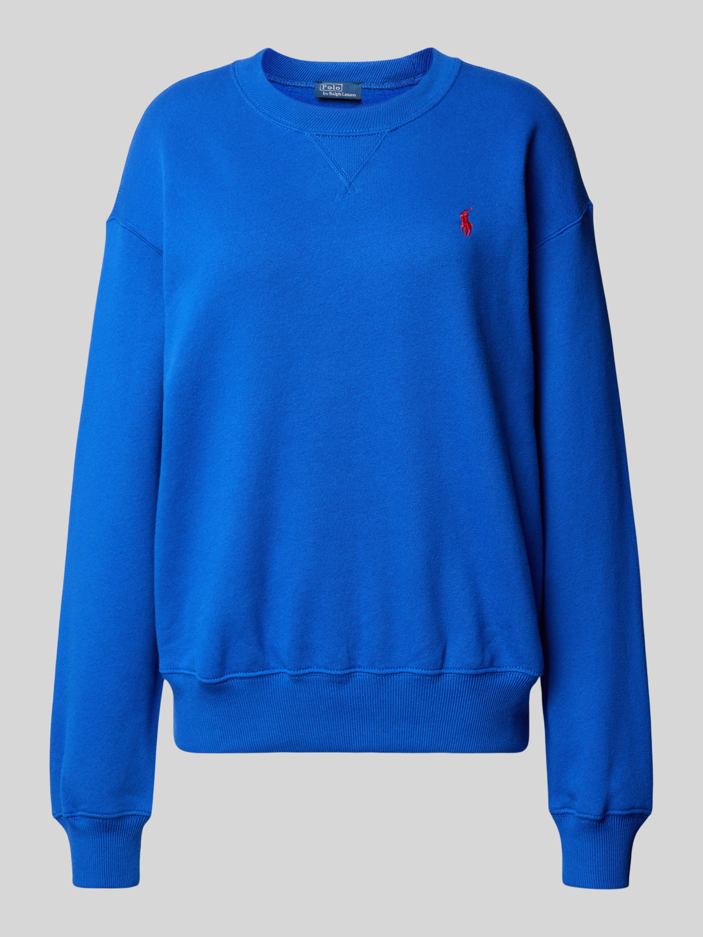 Sweatshirt met ronde hals en labelstitching in koningsblauw