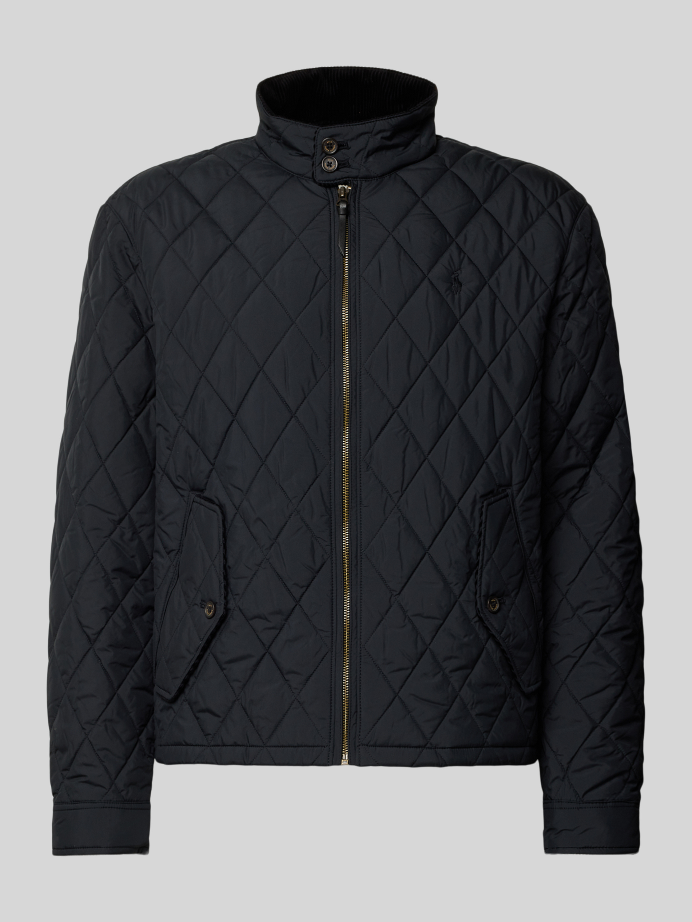 Wndbreaker met opstaande kraag en labelstitching in zwart