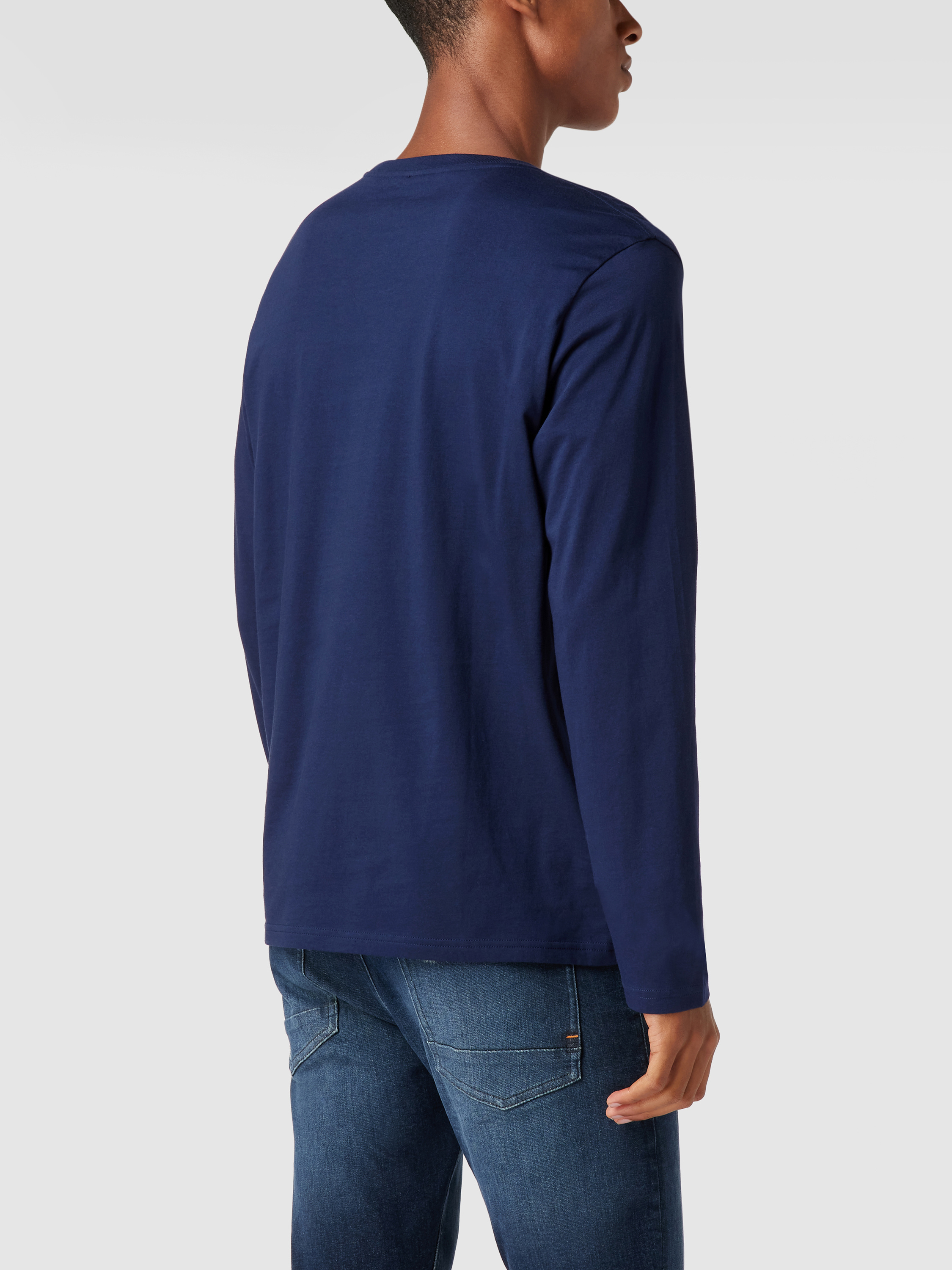 Katoenen shirt met lange mouwen en labelstitching in marineblauw
