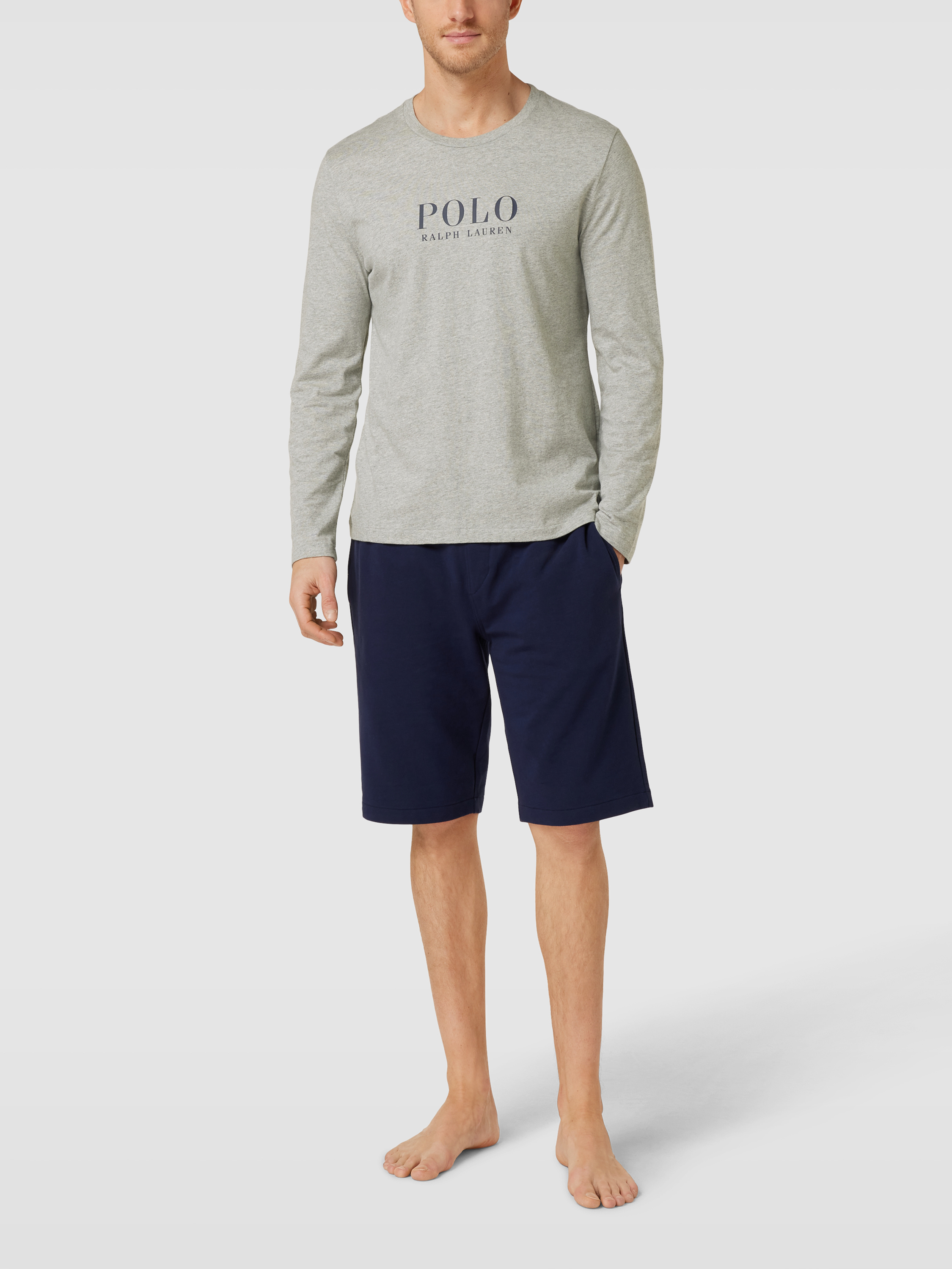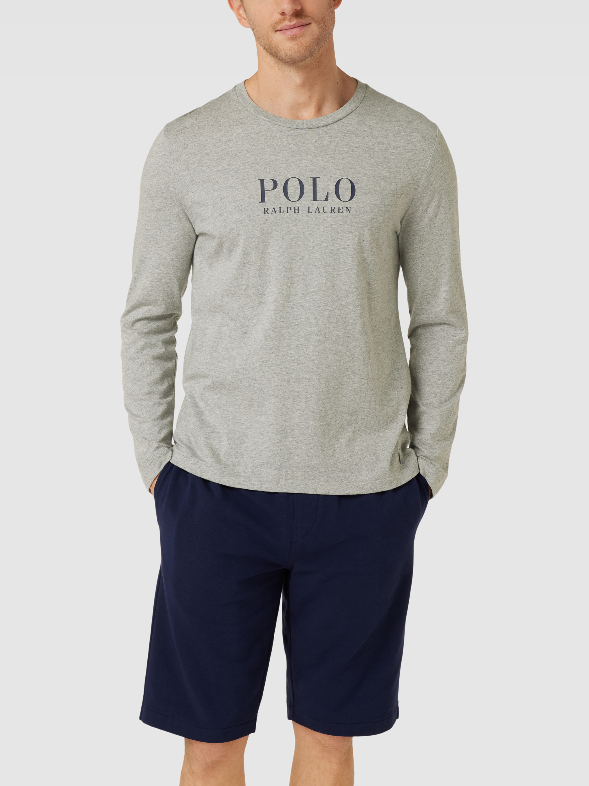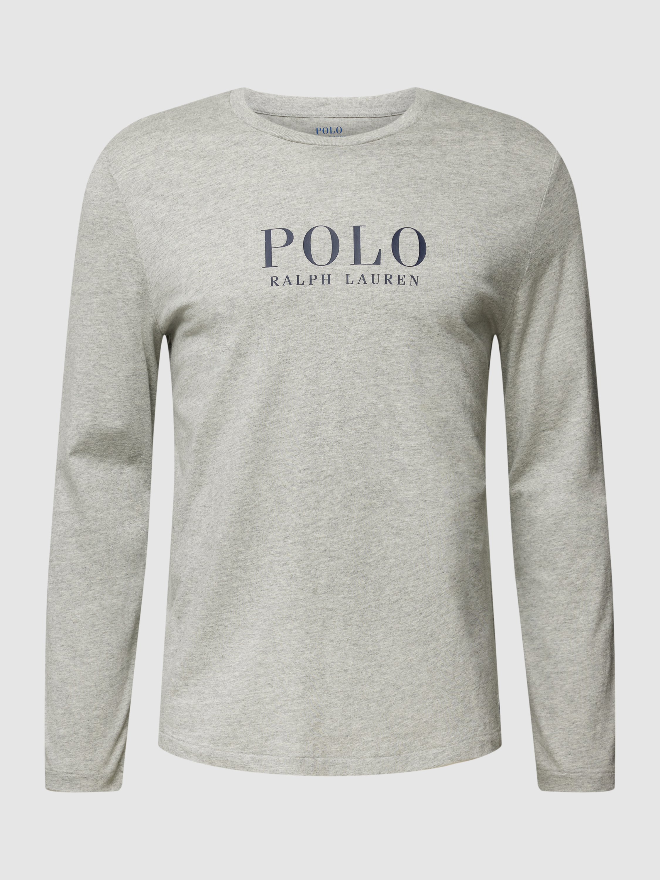 Shirt met lange mouwen en labelprint in middengrijs gemêleerd