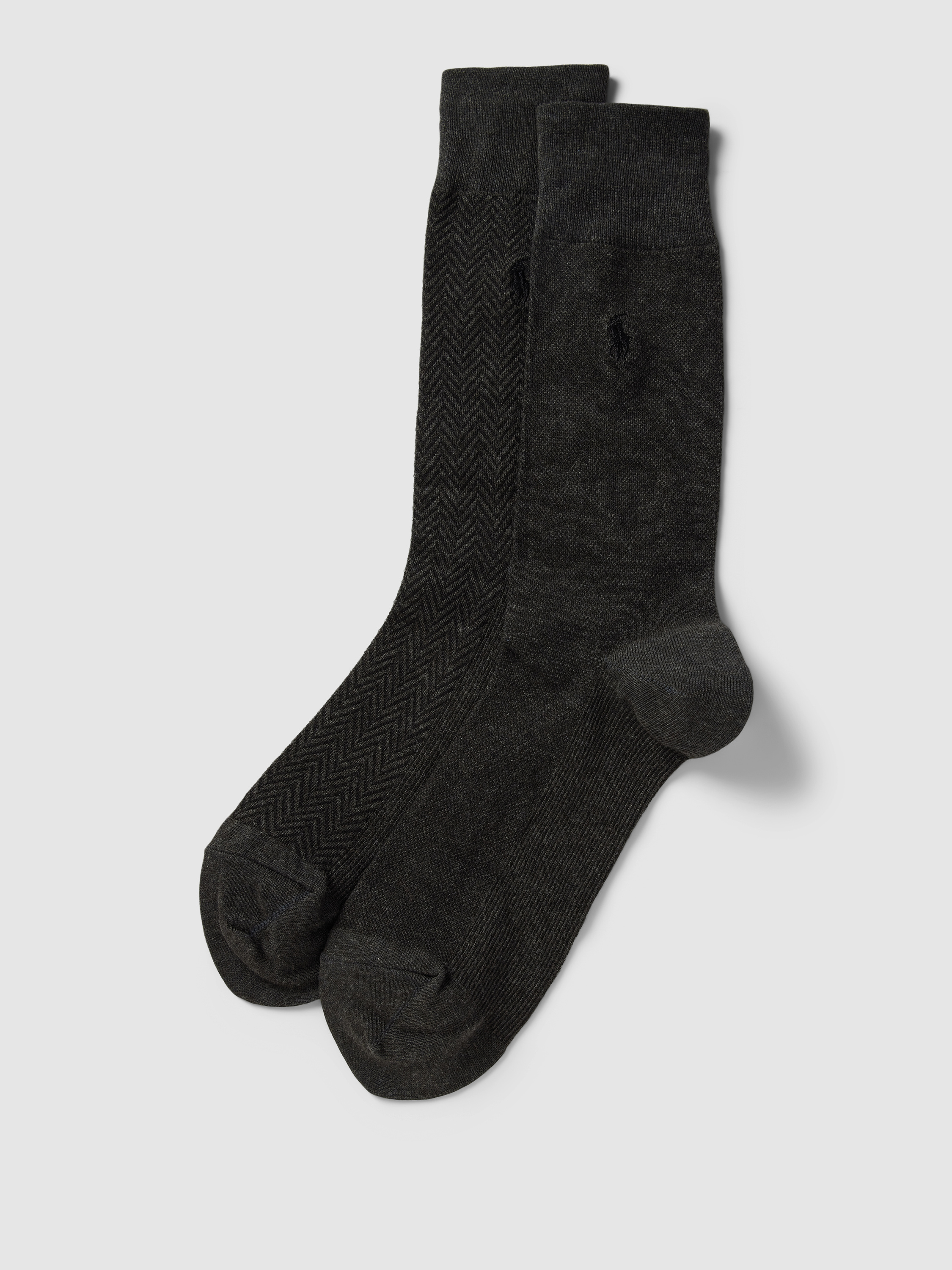 Sokken met grafisch motief in een set van 2 paar in antraciet gemêleerd