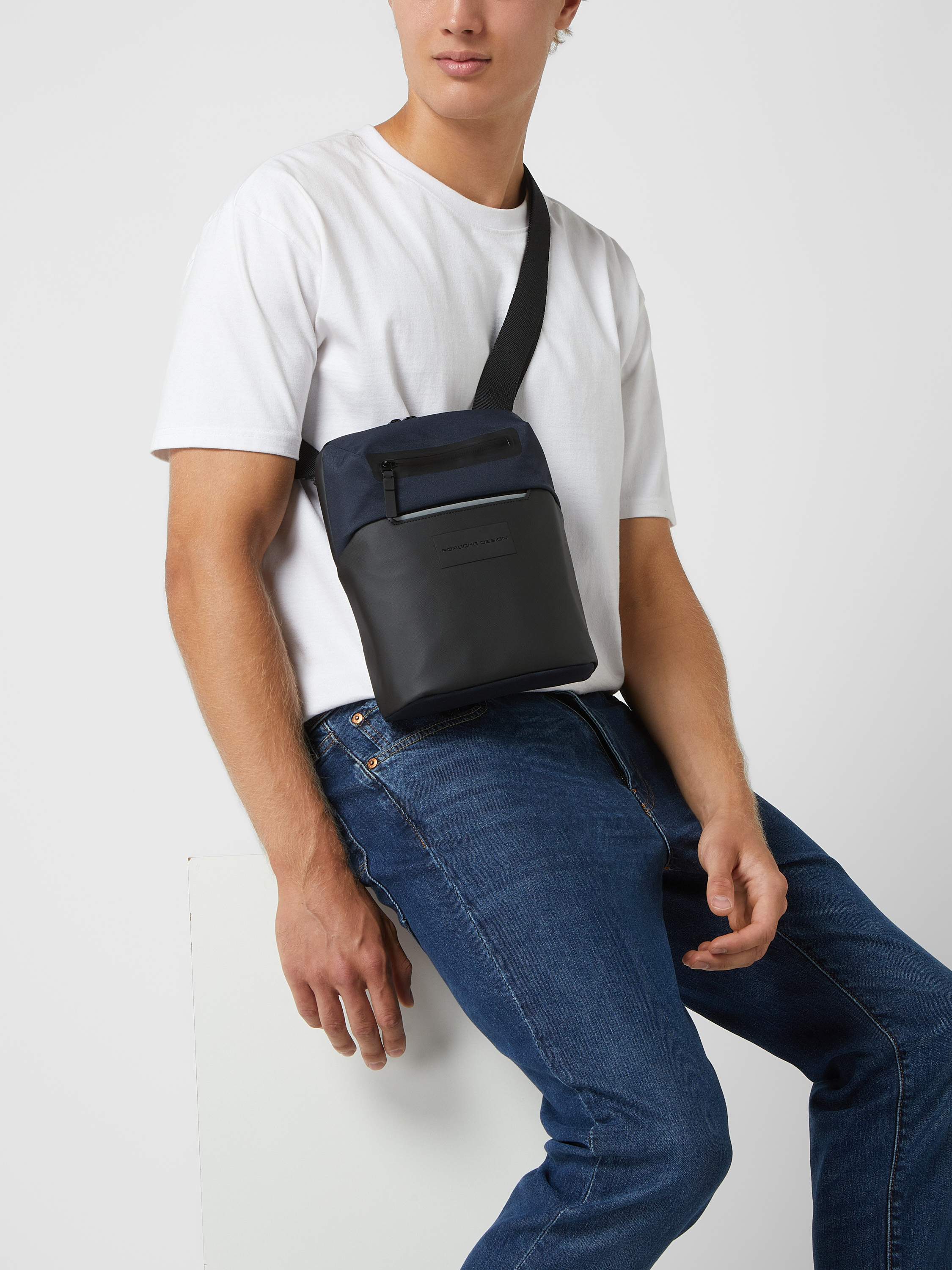 Porsche DesignSchoudertas met gevoerd multimediavak in donkerblauw