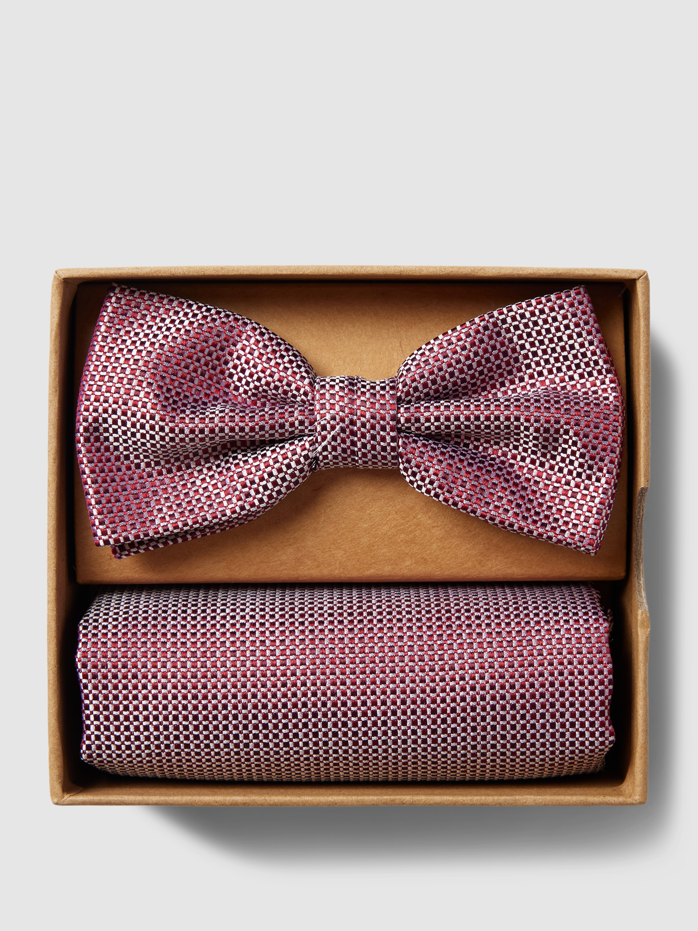 Strik en pochet in een set van pure zijde in bordeaux