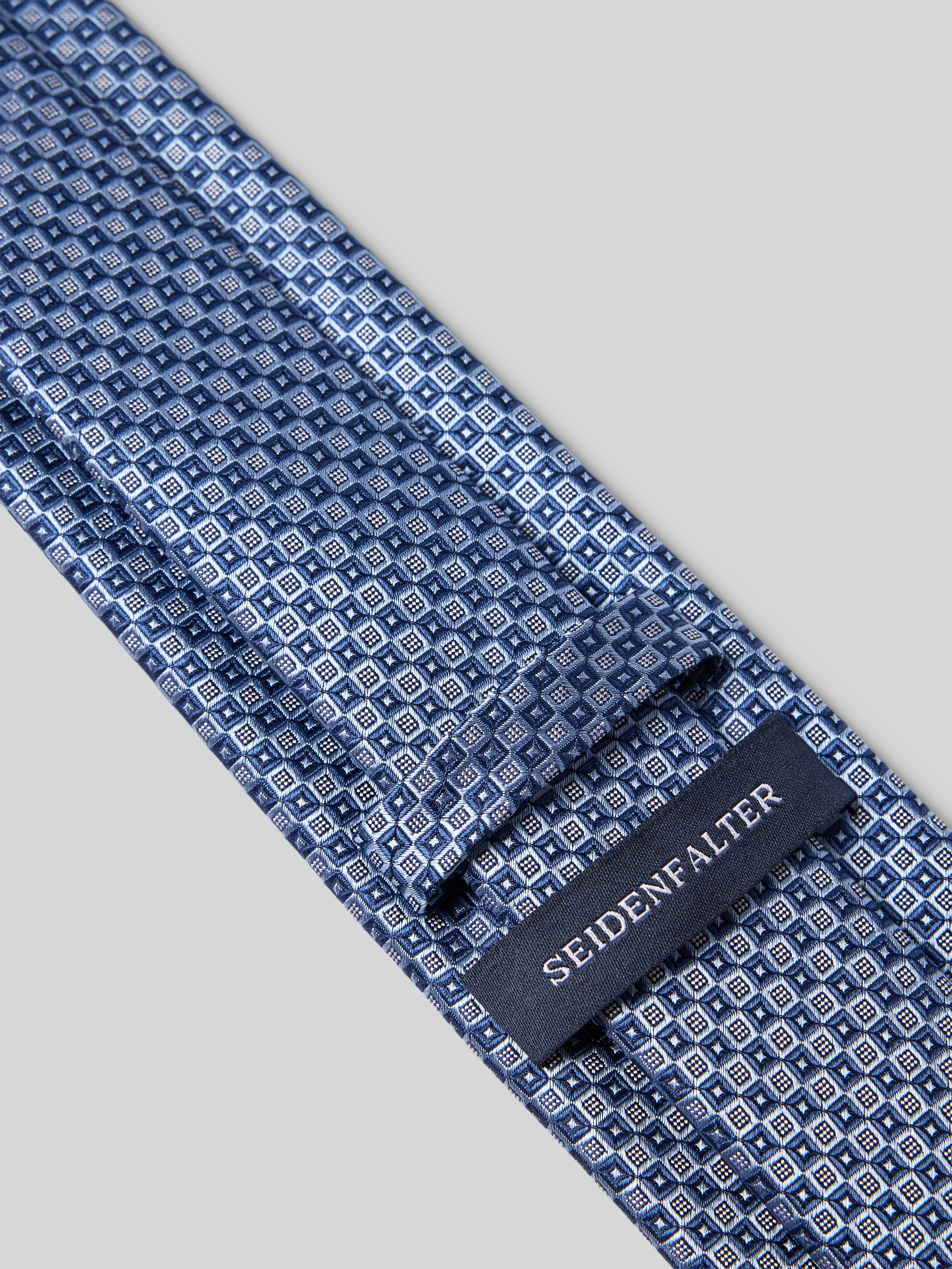 Zijden stropdas met statementpatch (7 cm) in marineblauw