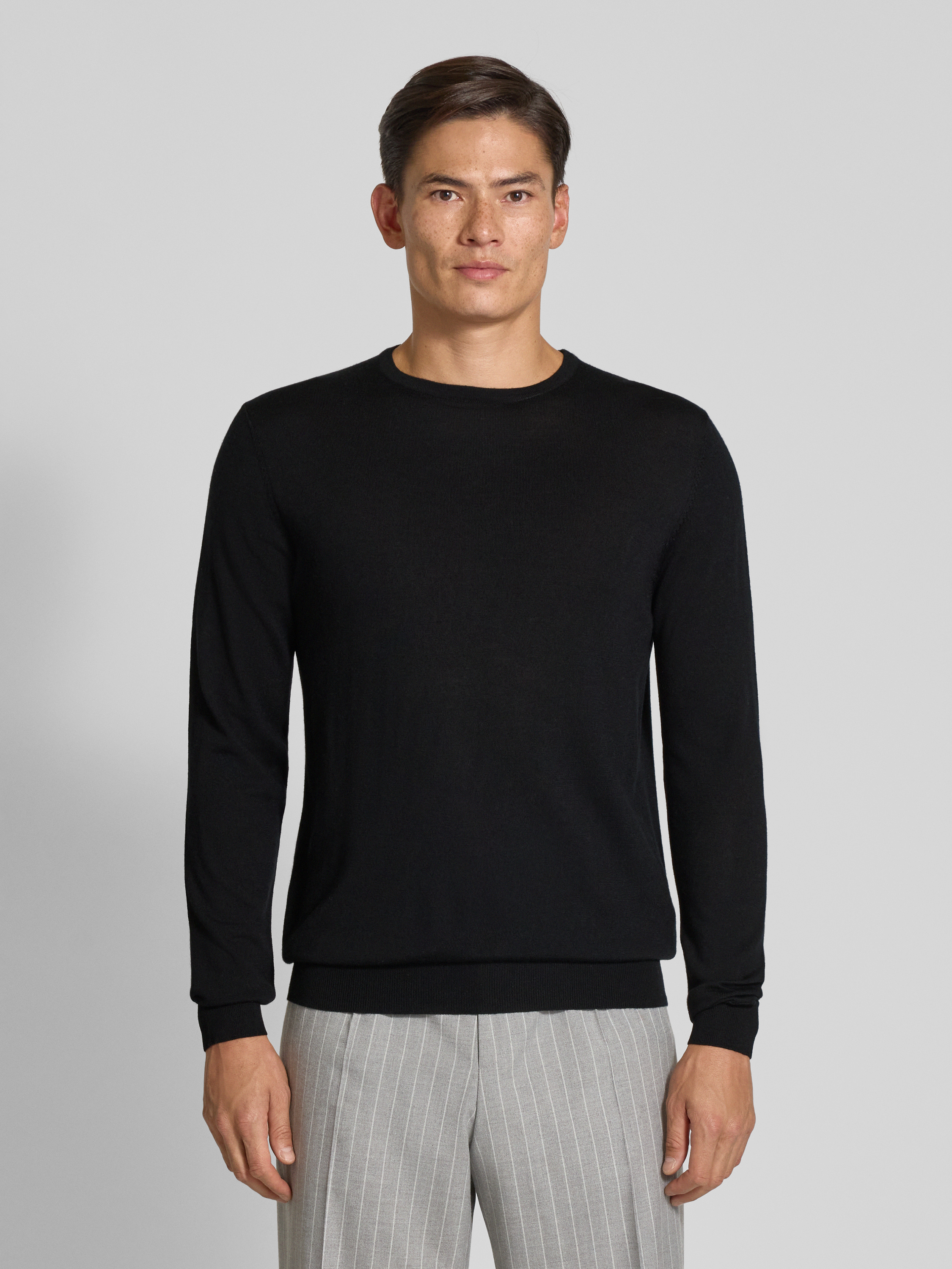 ProfuomoPullover van merinowol met ronde hals in zwart